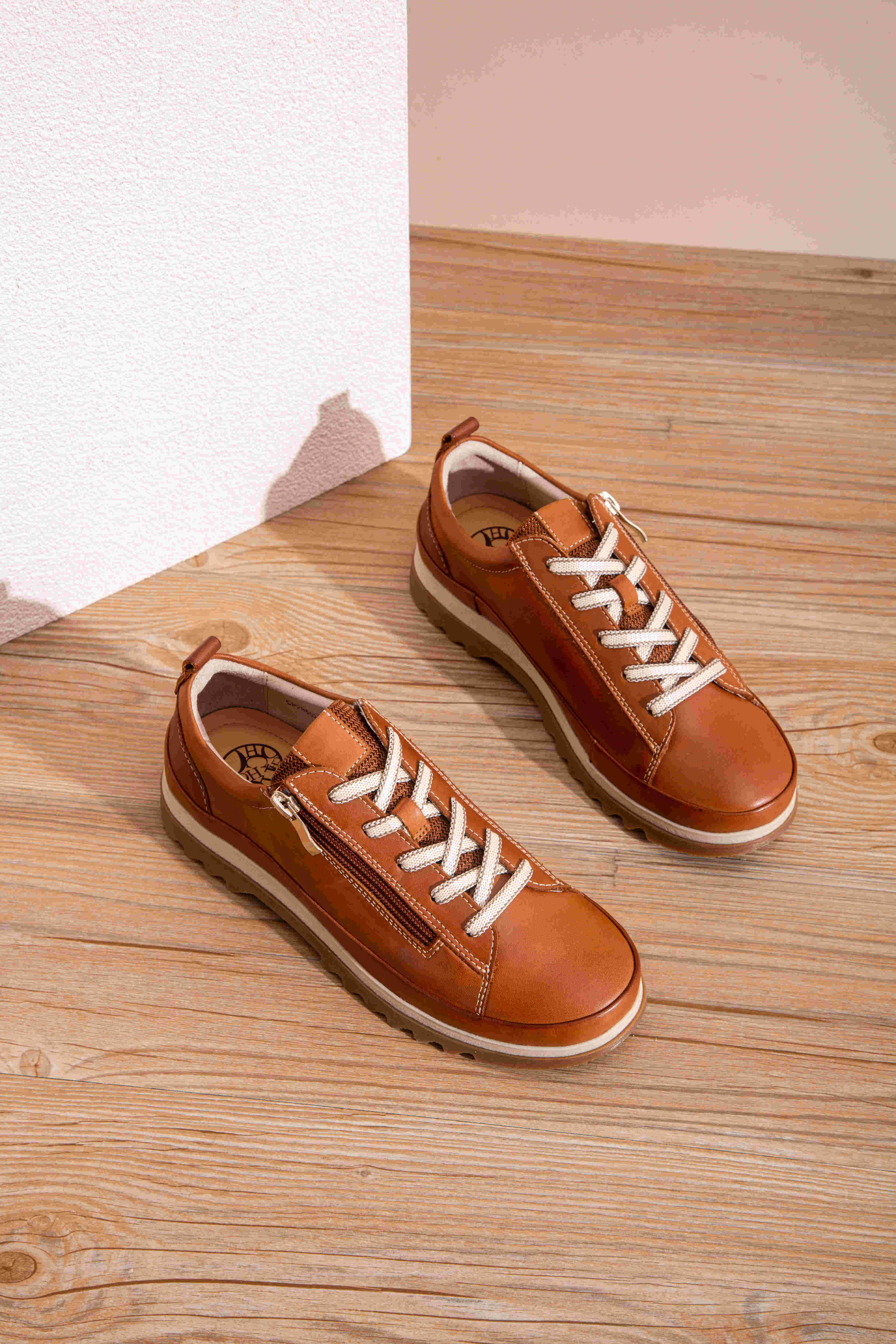 CHCH平衡鞋2025秋冬新款牛皮平跟圆头系带深口休闲单鞋女鞋CP2B5021