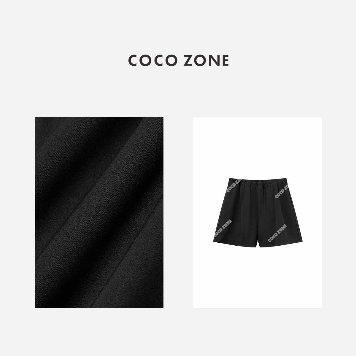 COCO ZONE 2024"小夏裤"新款松紧腰通勤百搭短裤简约纯色女裤子CC1B0647