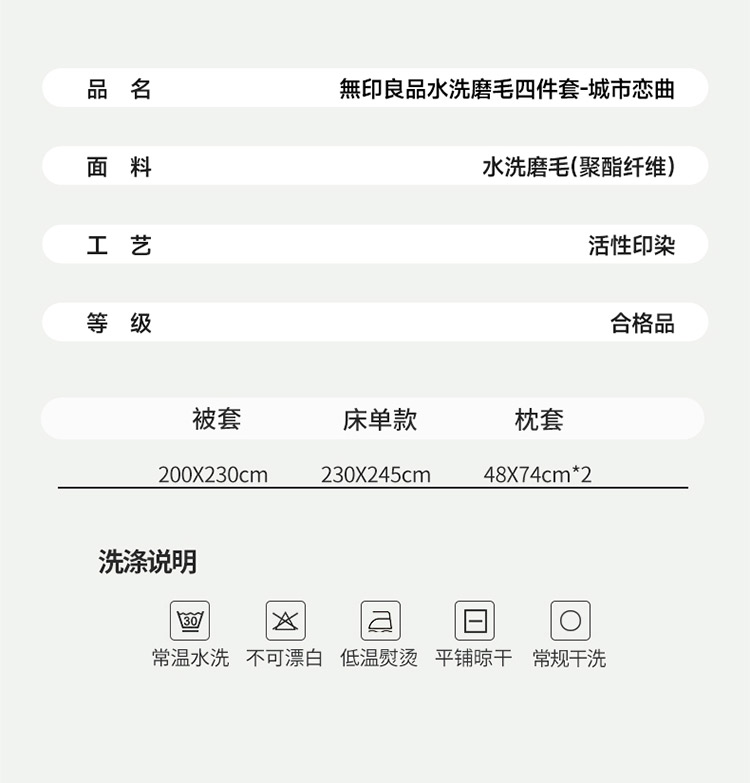 無印良品水洗磨毛四件套-城市恋曲 200*230cm