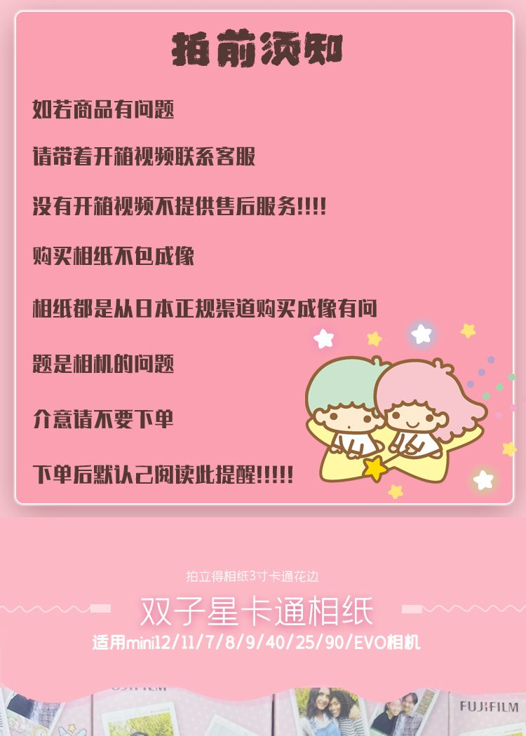 mini双子星3寸相纸1盒10张,多盒便宜富士拍立得花边相纸日期新鲜现货速发