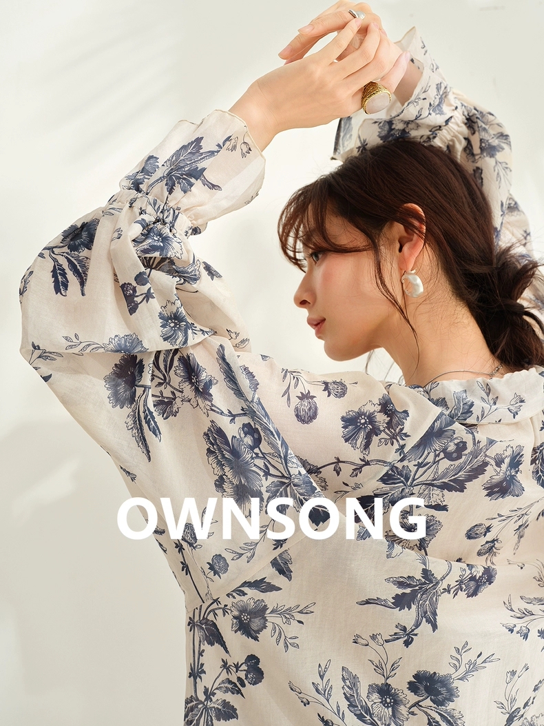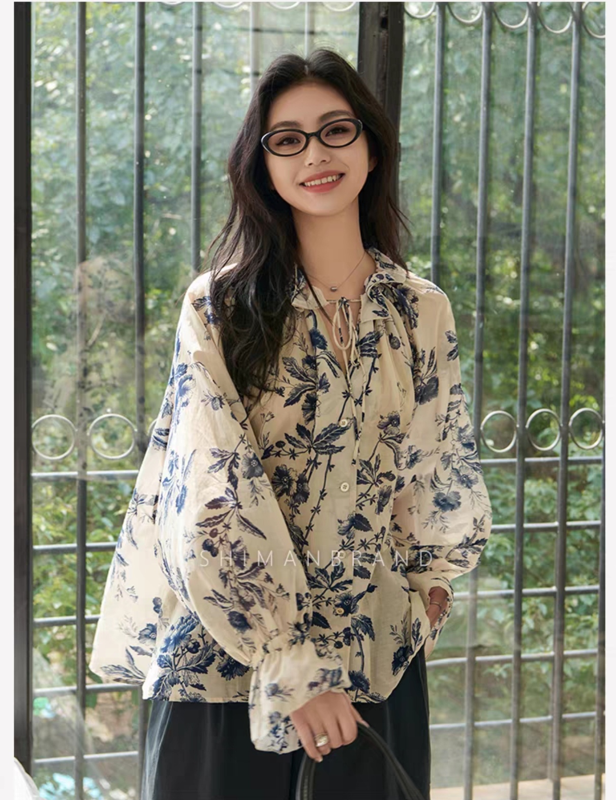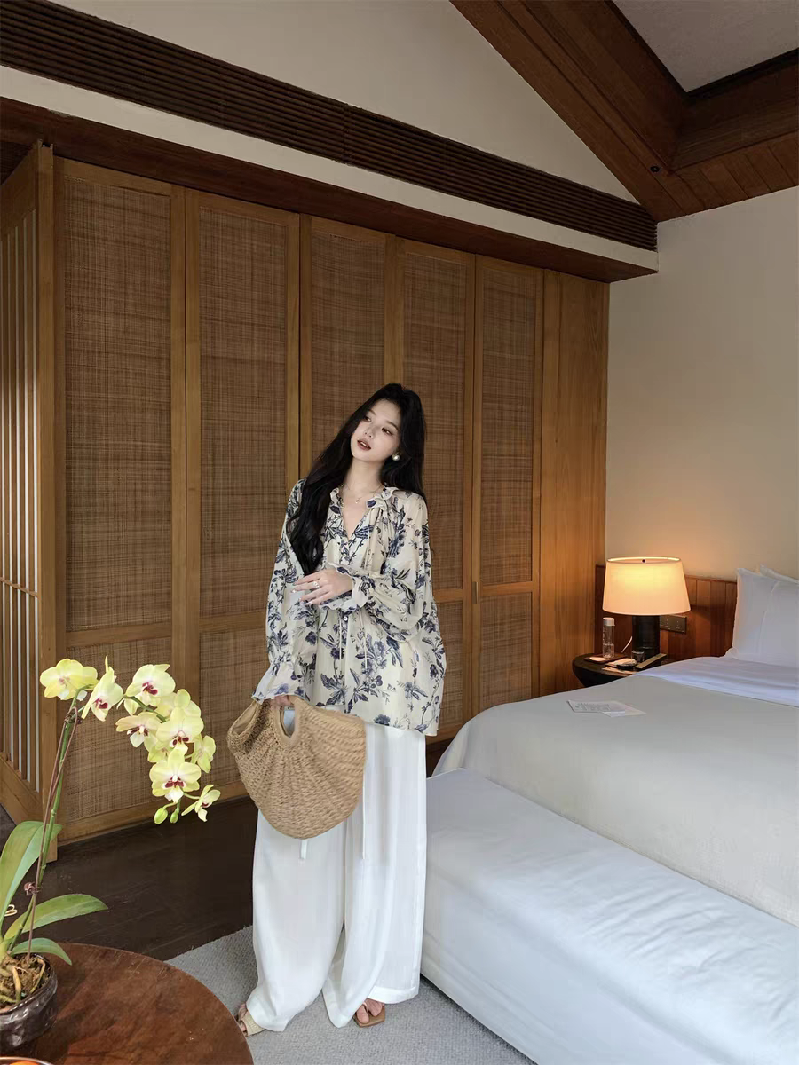 Chic休闲度假风大廓形水墨印花优雅系带衬衫!