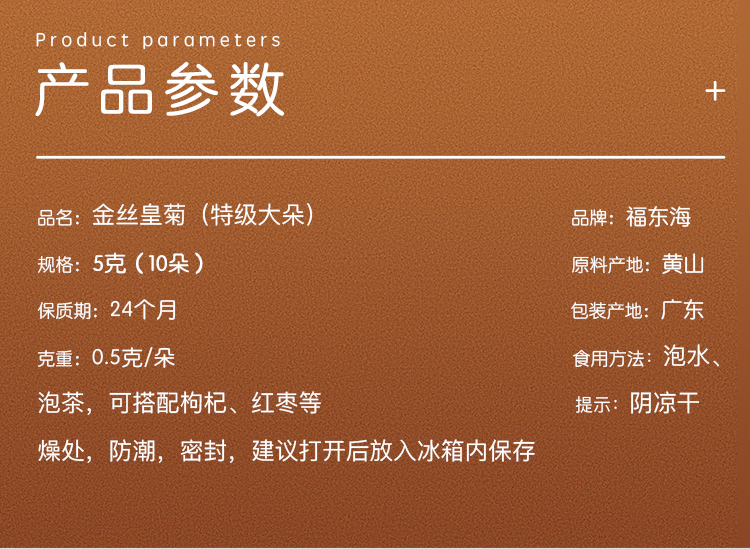 福东海 金丝皇菊5克/盒(10朵)菊花茶大朵安徽黄山原产