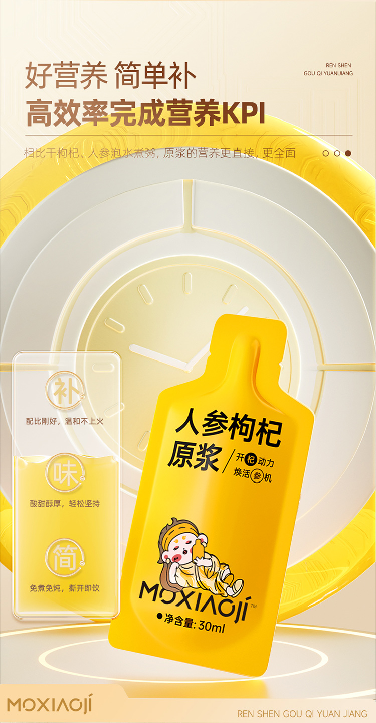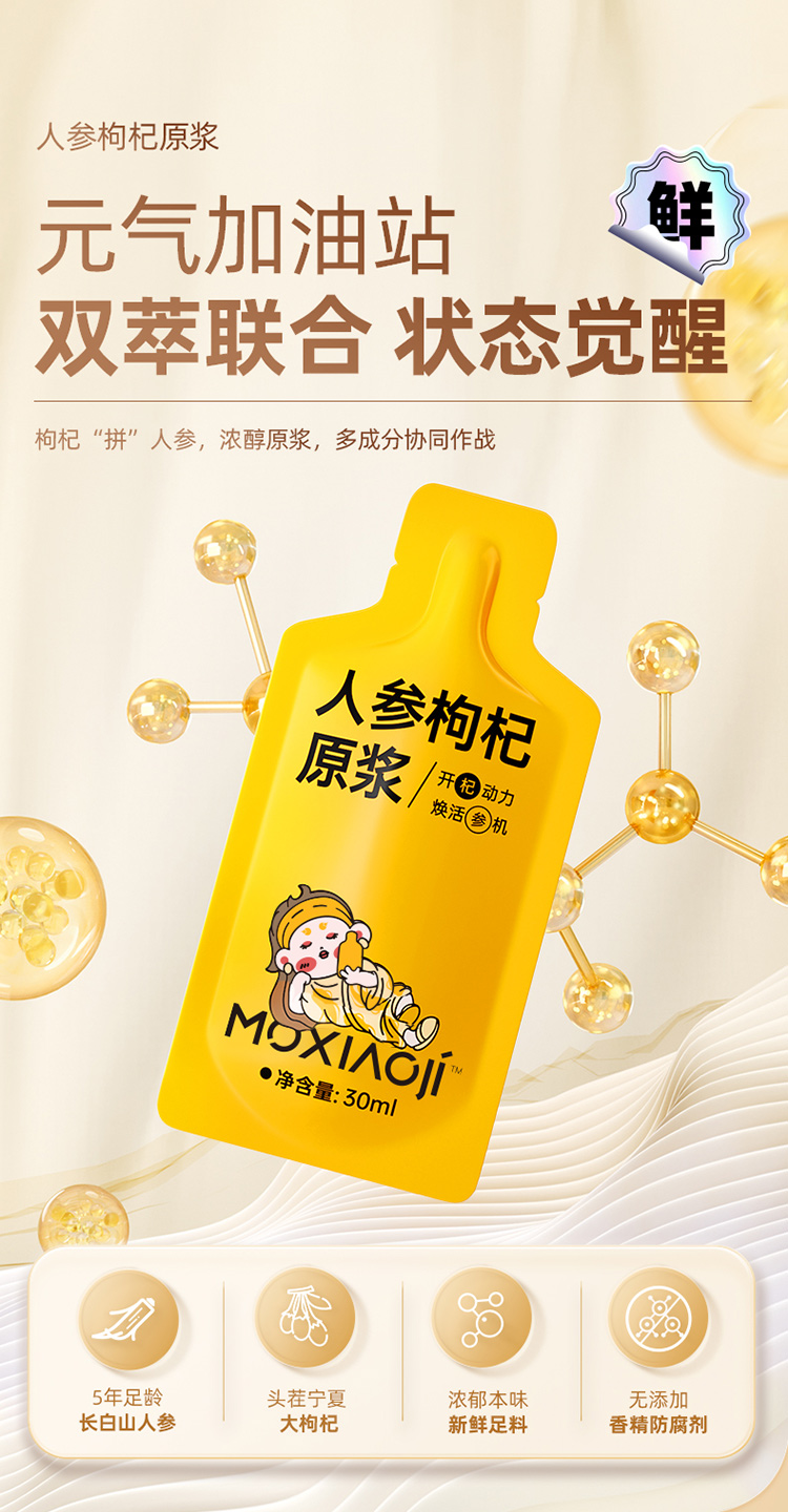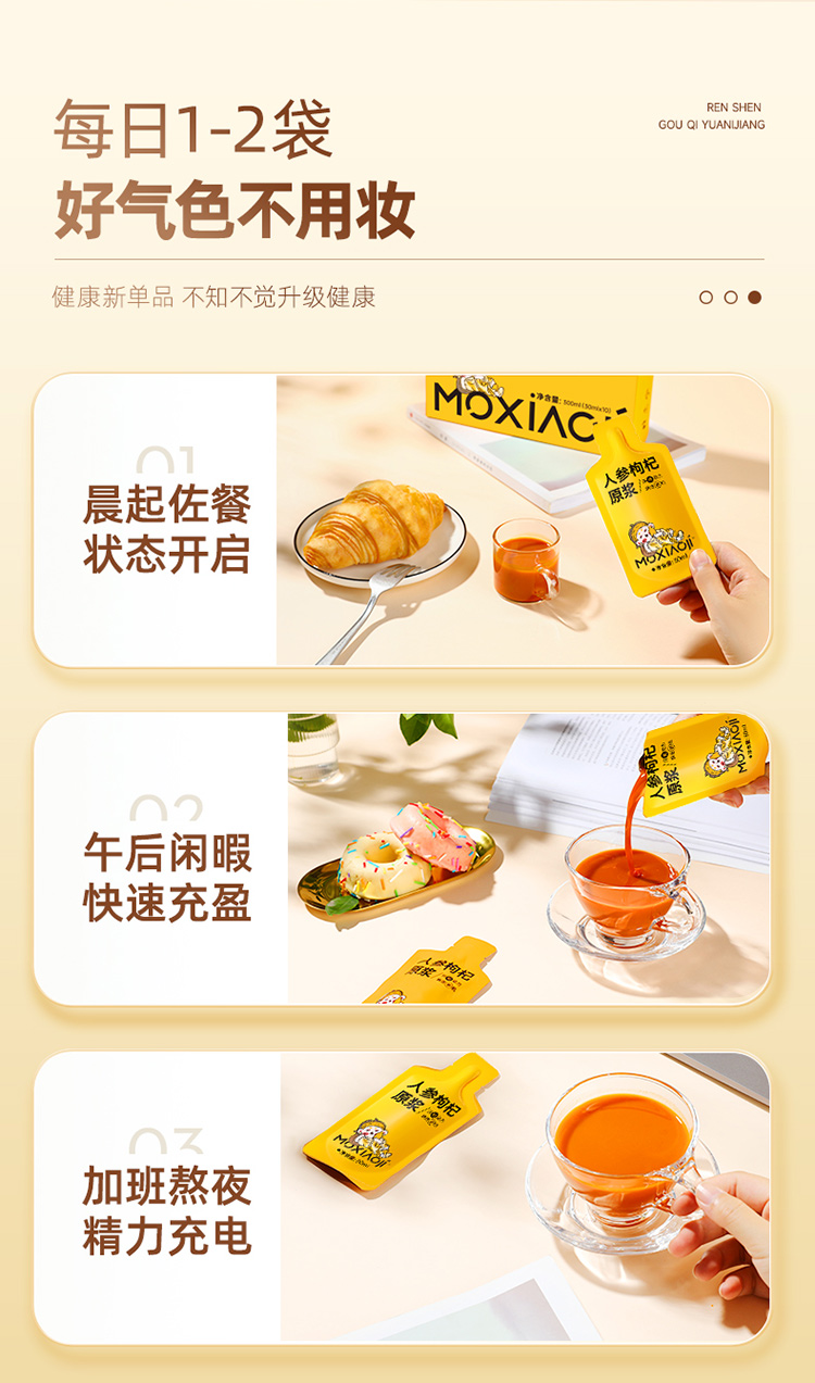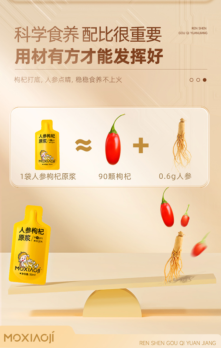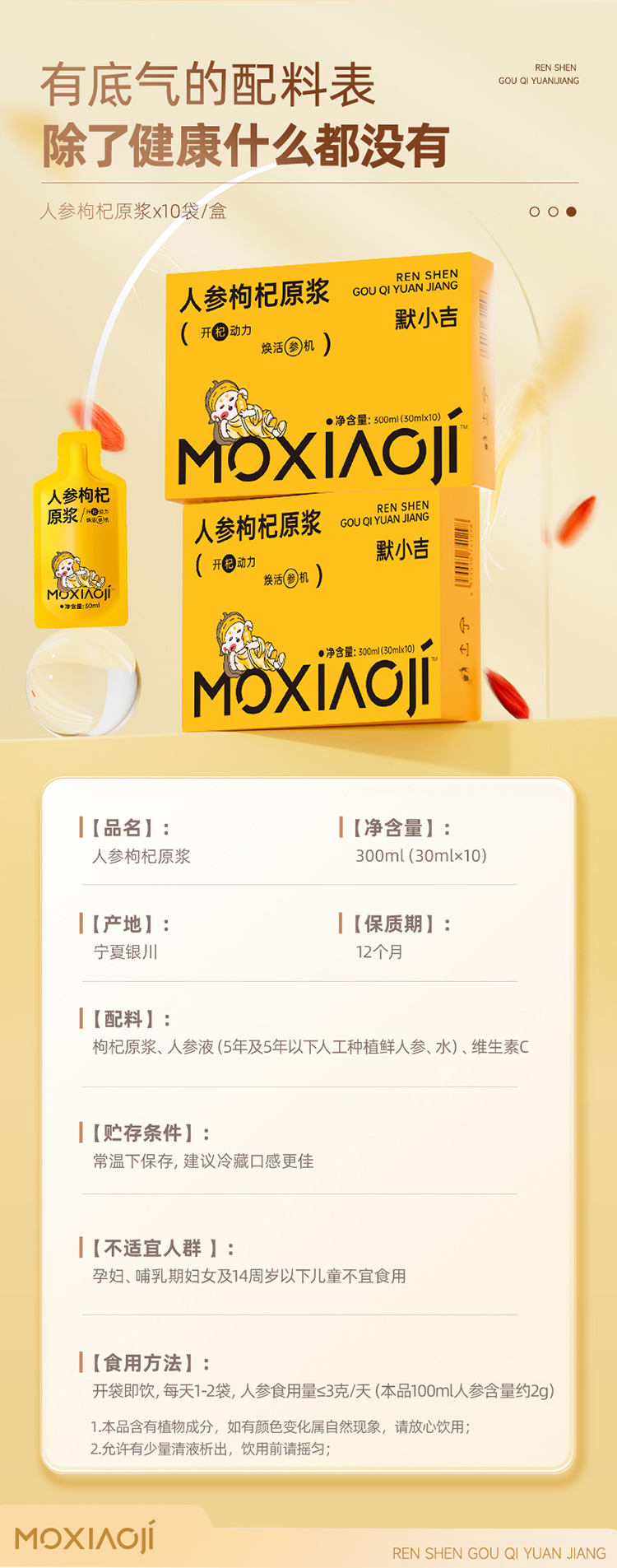 【冬季滋补】默小吉300ml(10袋)人参枸杞原浆“杞”动元力,焕活“参”机 每天一袋 熬夜党、打工人、考研党 男女生