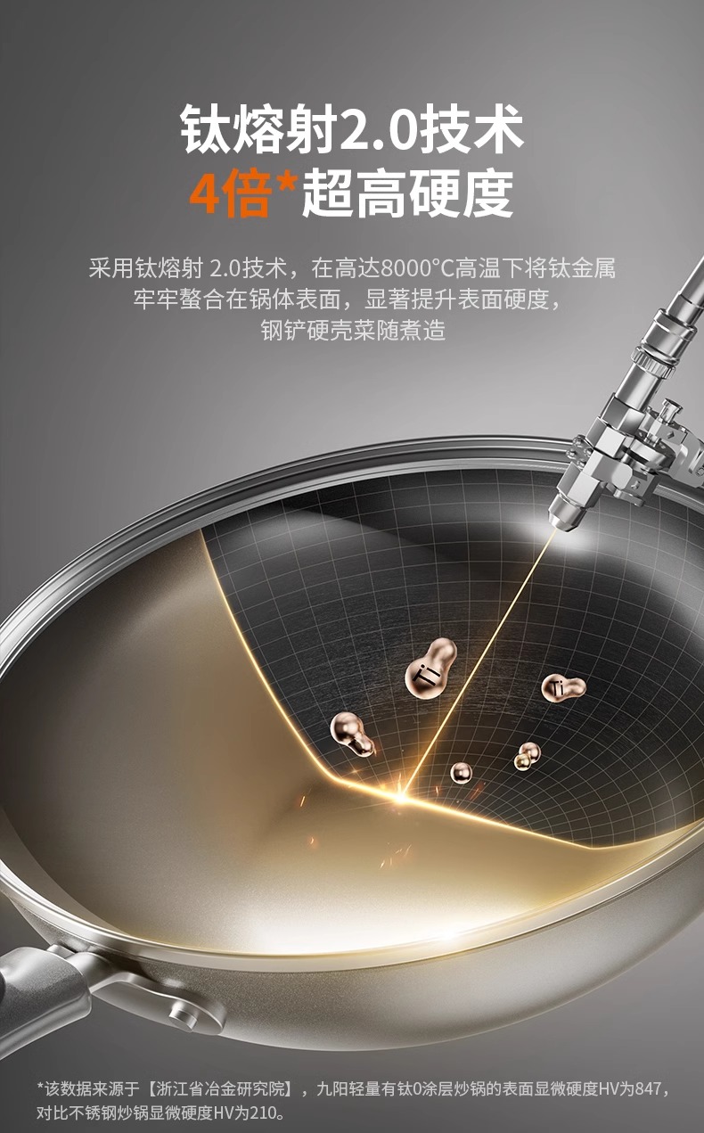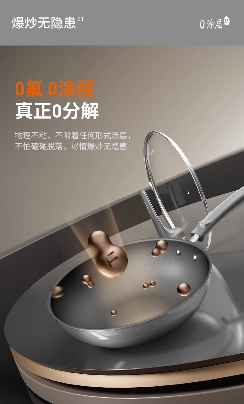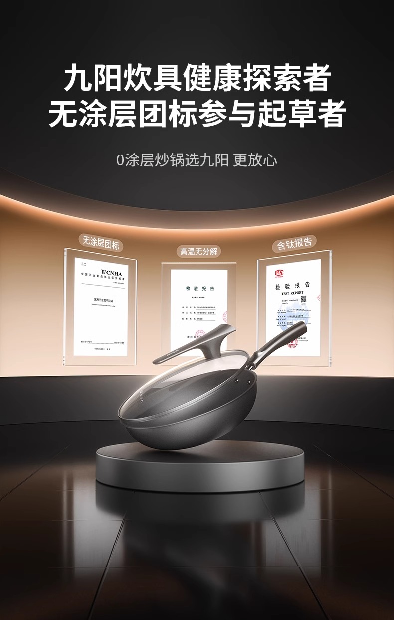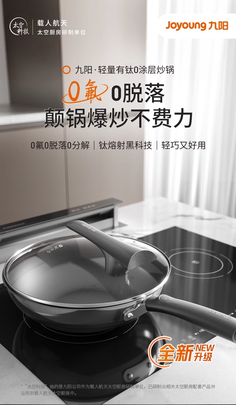 九阳轻量有钛0涂层炒锅家用304不锈钢炒菜锅32cm电磁炉燃气灶通用