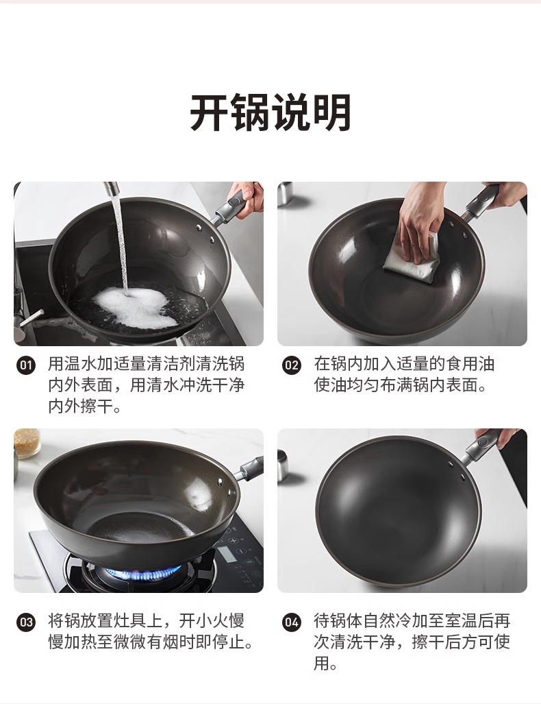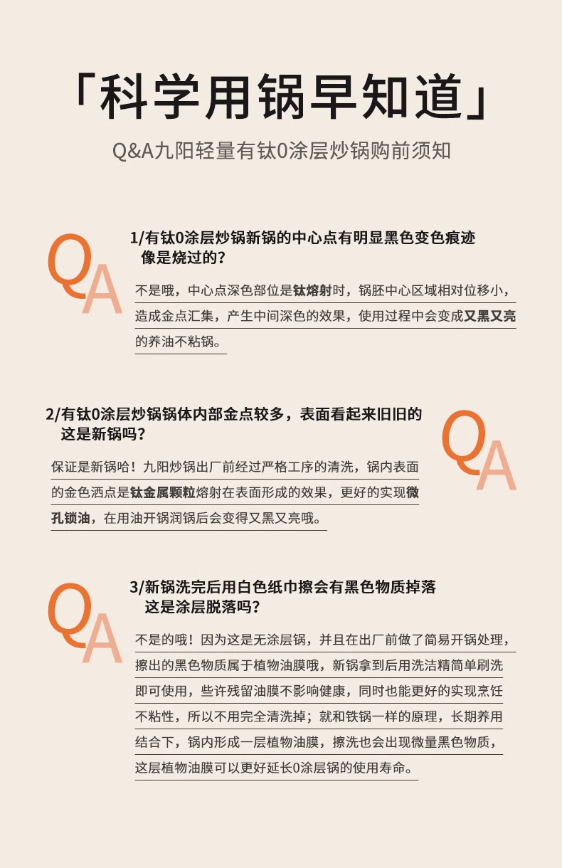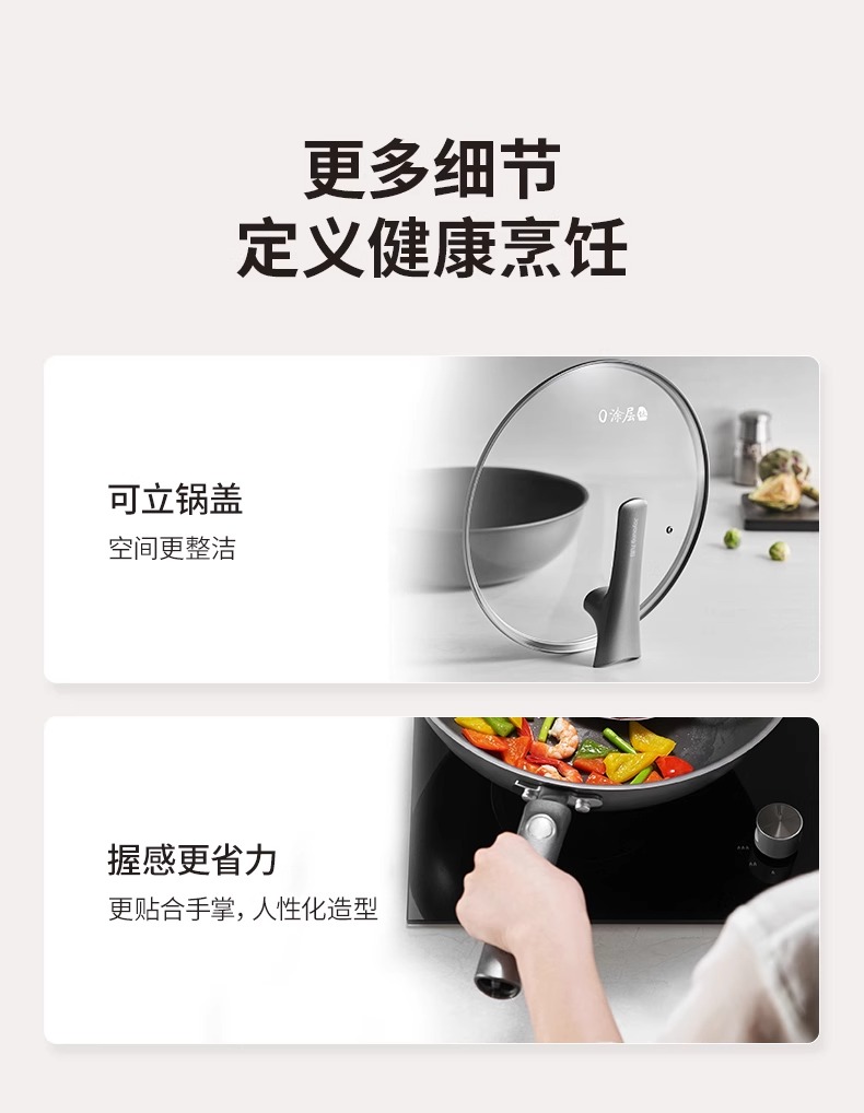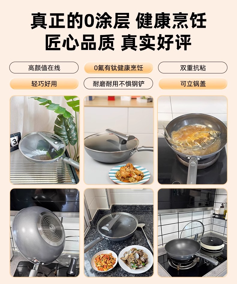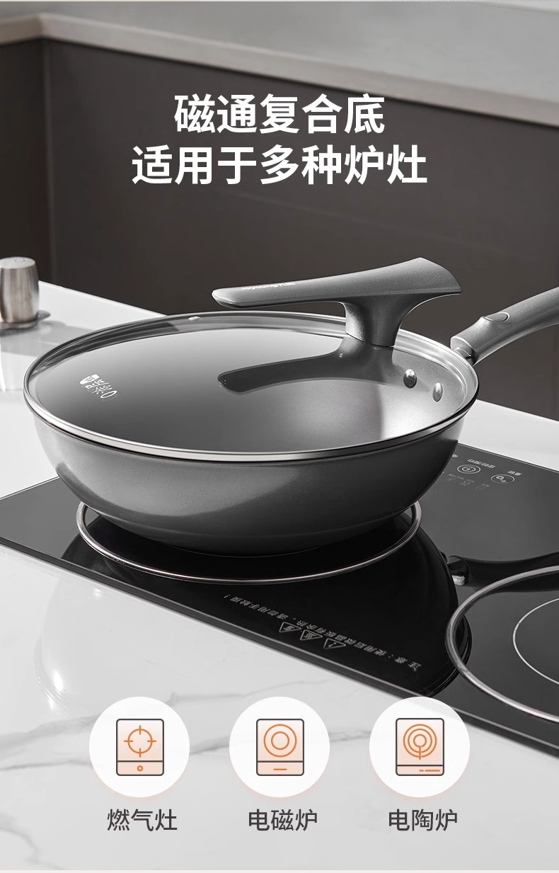 九阳轻量有钛0涂层炒锅家用304不锈钢炒菜锅32cm电磁炉燃气灶通用