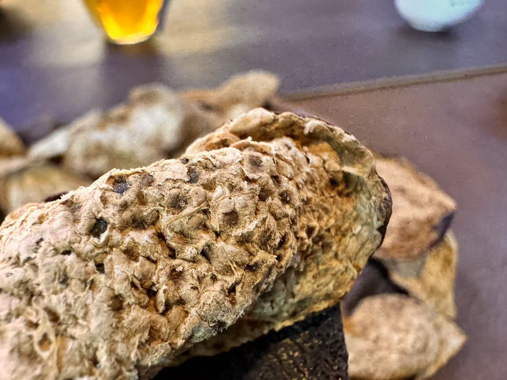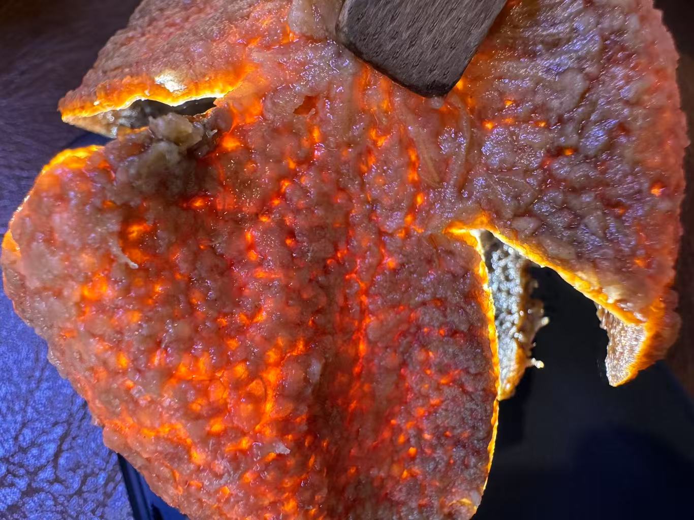 泡完后,灯光下下表皮的表现,油包的密集度、质感表达得淋漓尽致。
