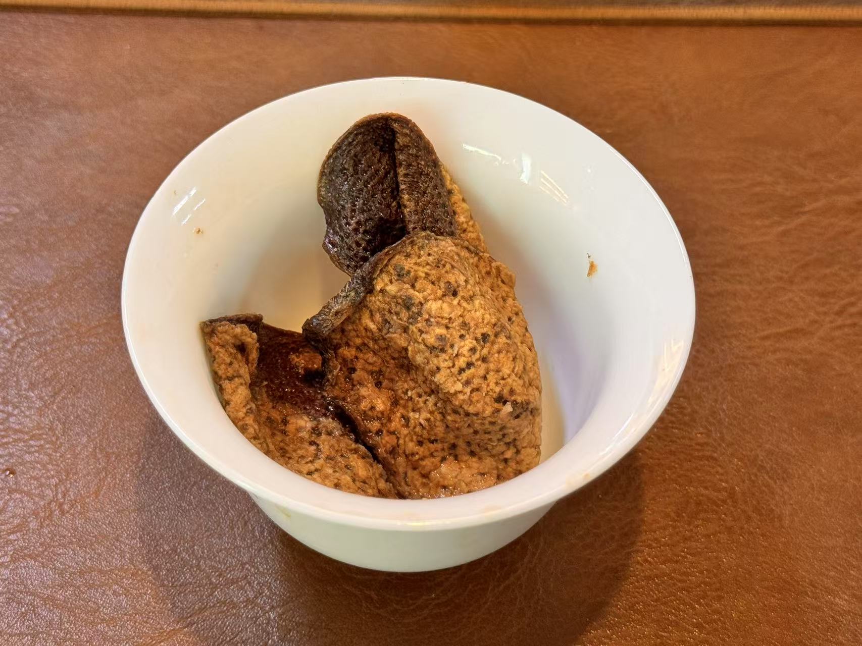 泡完后的表皮。非常Q弹有韧性。就像是一块红烧肉^-^