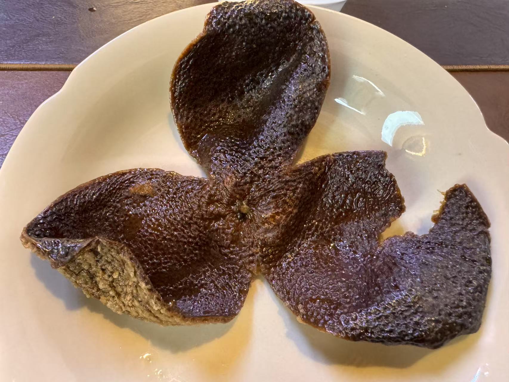 第一道汤入口,舌尖触达冰糖甜韵,舌侧泛起微弱陈皮苷的清凉感~