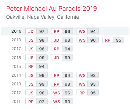 杰布表示:“来自奥克维尔的 2018 年 Au Paradis 散发出深宝石红/紫色的色调,带有浓郁的黑醋栗、绿色烟草、铅笔芯、檀香和干花的香气和味道。非常平衡,酒体饱满,单宁如丝般柔滑,是一款优雅、浑然一体的葡萄酒,其丰富性和深度会让您大吃一惊。它让我想起了波尔多超二级庄宝嘉龙(Ducru Beaucaillou)的一个大年份,是一款优雅、复杂的赤霞珠,将发展二十年或更长时间。”