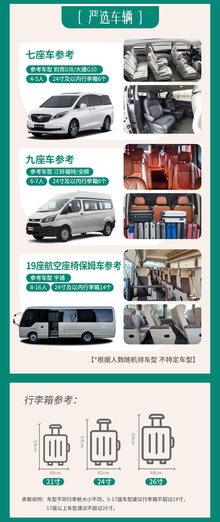 8-16人安排 19座2+1航空座保姆车(单独领队)