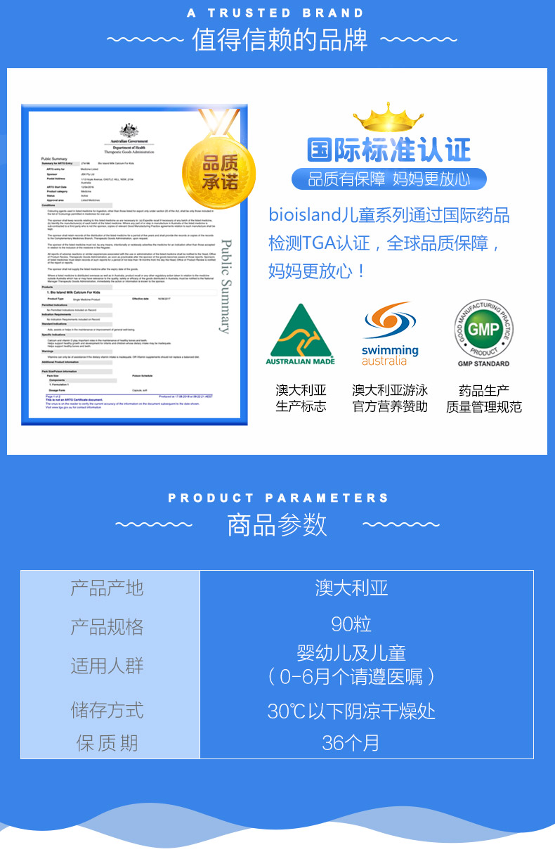 澳洲bio island进口婴幼液体牛乳钙软胶囊儿童VD宝宝补钙婴儿90粒