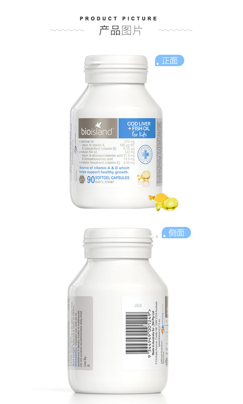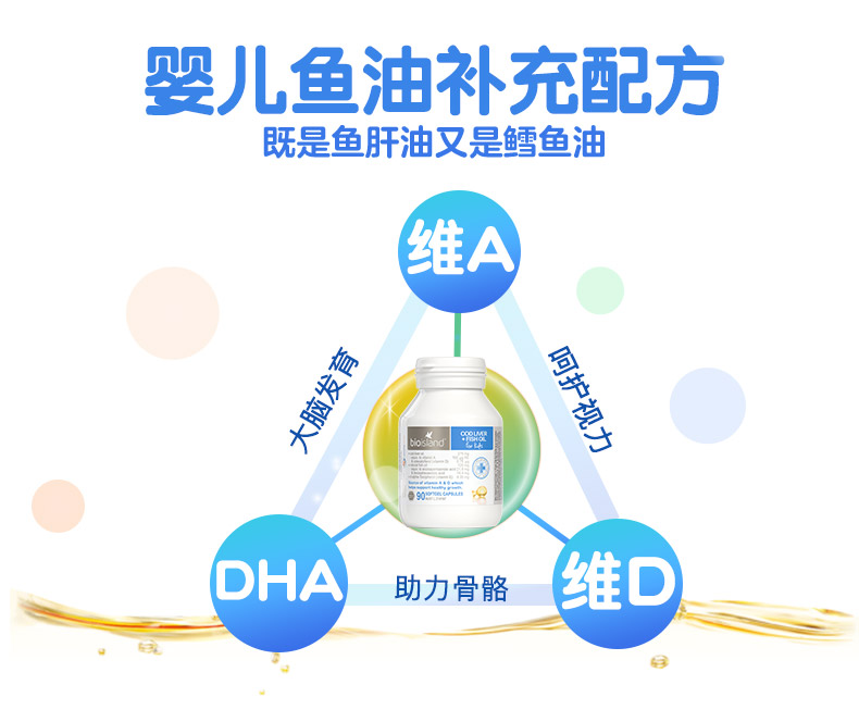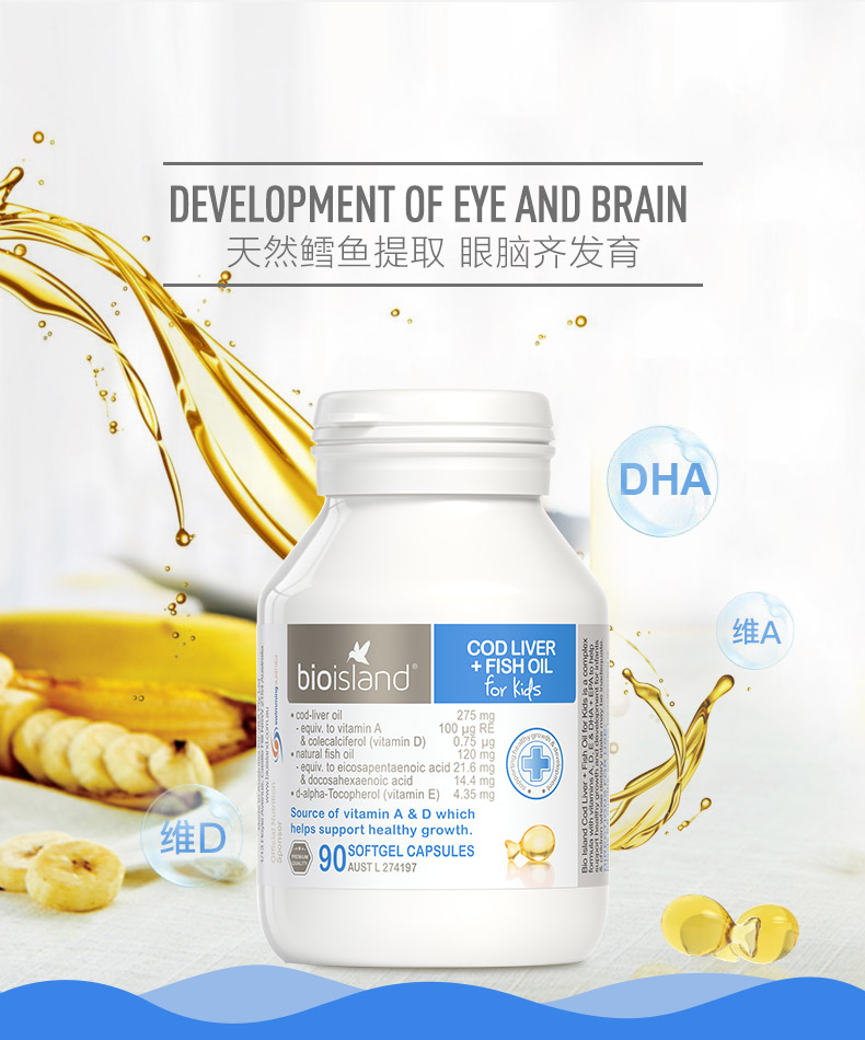 bio island澳洲进口婴幼儿童鳕鱼肝油dha深海鱼油胶囊