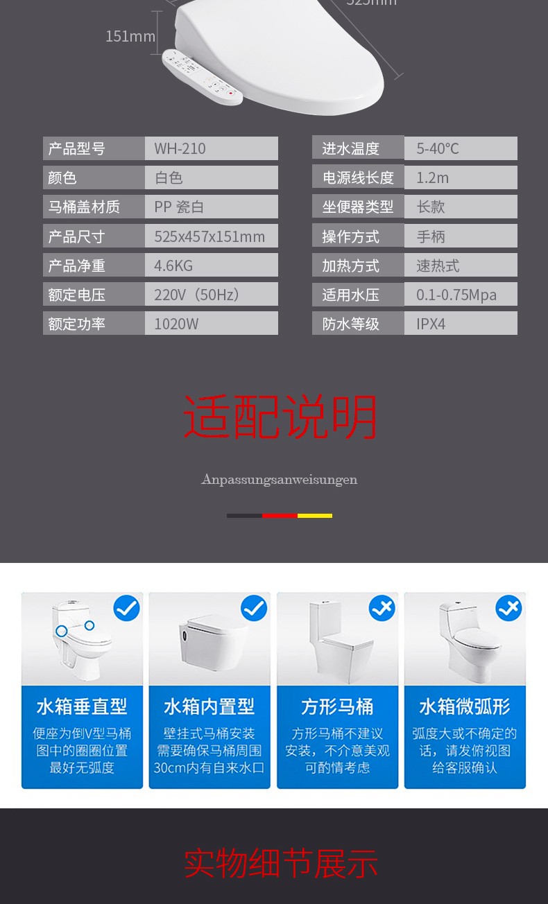 德国汉倍WH-210智能马桶盖活水即热式除菌家用自动冲洗 国民家居坐便