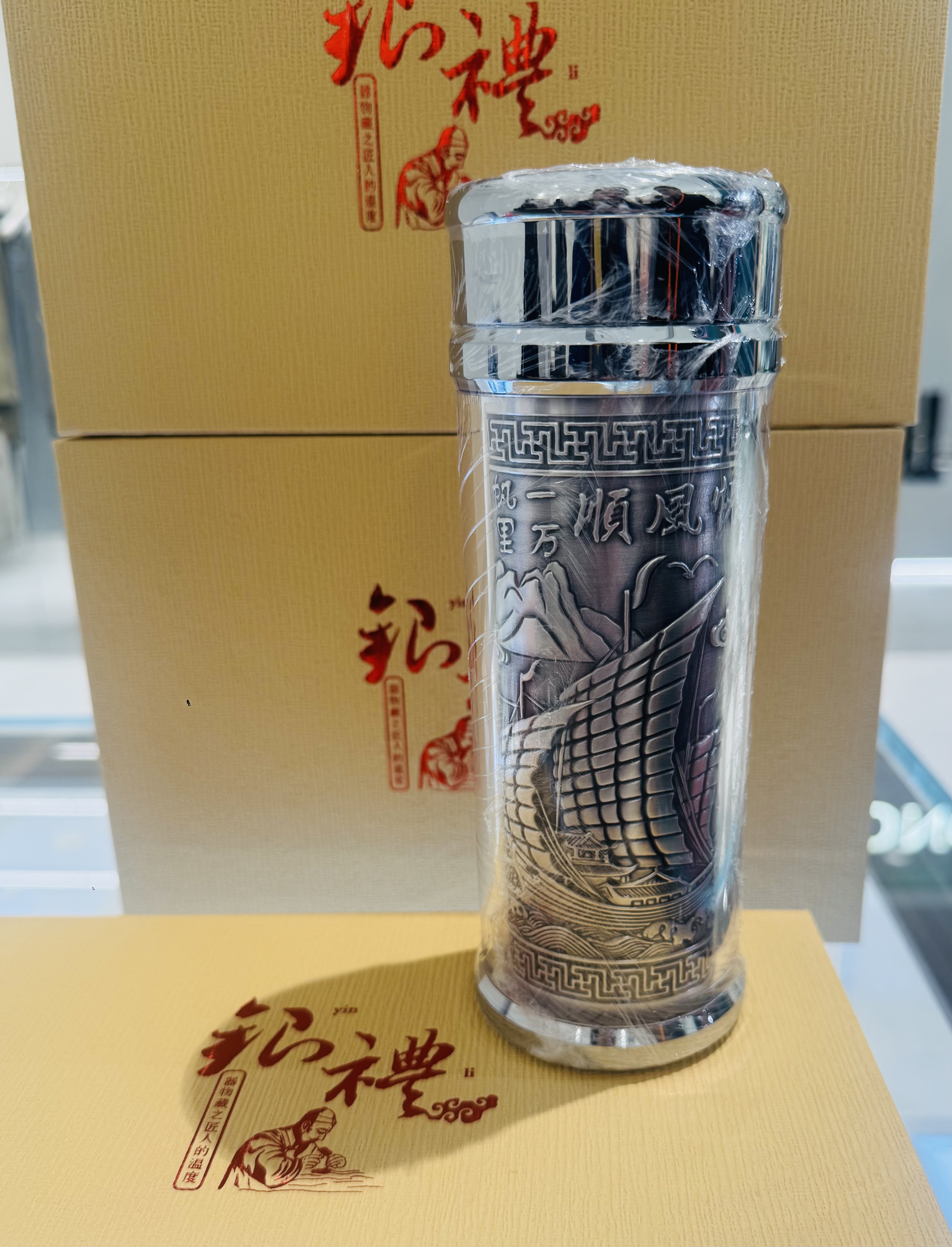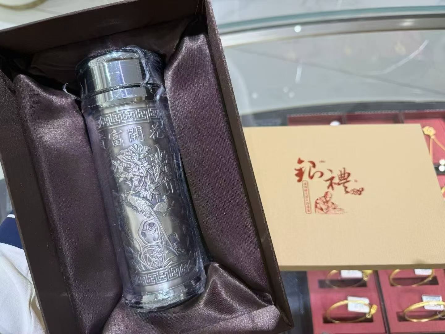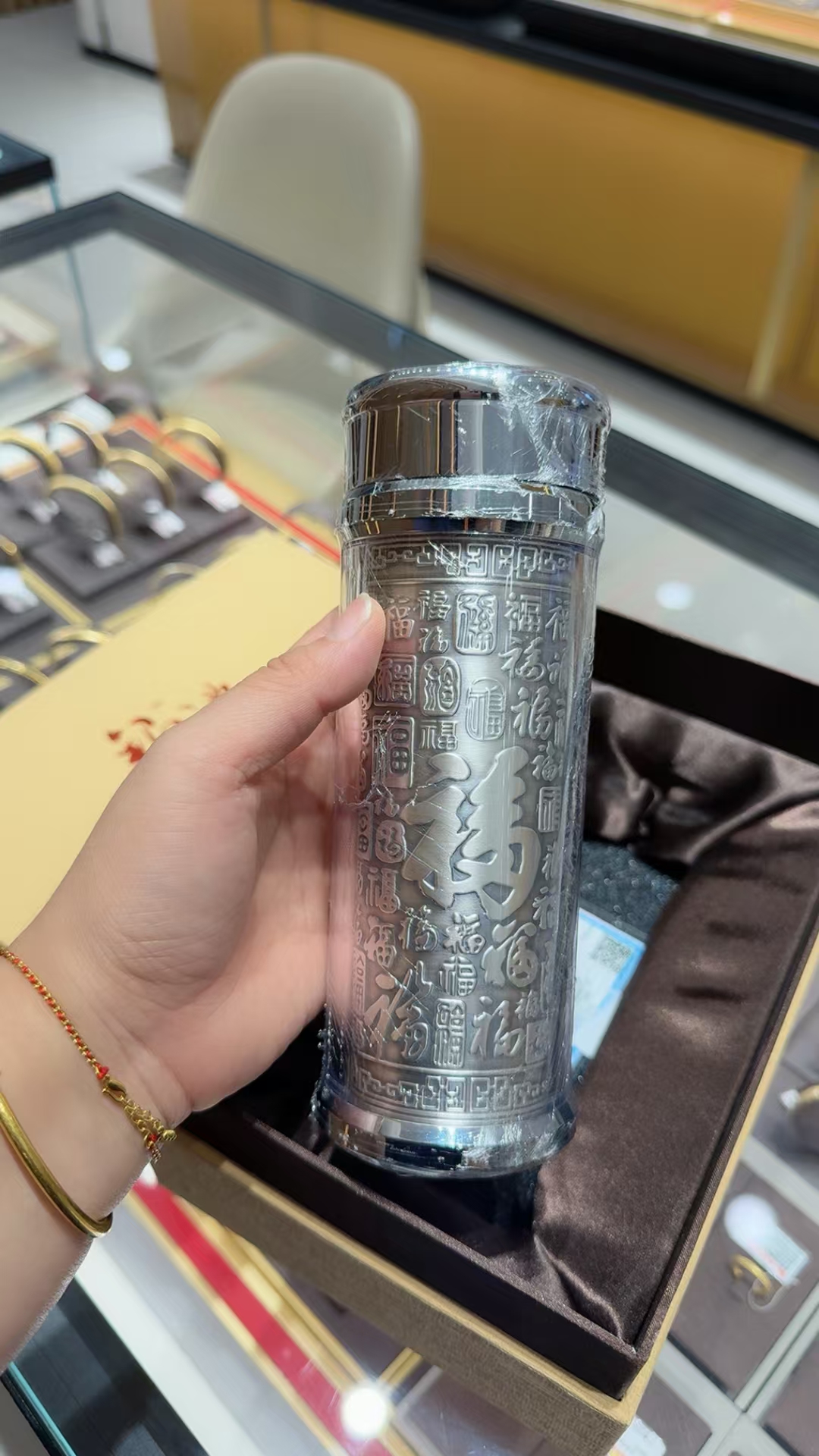 2楼老凤祥足银水杯吊牌价3280元,秒杀价2180元(配套礼盒)