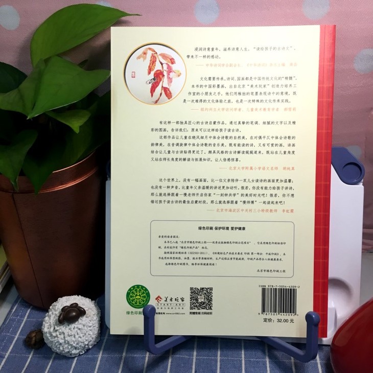 选用当代儿童彩墨画为古诗文做注脚,这些中国彩墨画出自北京“美术玩家”创造力培养工作室的小朋友之手。