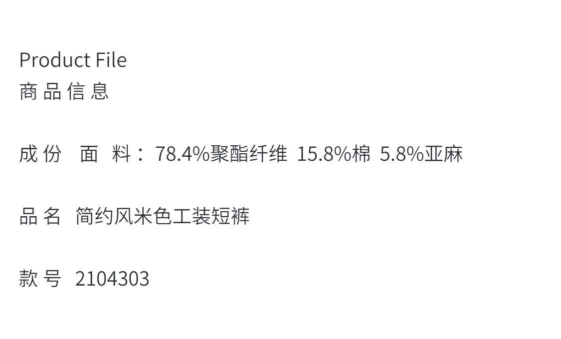 定制—简约风— 米色百搭时尚休闲宽松显瘦潮流工装短裤 2104303