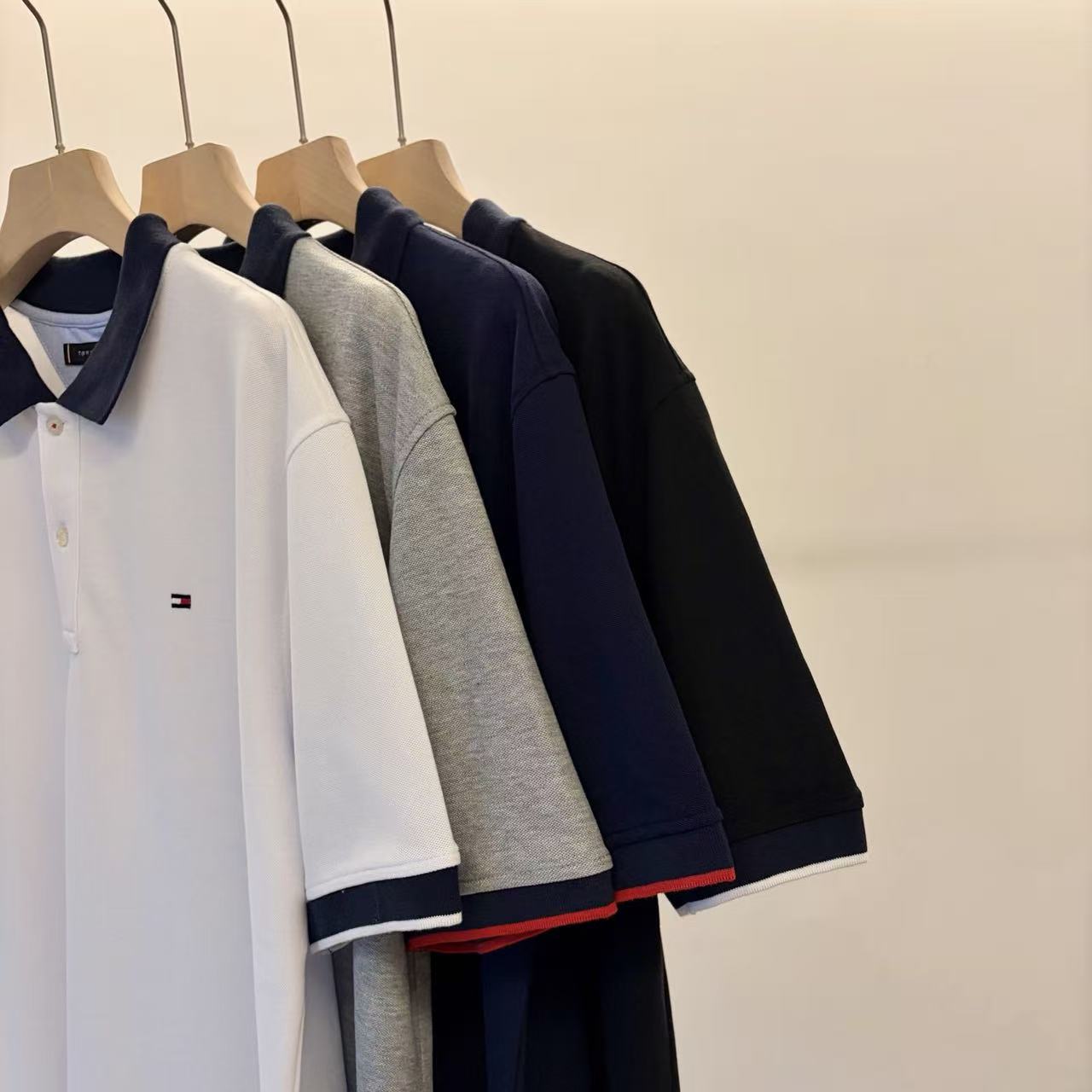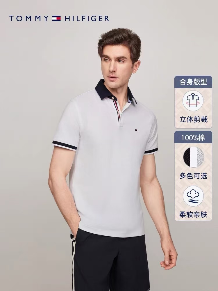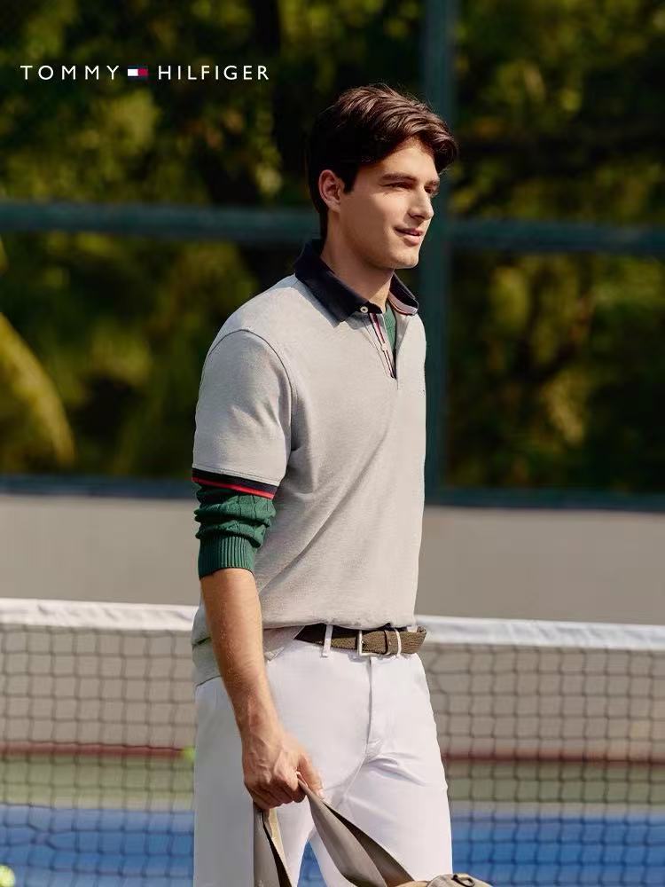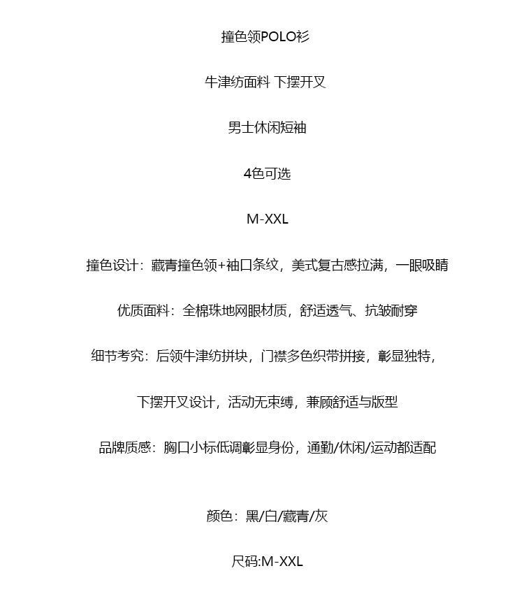【9hd1】男子商务休闲撞色领珠地短袖POLO衫!!