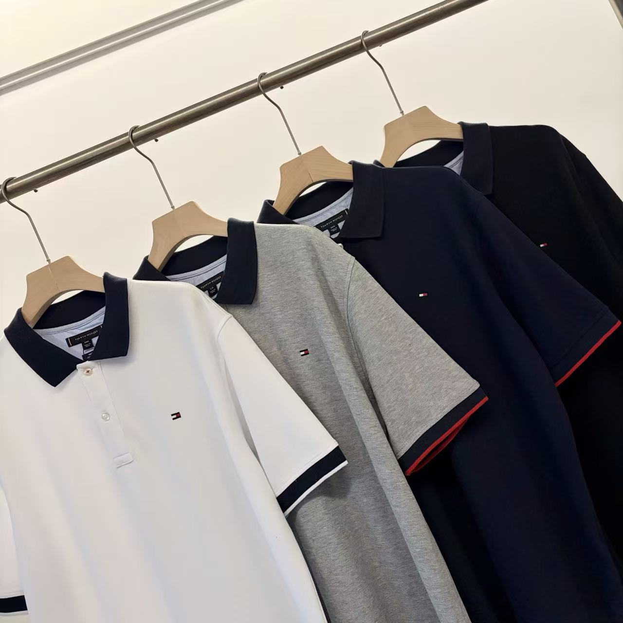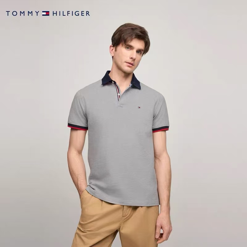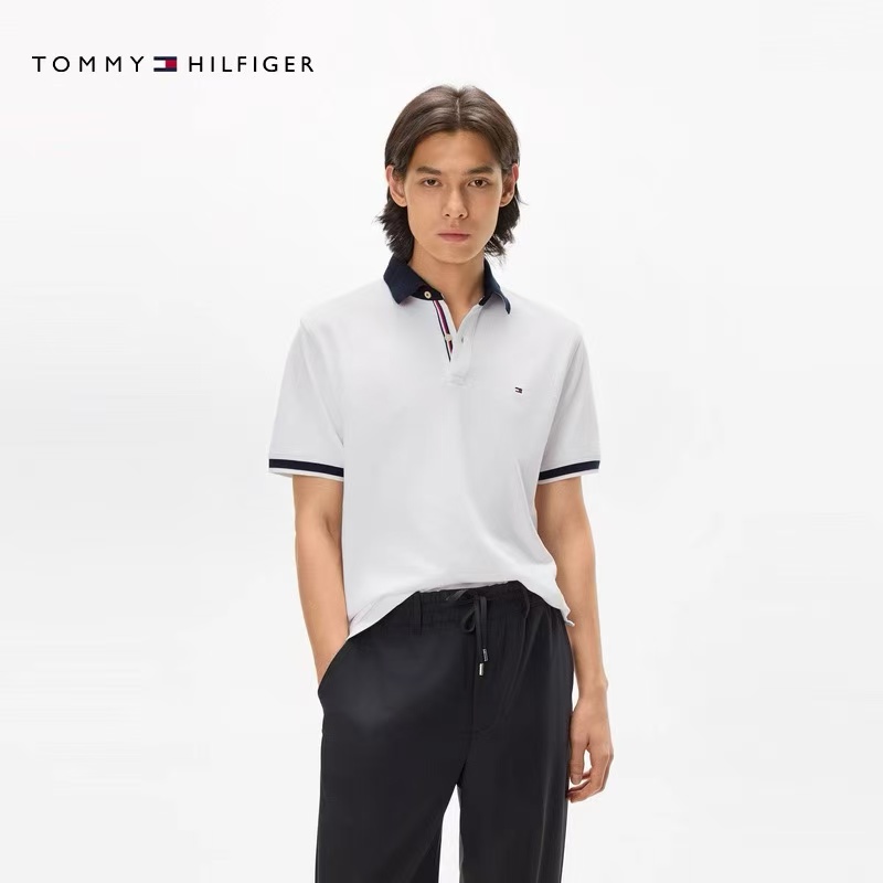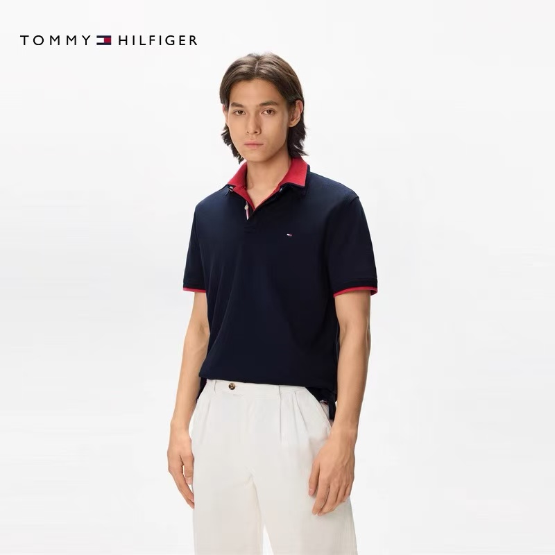 【9hd1】男子商务休闲撞色领珠地短袖POLO衫!!