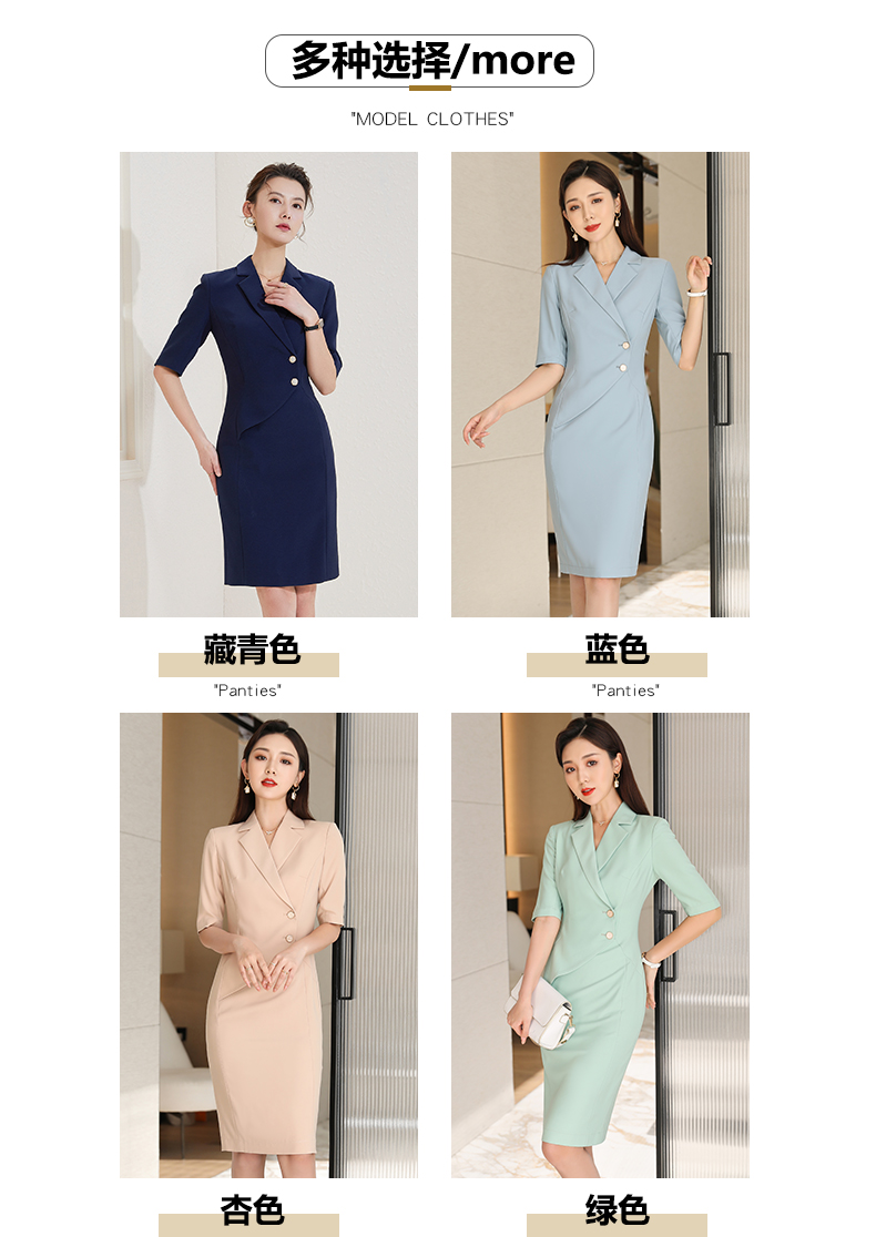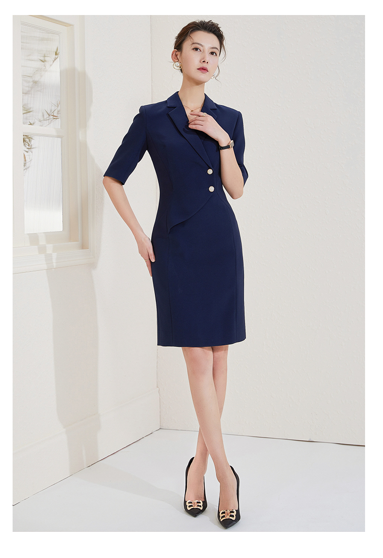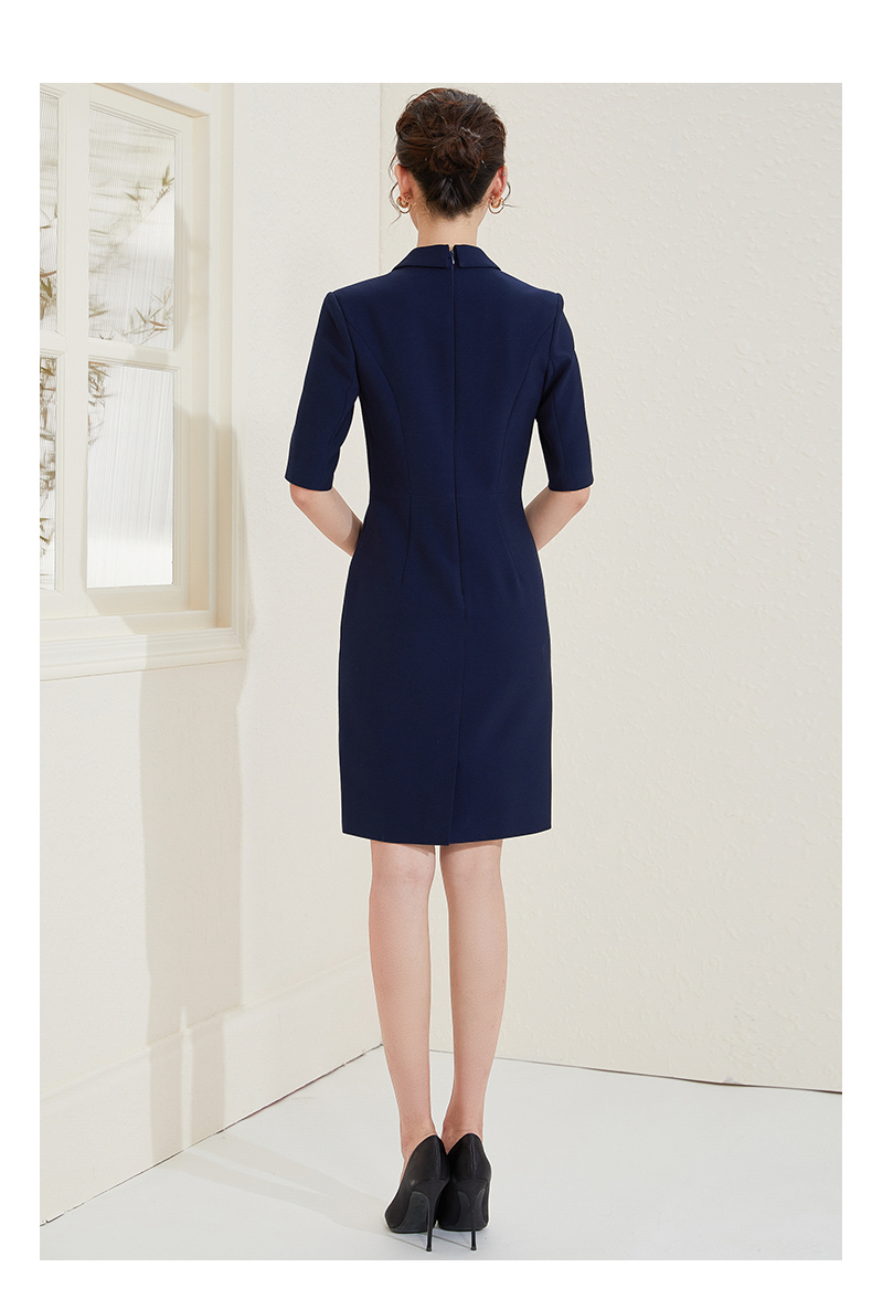 蓝色连衣裙夏五分袖OL面试职业装女韩版收腰显瘦珠宝店销售工作服