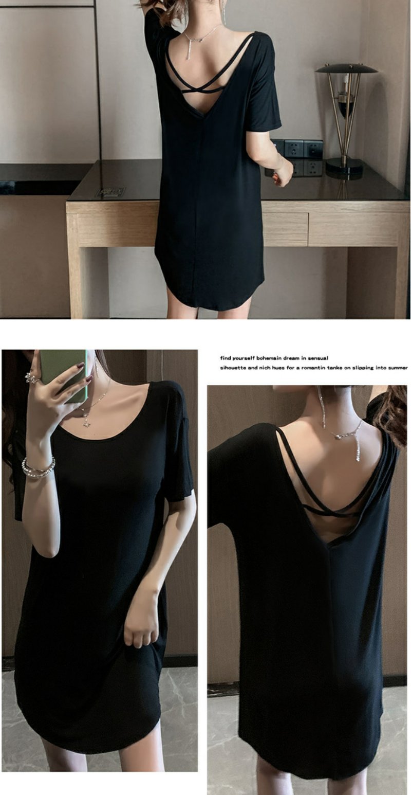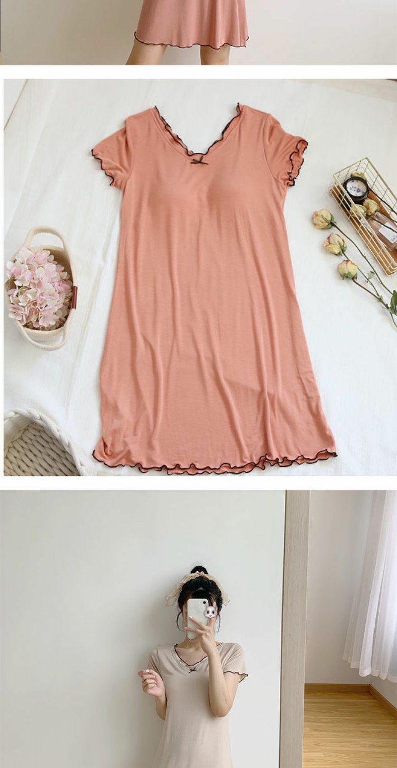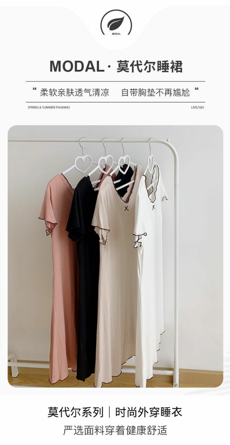 莫代尔睡裙女短袖夏天薄款弹力甜美少女200斤大码5XL家居服带胸垫