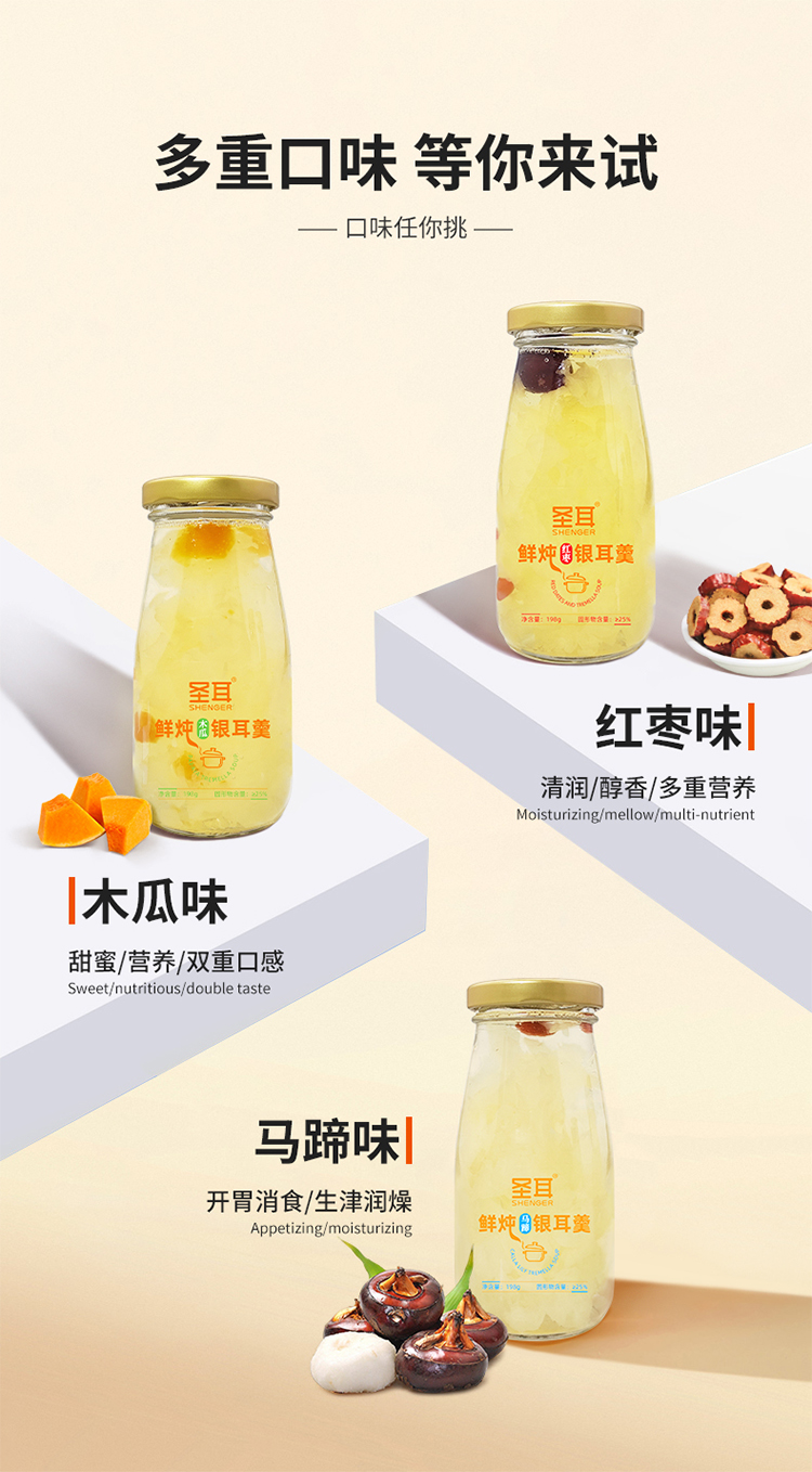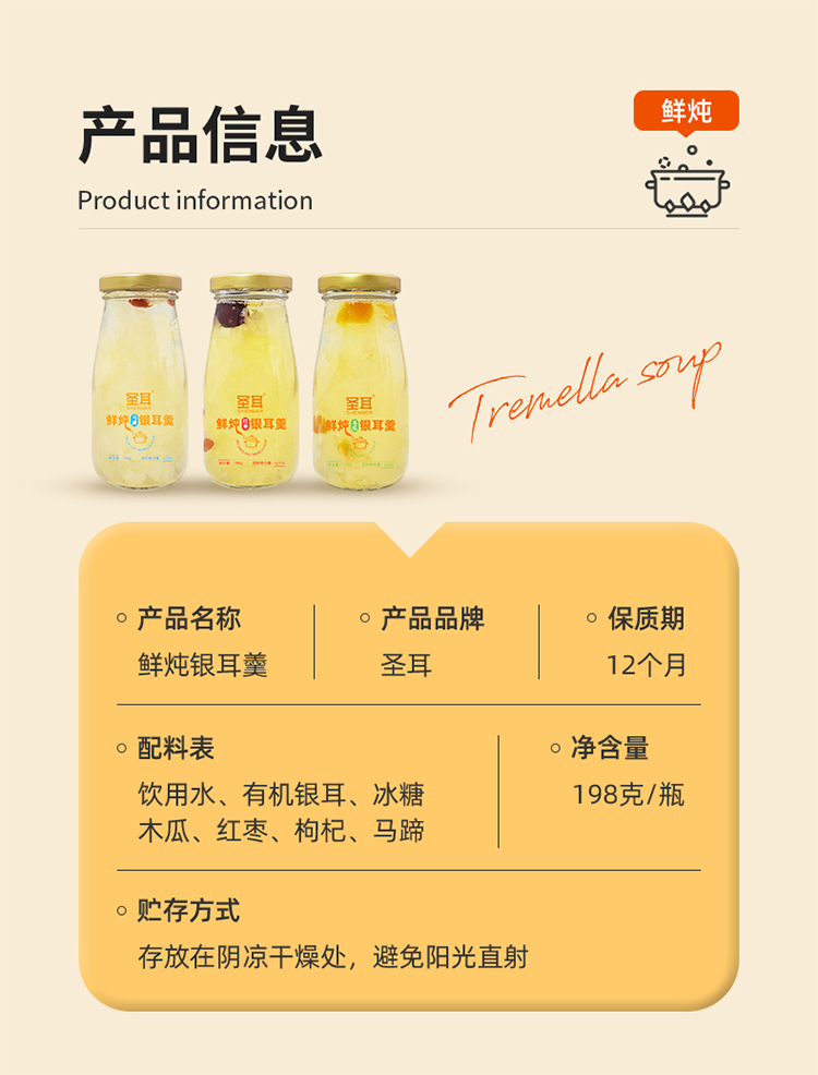 【好喝的】圣耳 鲜炖银耳羹 有机银耳 多种口味 混合口味 开盖即享 198g*6罐