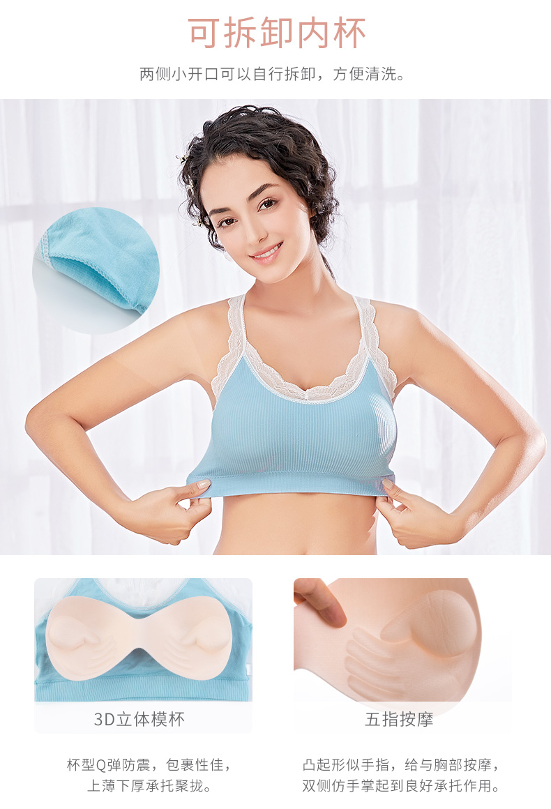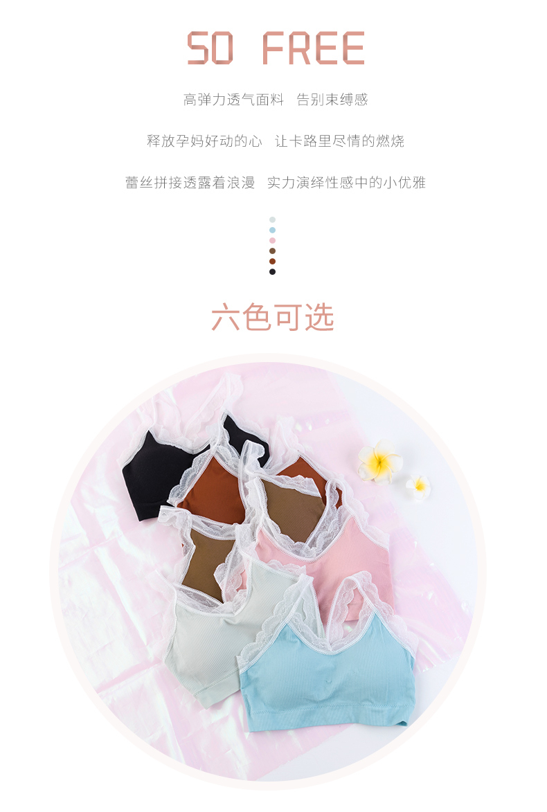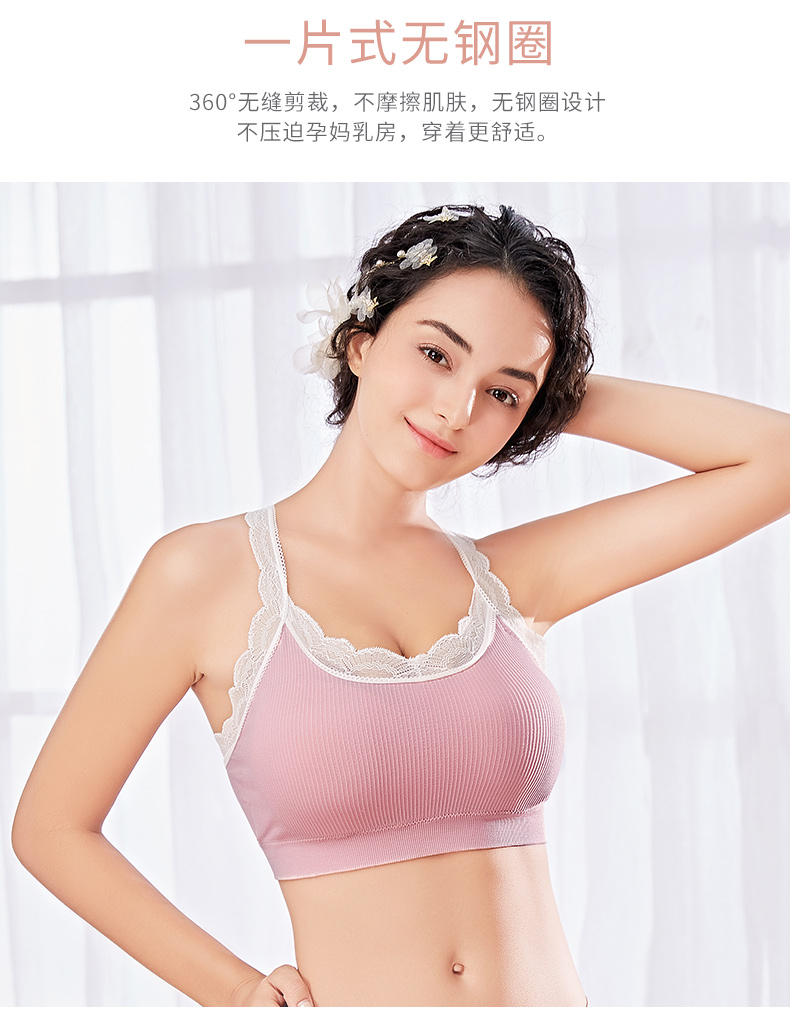 贝贝怡孕妇背心式内衣怀孕期舒适新款一片式蕾丝文胸少女运动文胸193Y509