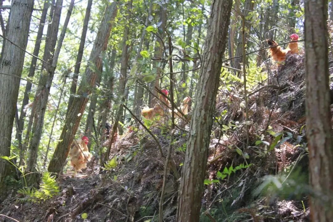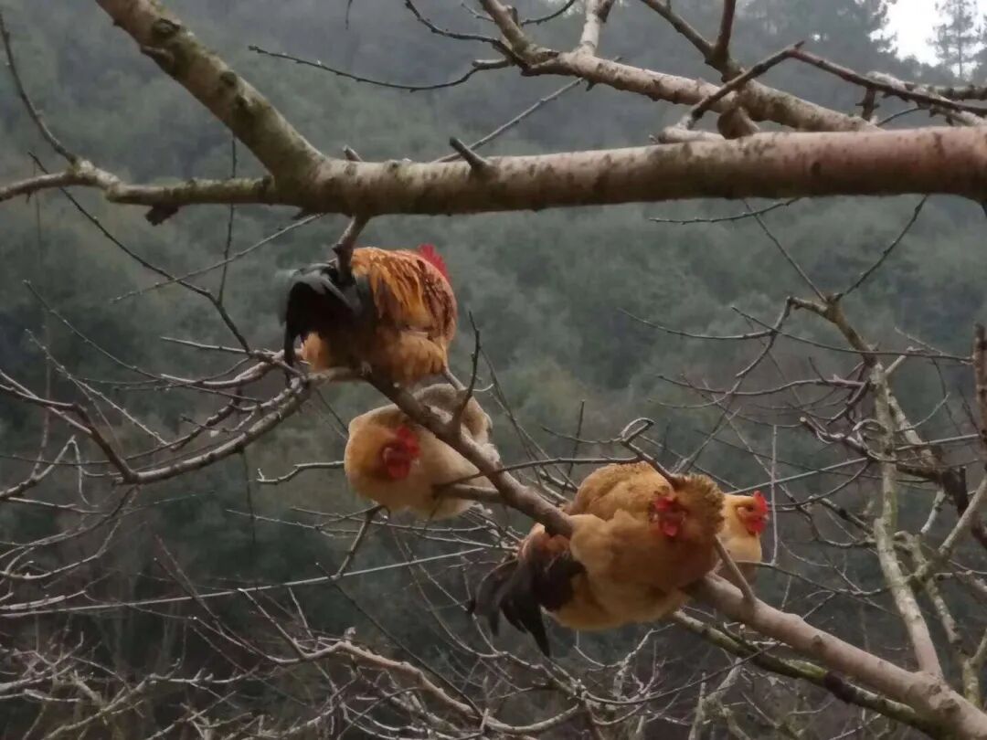 高山散养土鸡,每天呼吸着带有泥土芬芳的新鲜空气,喝着纯净的山间泉水,能上树、能吃虫。