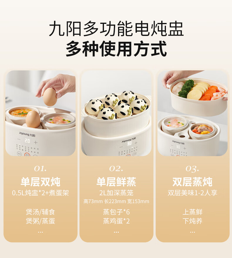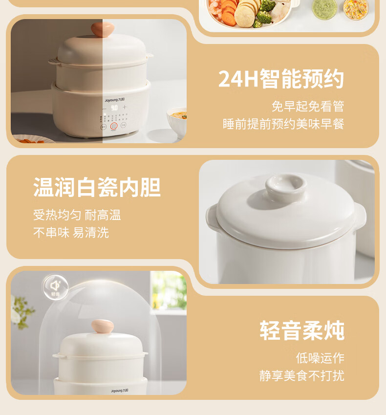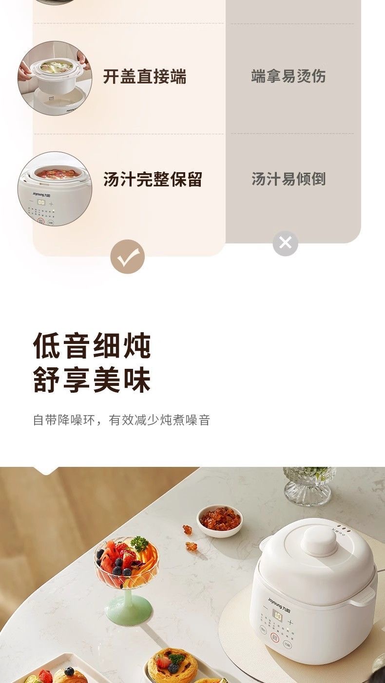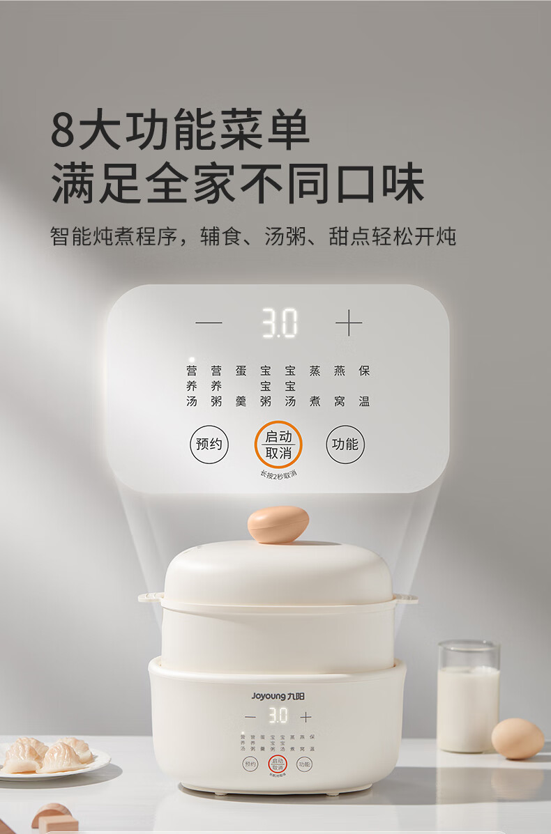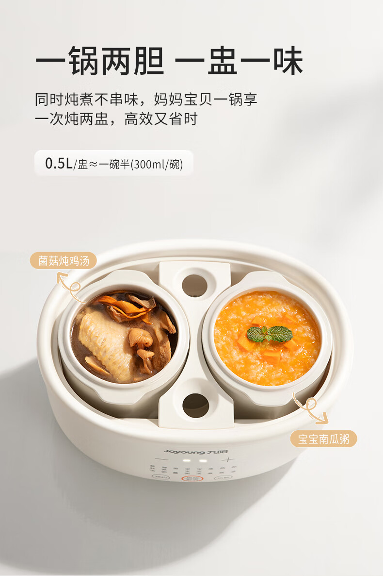 九阳隔水炖1.0L升电炖锅家用燕窝电炖盅婴儿辅食锅宝宝煮粥煲汤锅