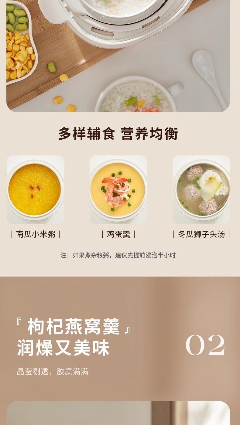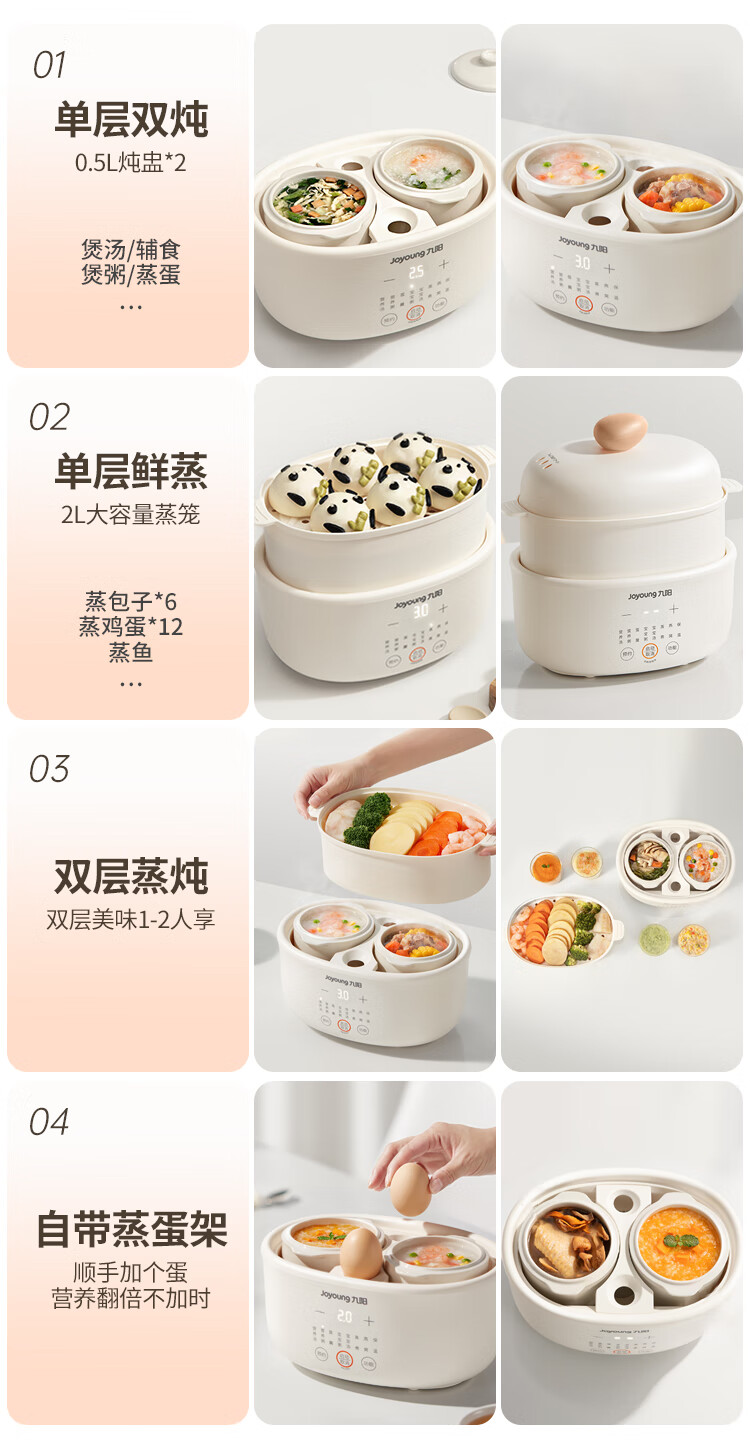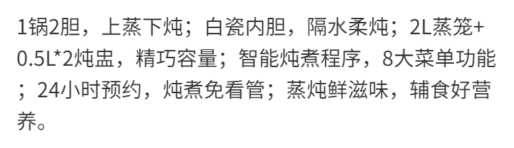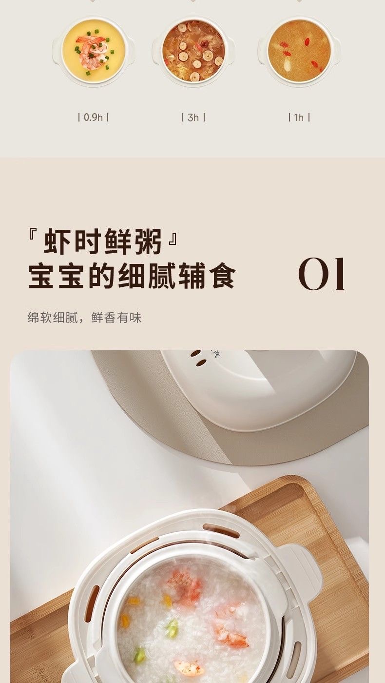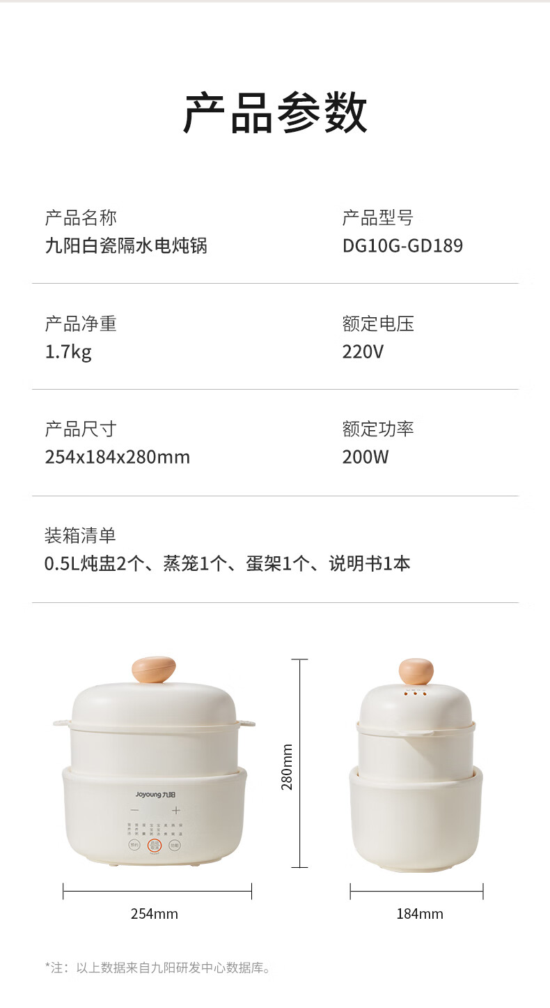 九阳隔水炖1.0L升电炖锅家用燕窝电炖盅婴儿辅食锅宝宝煮粥煲汤锅