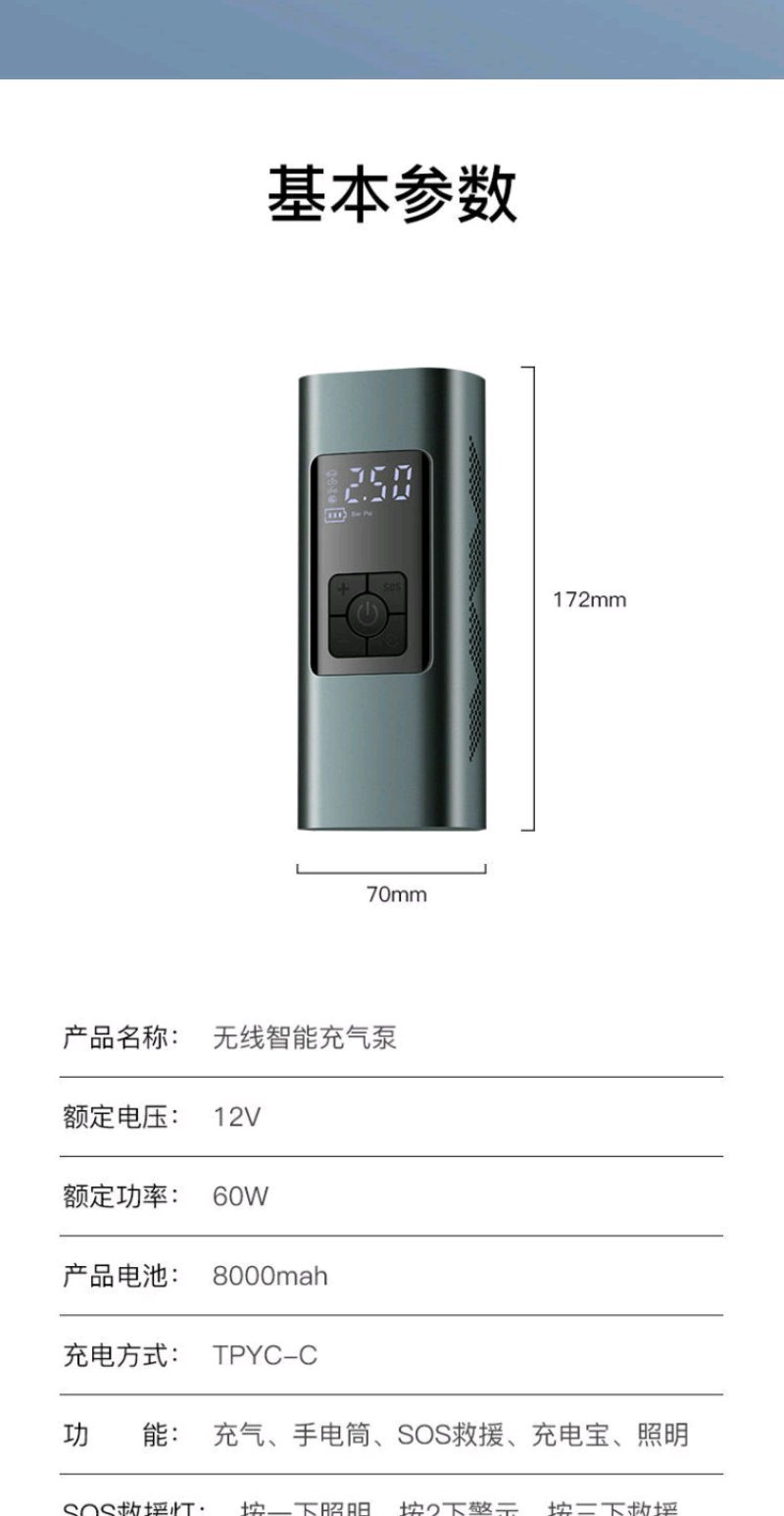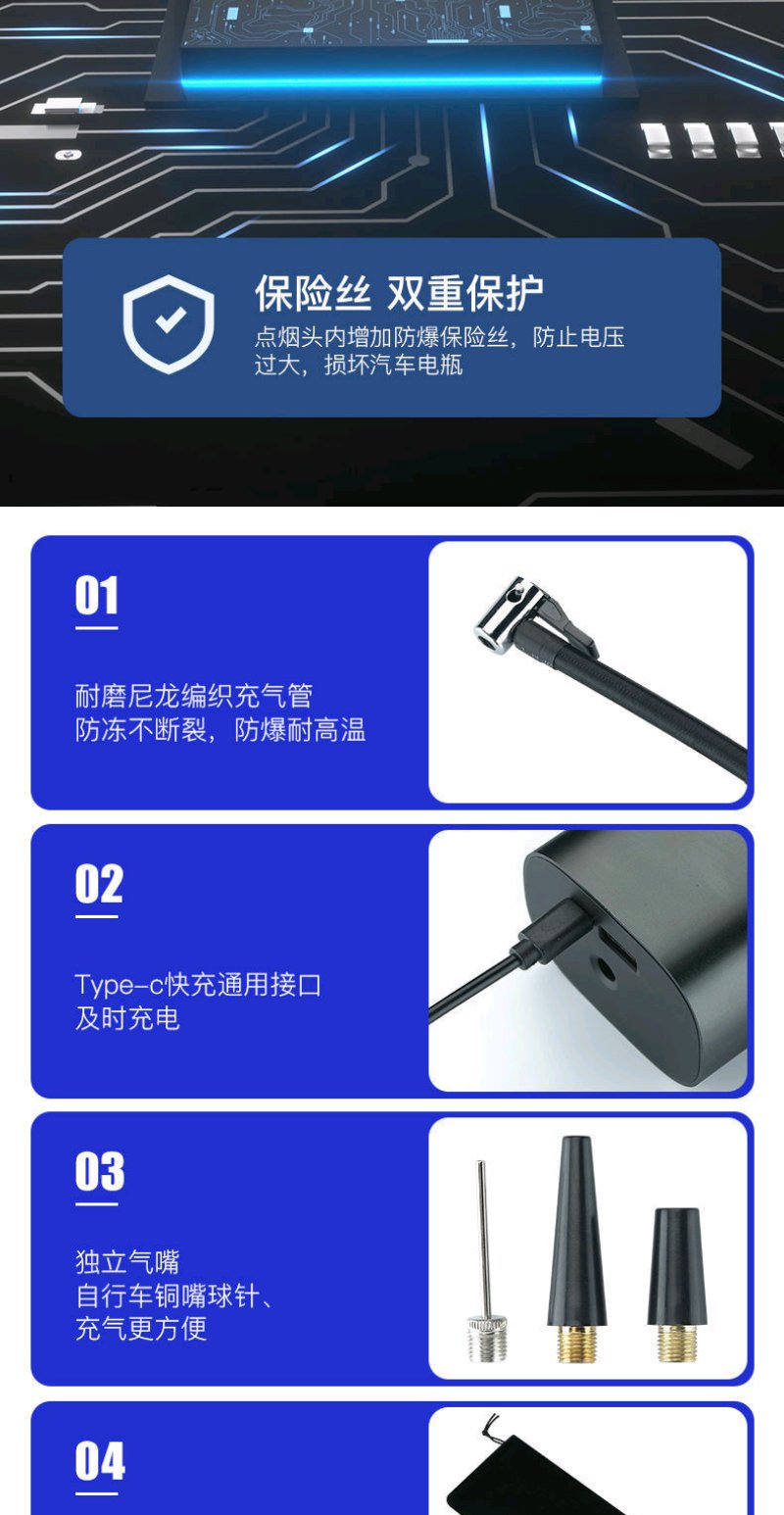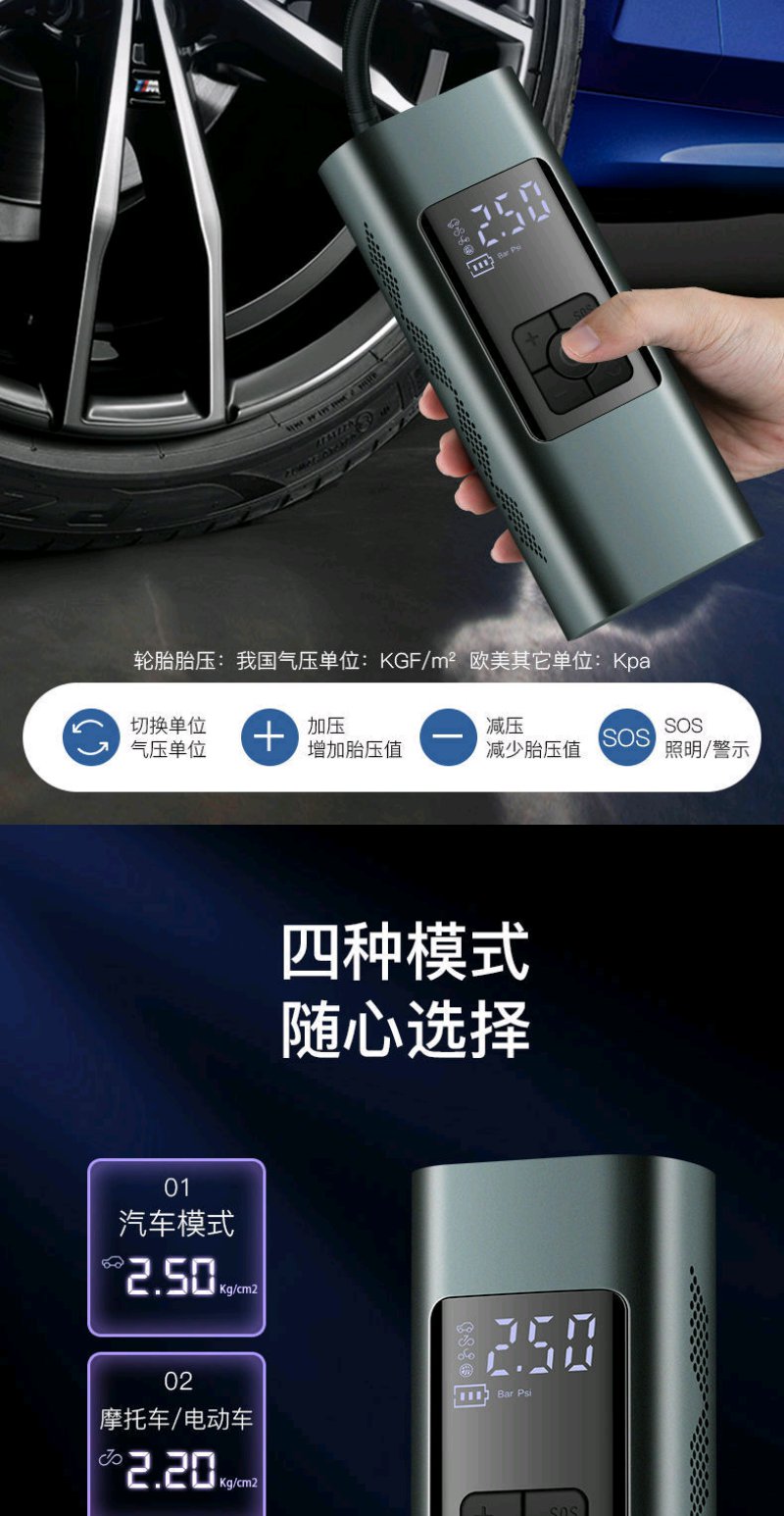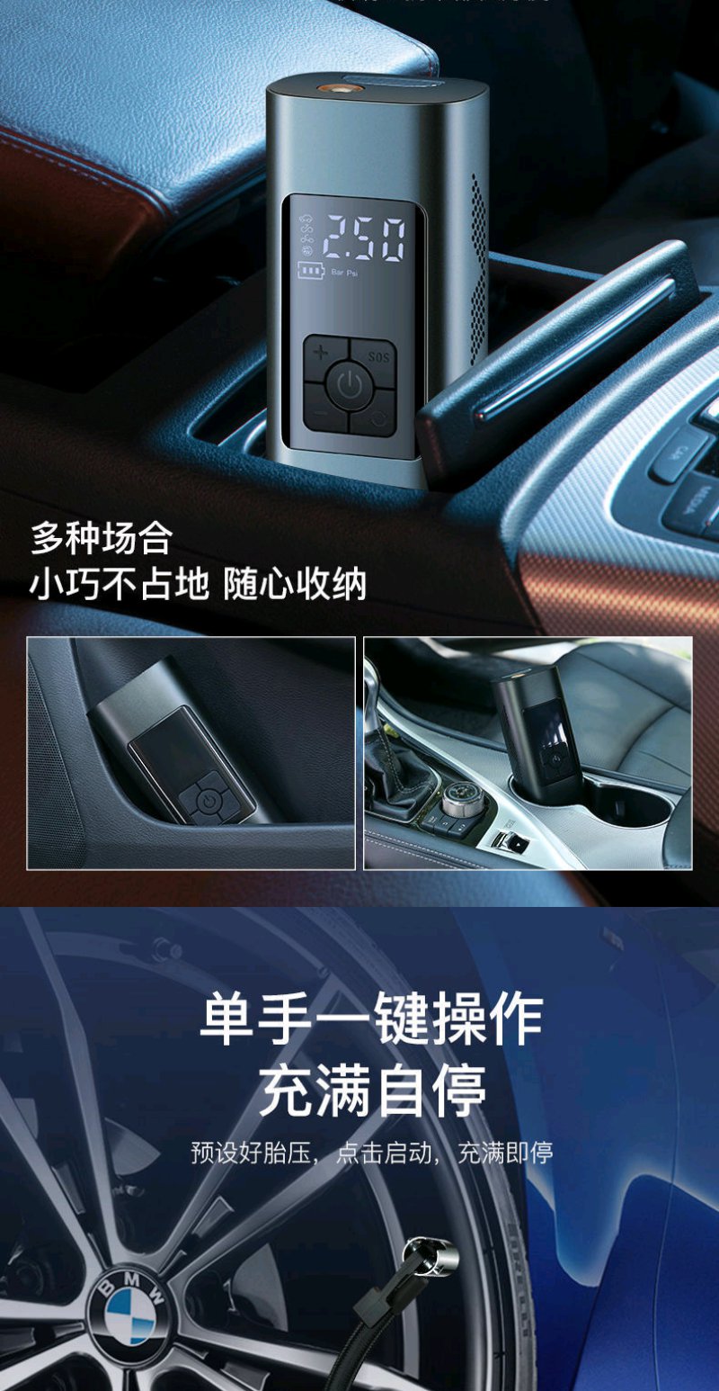 车载充气泵打气筒小轿车汽车用胎大功率便携式电动加气无线多功能