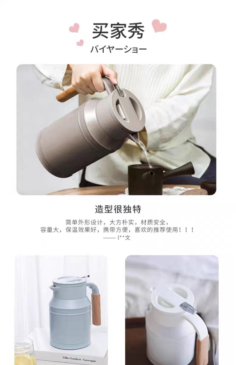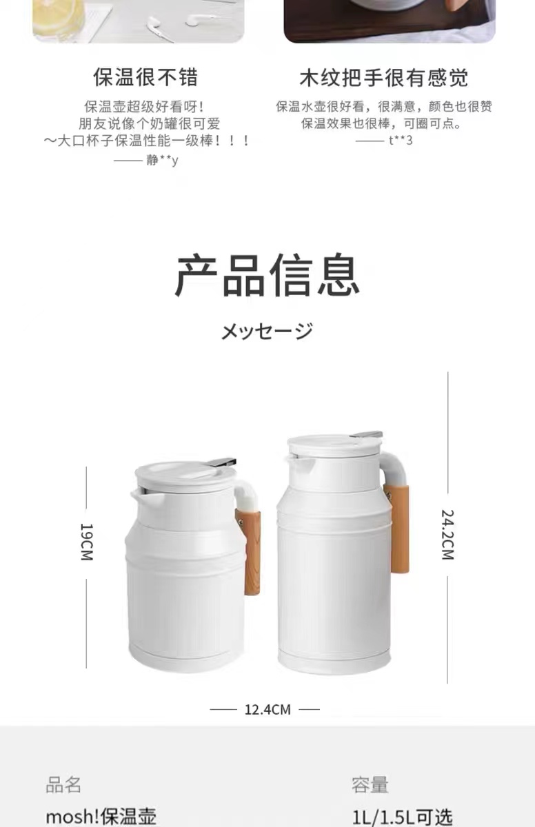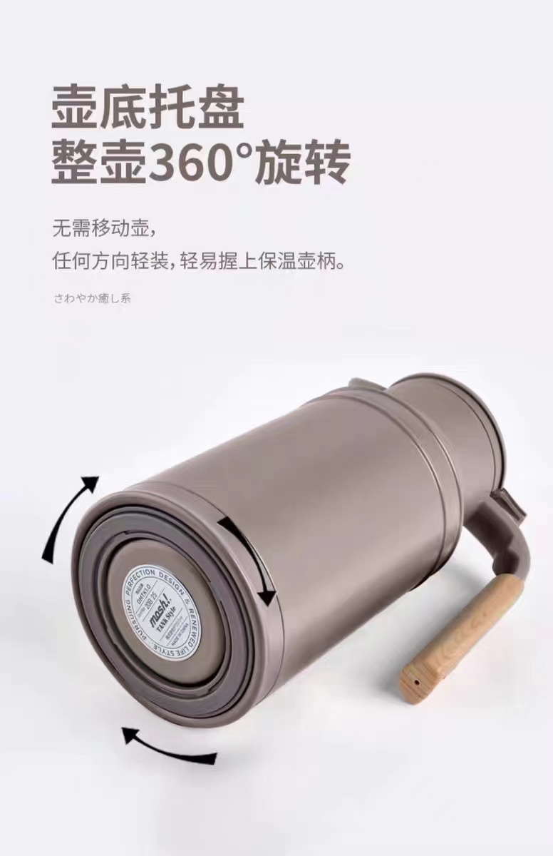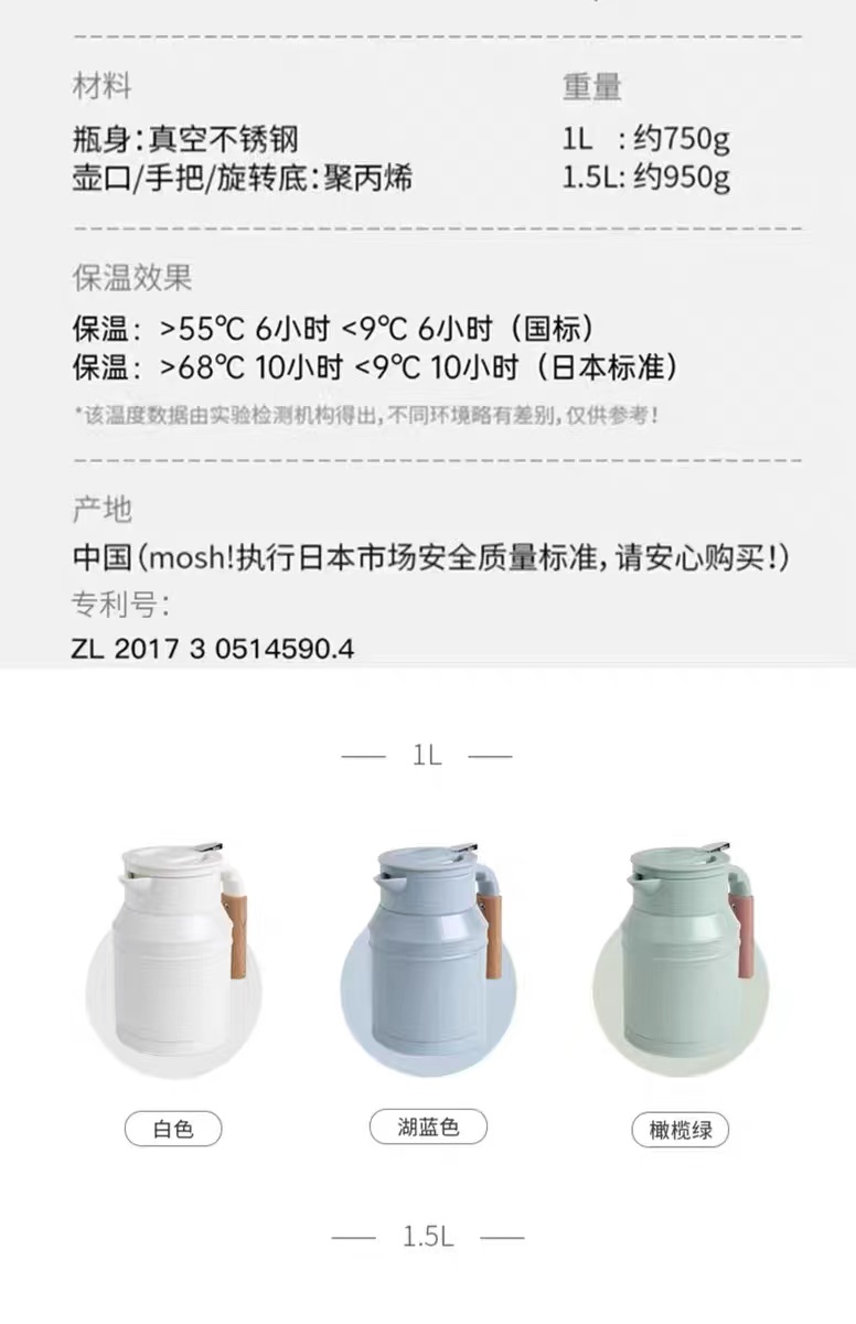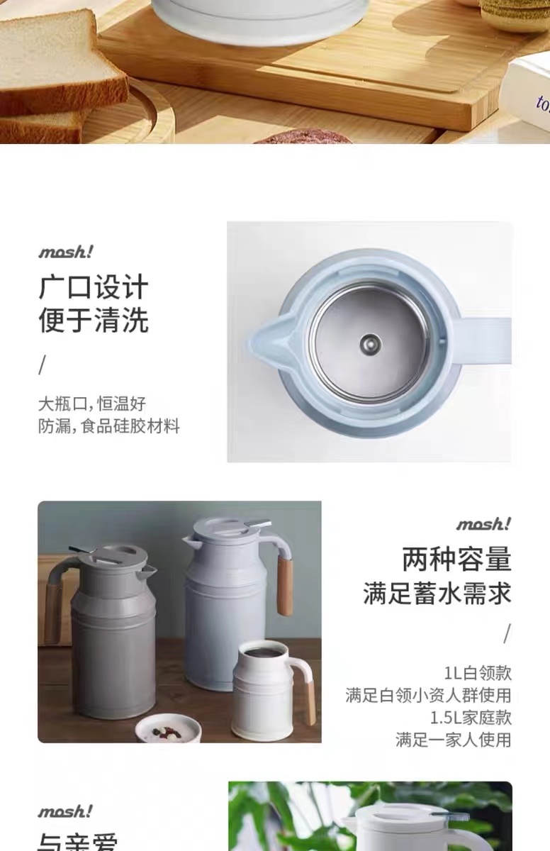 日本mosh进口保温壶家用大容量不锈钢牛奶壶360旋转保温水壶1.5L