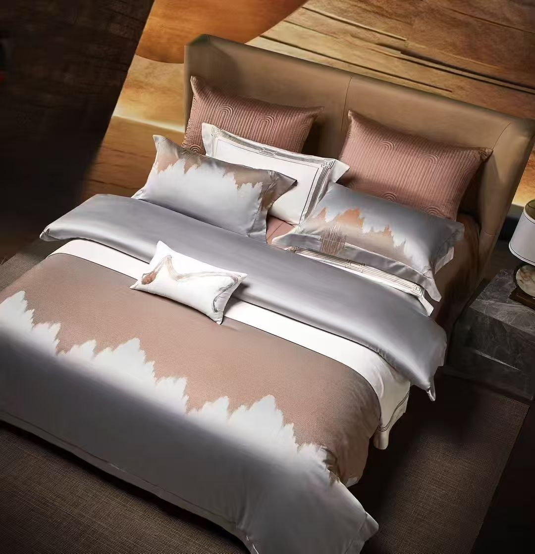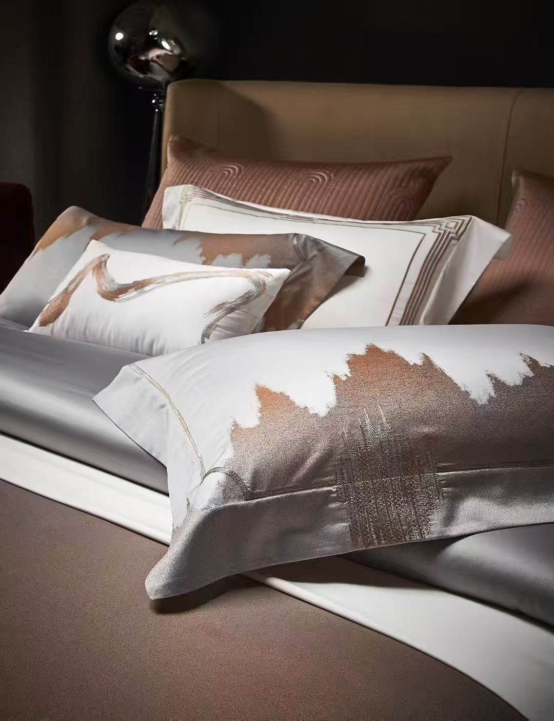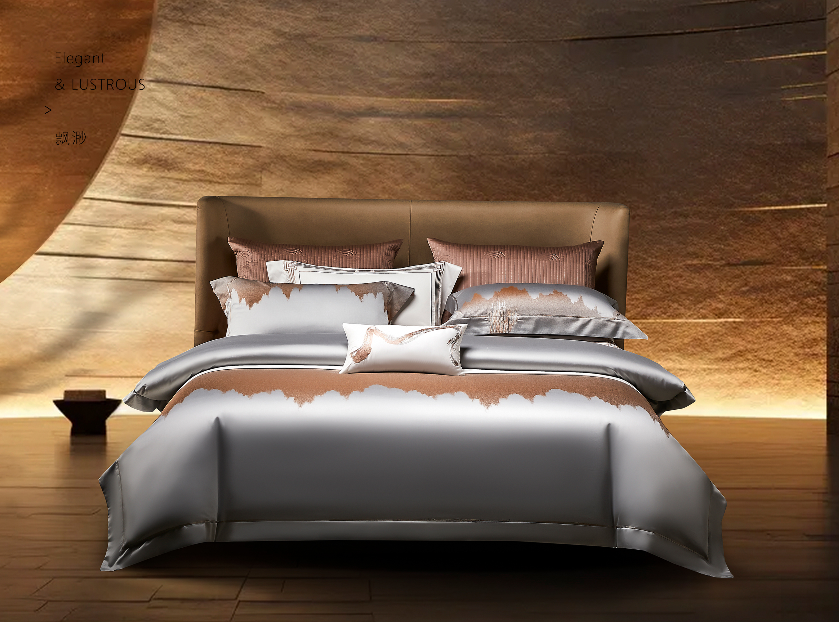 精选高品质长绒棉,结合独具匠心多色纬工艺,高支高密,亮泽典雅,犹如肌肤般细腻柔滑。被面月光灰与香槟粉搭配渐变设计,谱写东方神韵与意境之美,让卧室具有与众不同的时尚格调与品位。