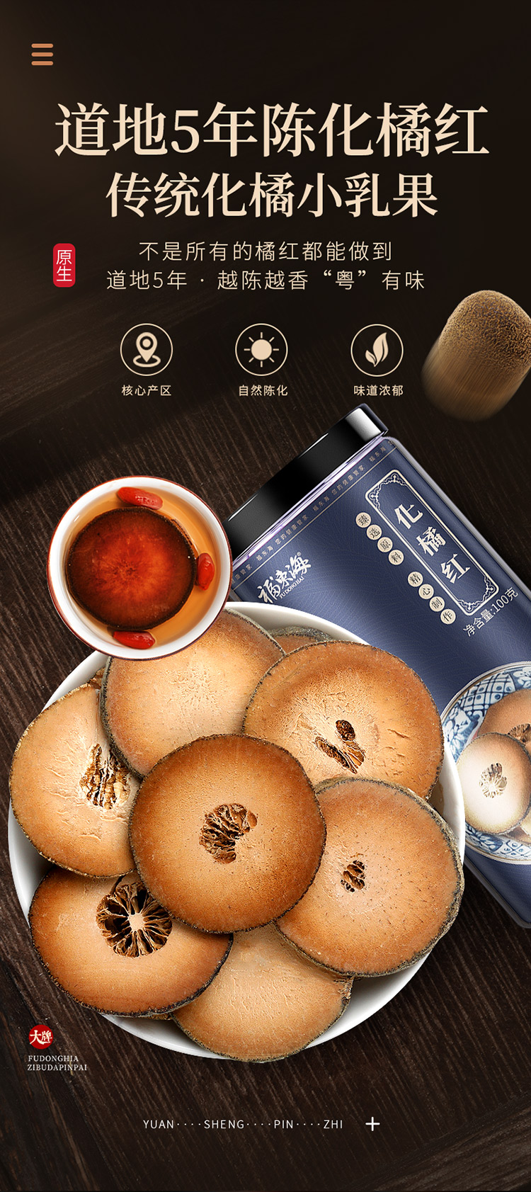福东海 化橘红茶 正宗化州化橘红片100克 陈年化橘红果切片 养生茶