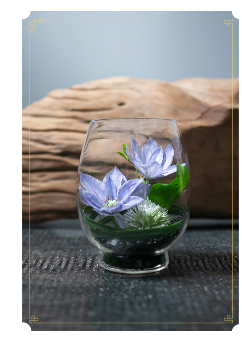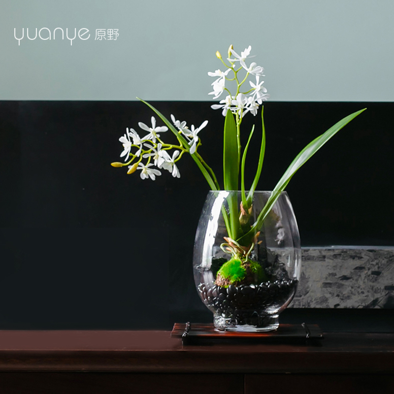 新中式酒店餐厅玄关玻璃花瓶仿真花假花客厅摆设插花花艺装饰摆件