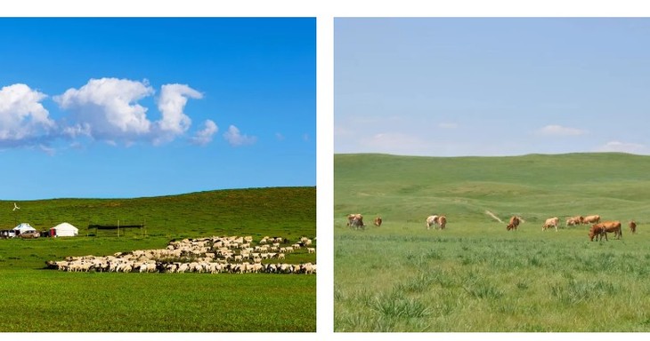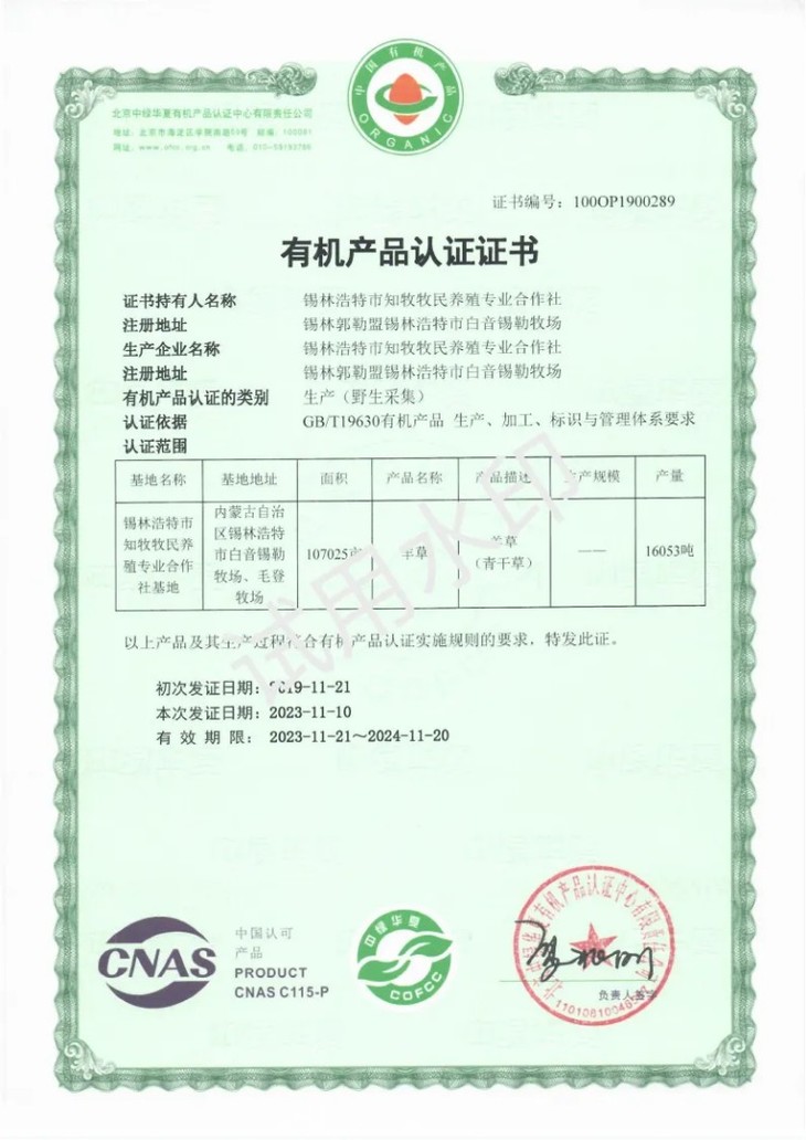 合作社有10万亩有机认证的生态牧场,广阔无垠,牧草丰茂,划区轮牧,草畜平衡。草场使用本农场牛羊粪改良土壤,实现生态内部循环。