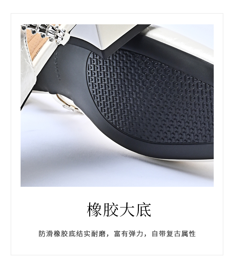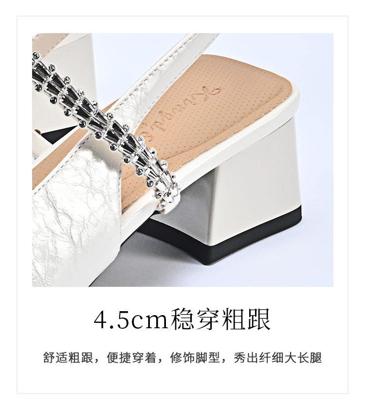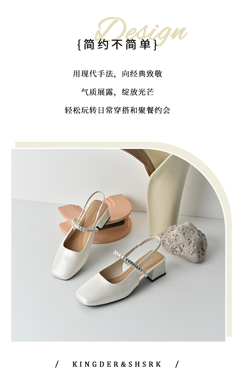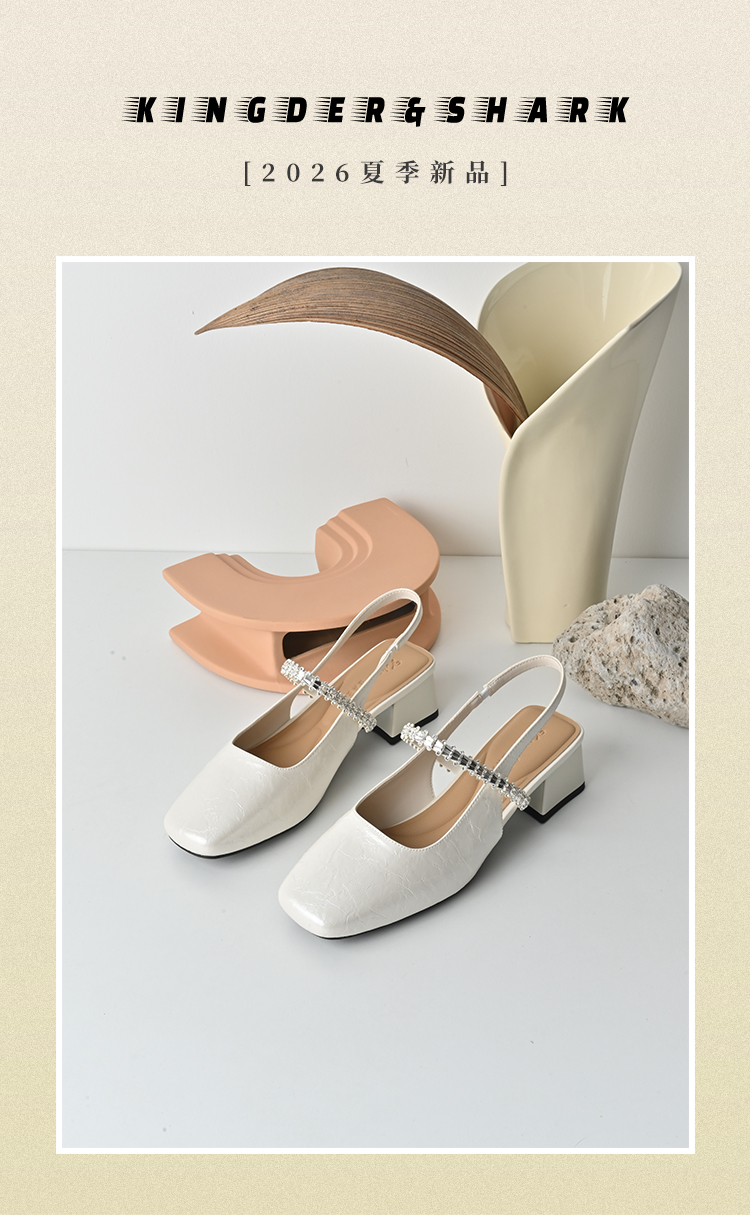 经典鲨2026年夏专柜新品时尚方头后空中粗跟水钻单鞋凉鞋女KW127-629031