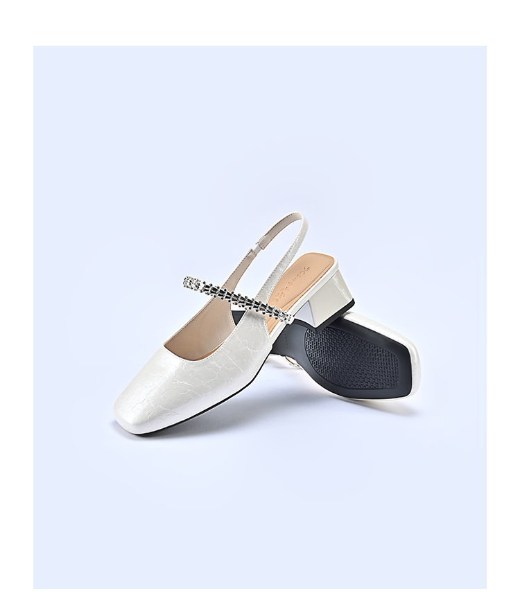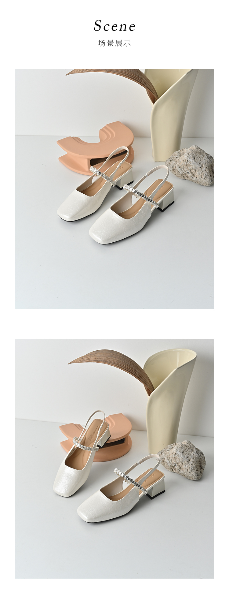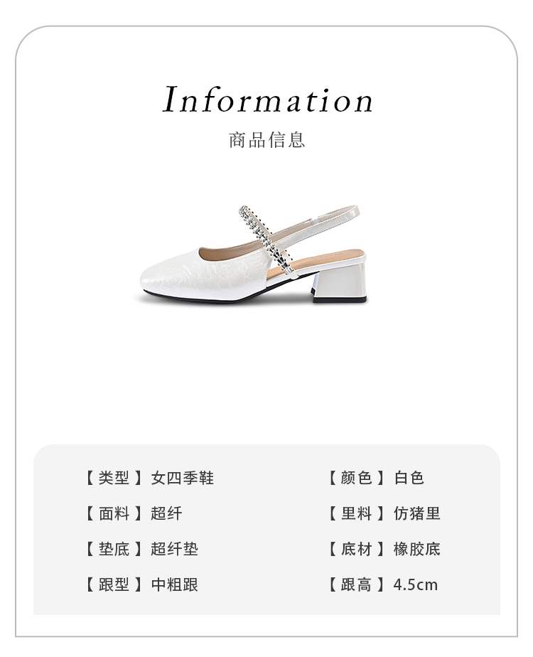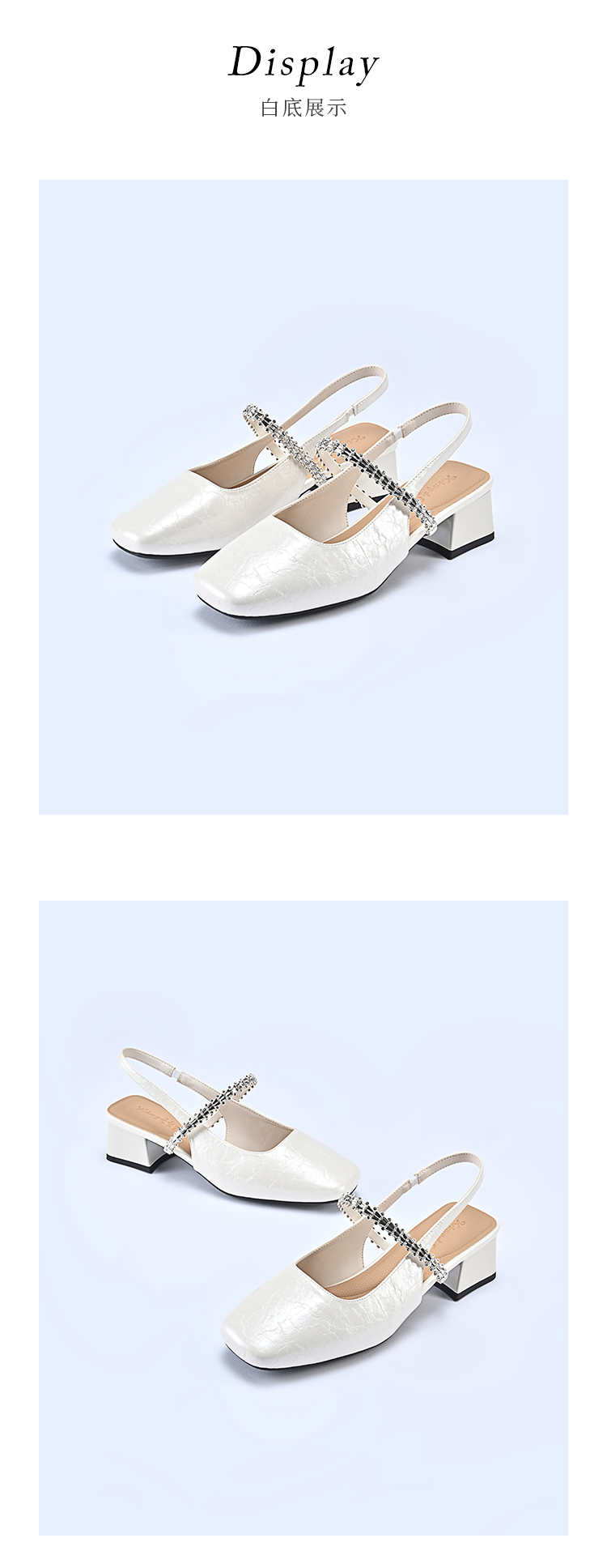 经典鲨2026年夏专柜新品时尚方头后空中粗跟水钻单鞋凉鞋女KW127-629031
