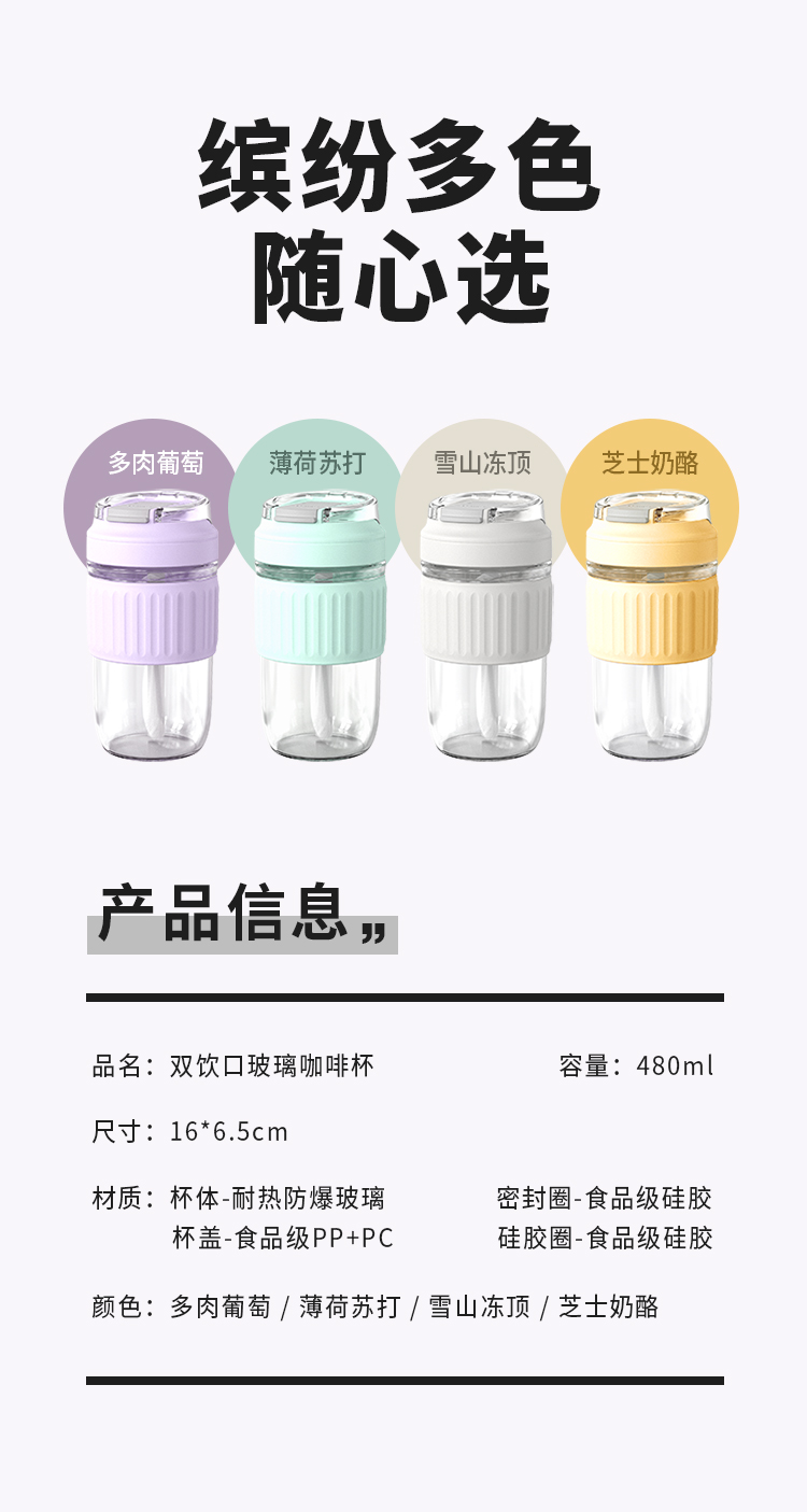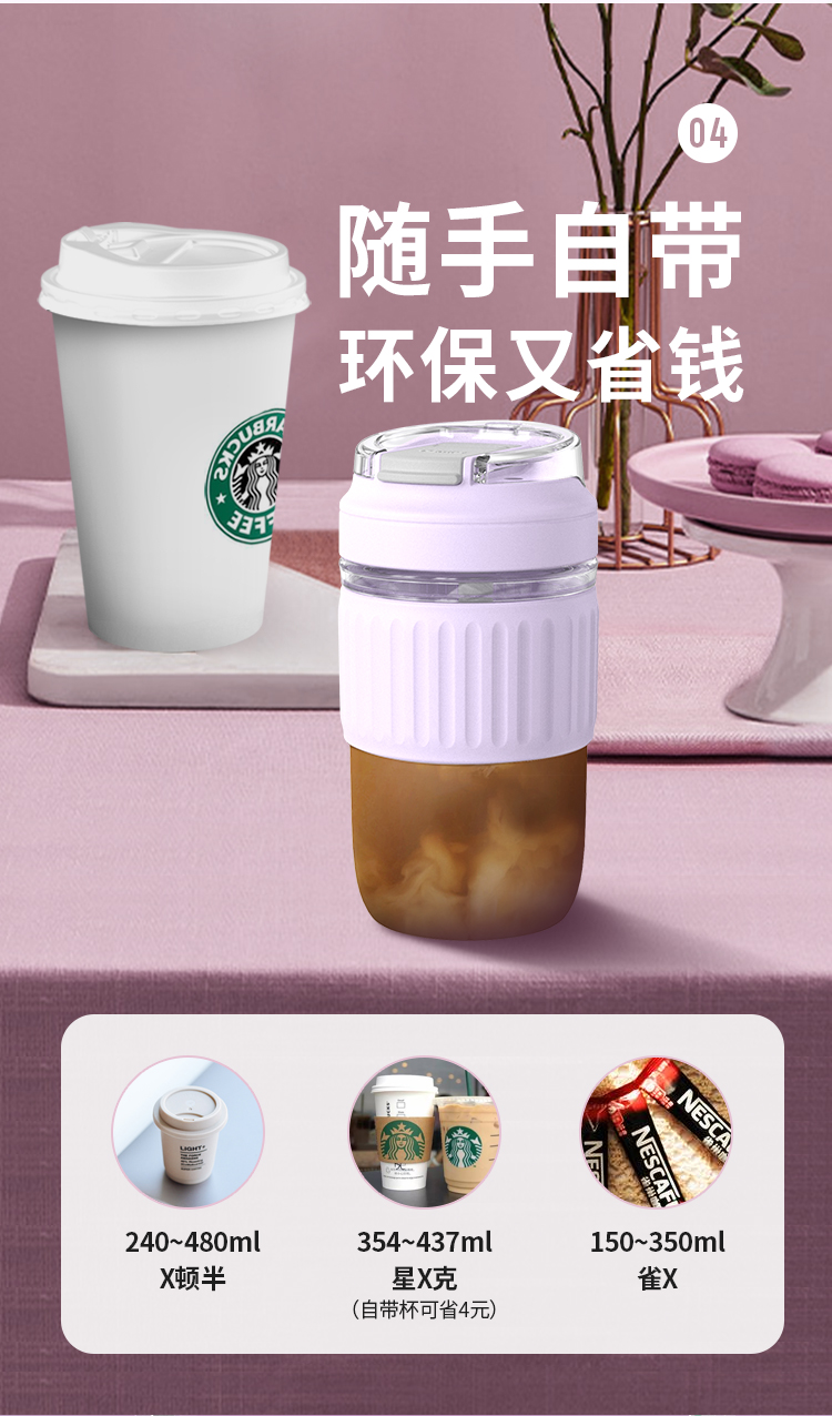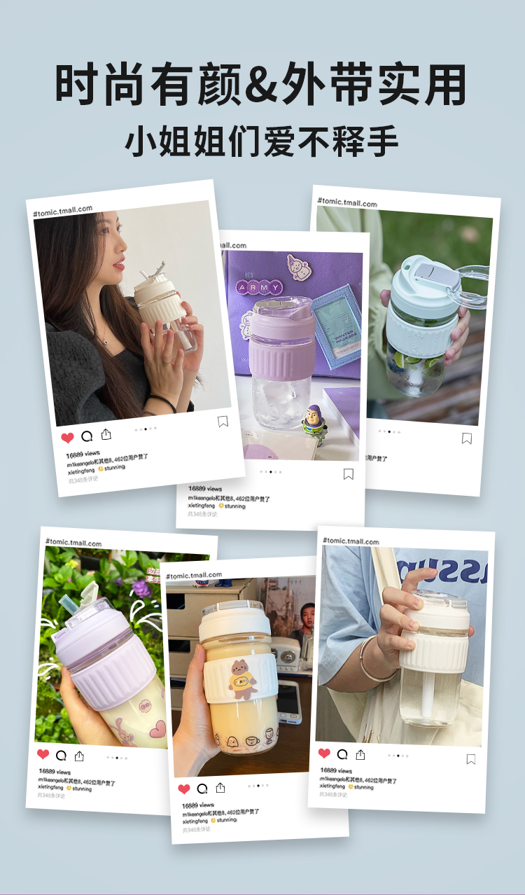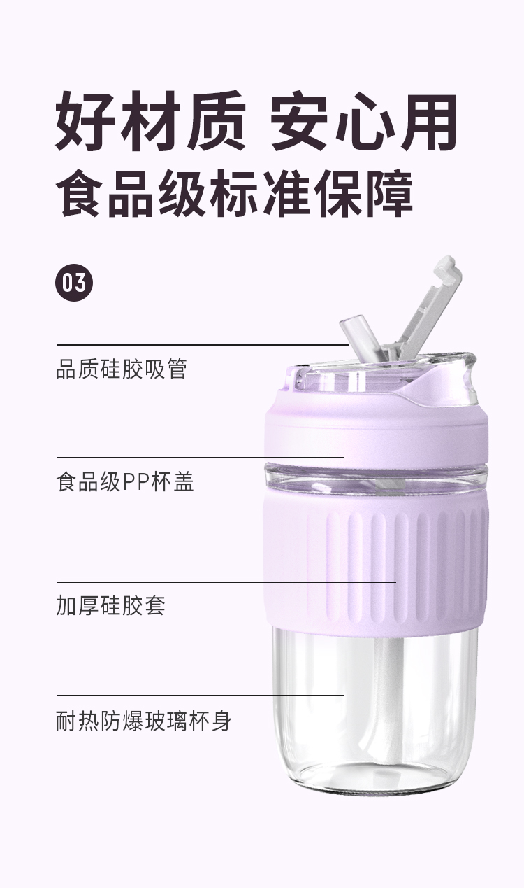 特美刻(TOMIC)玻璃杯 咖啡杯手持玻璃杯男女学生便携吸管杯ins风茶水杯子 TG82027浅绿色 480ML