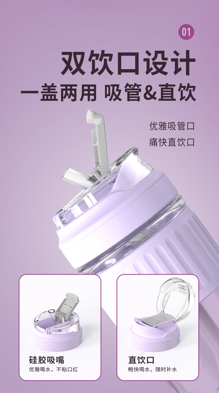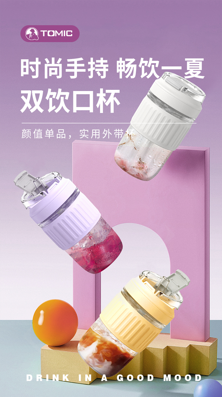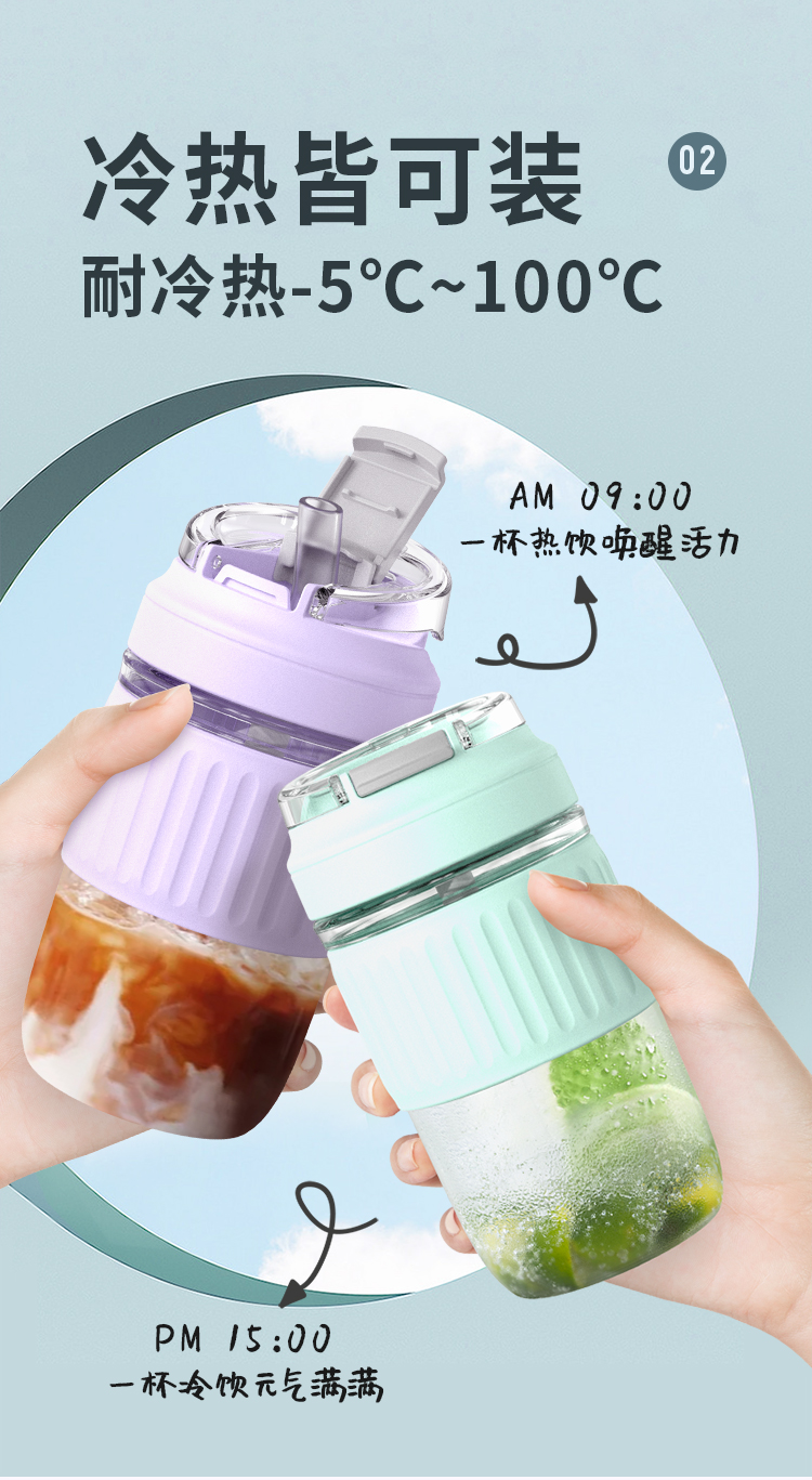 特美刻(TOMIC)玻璃杯 咖啡杯手持玻璃杯男女学生便携吸管杯ins风茶水杯子 TG82027浅绿色 480ML
