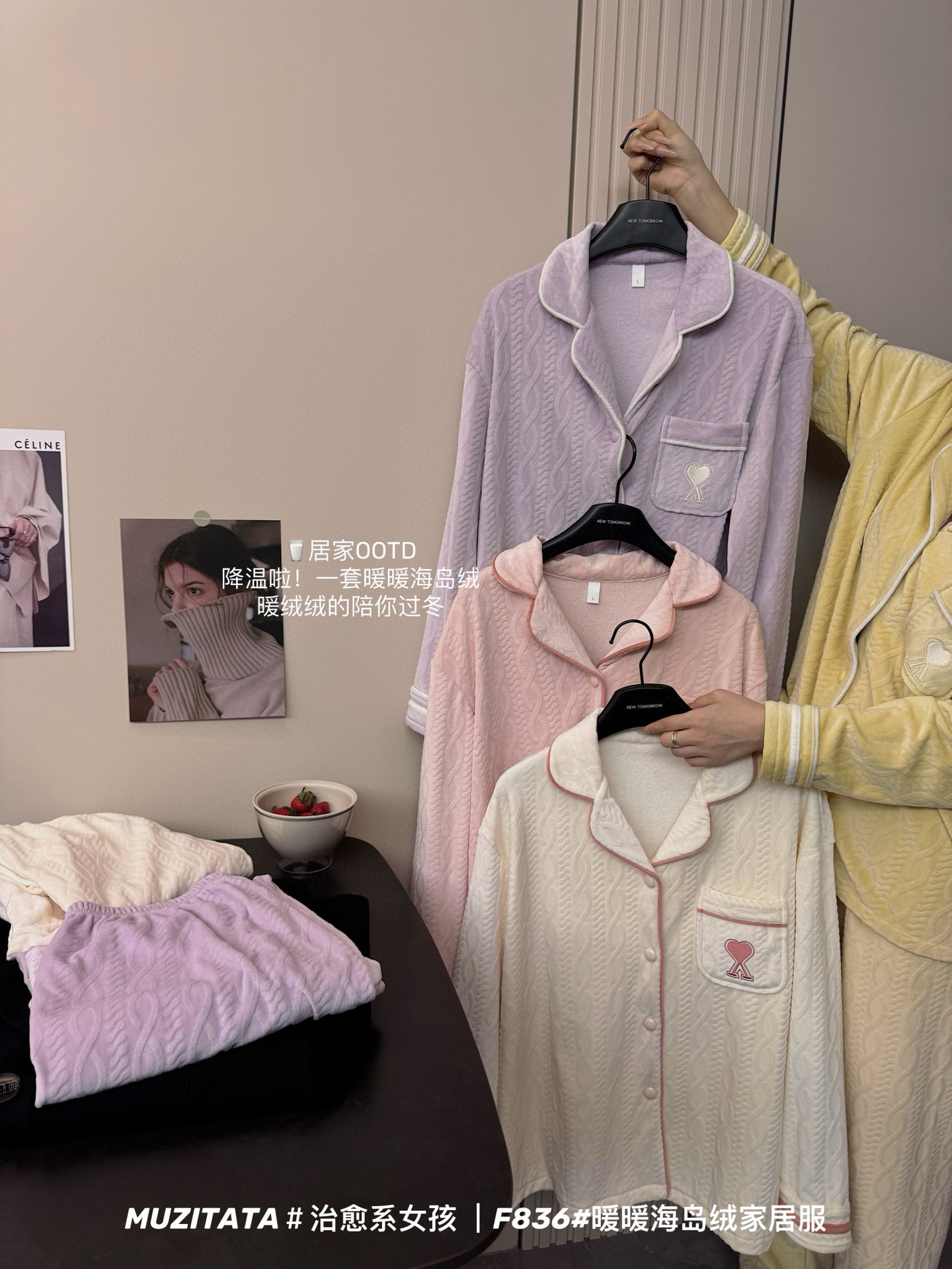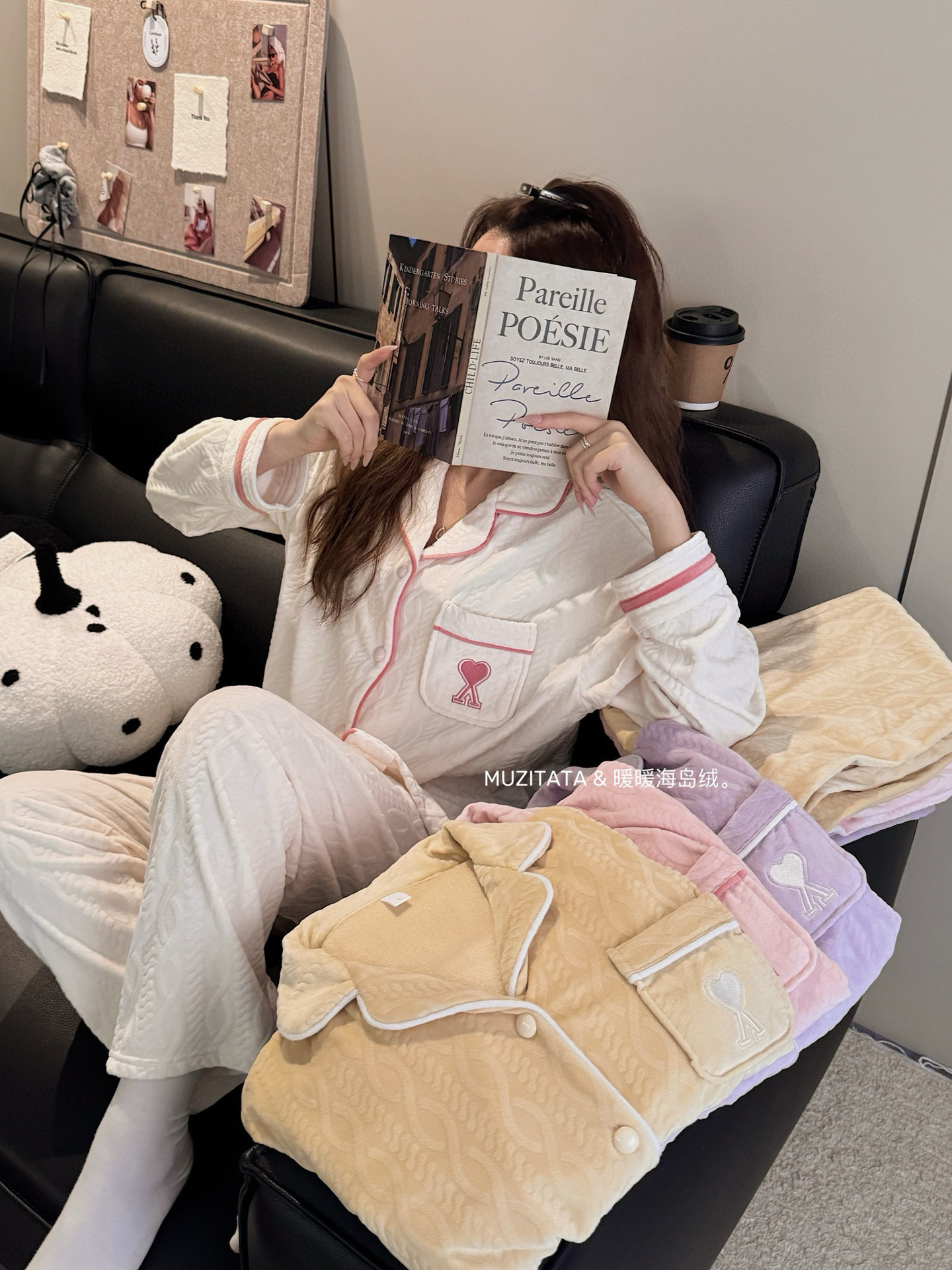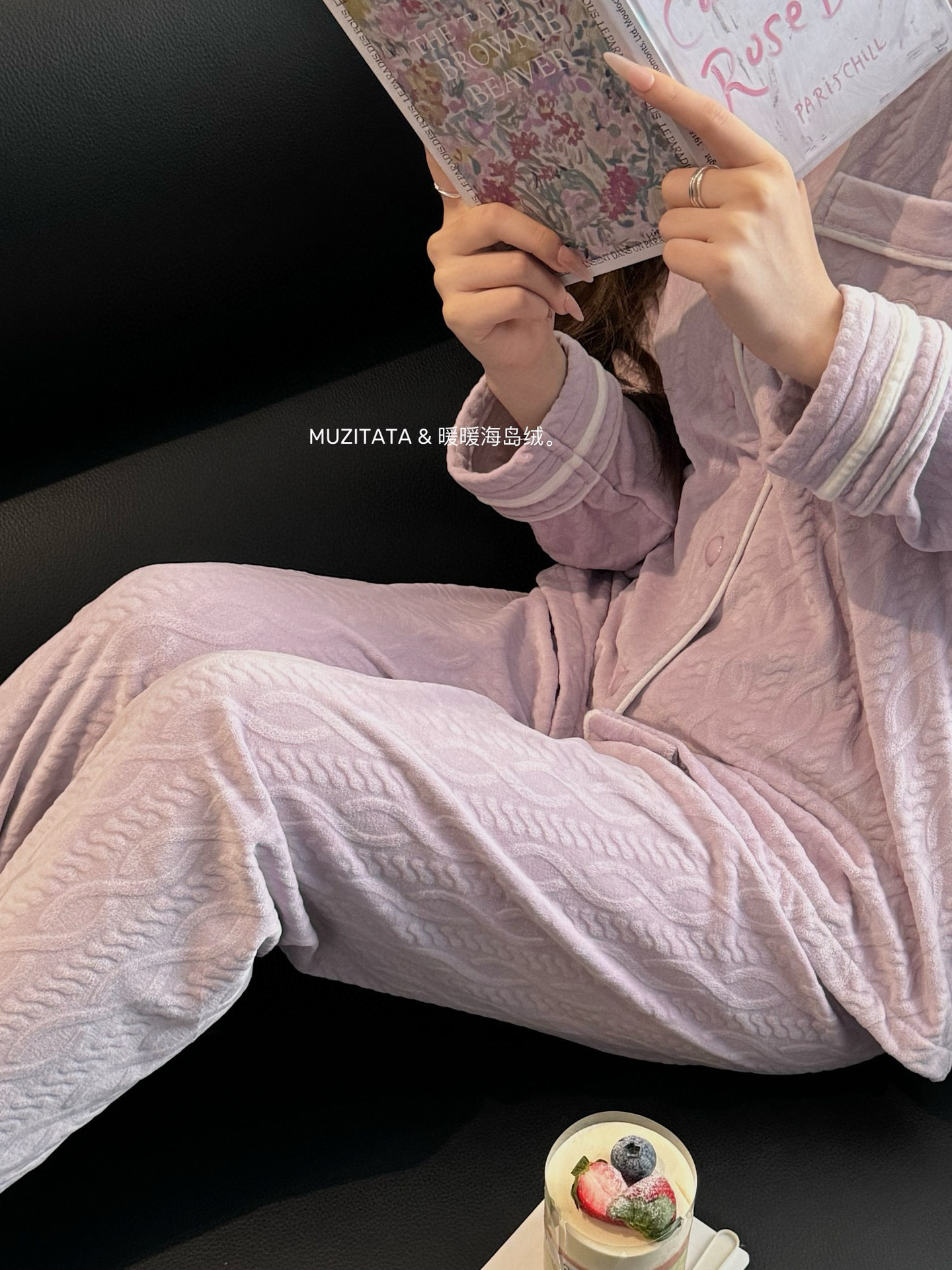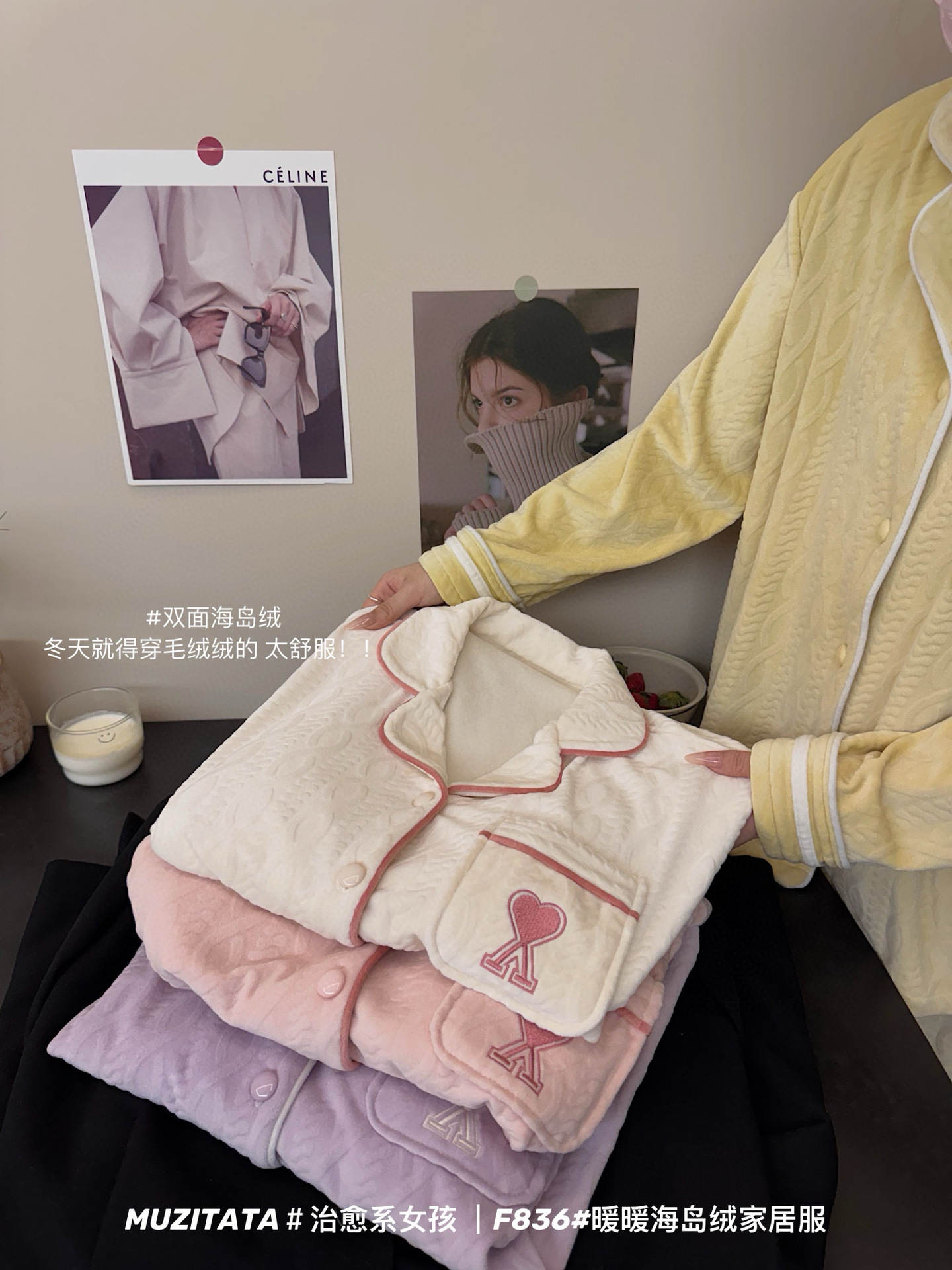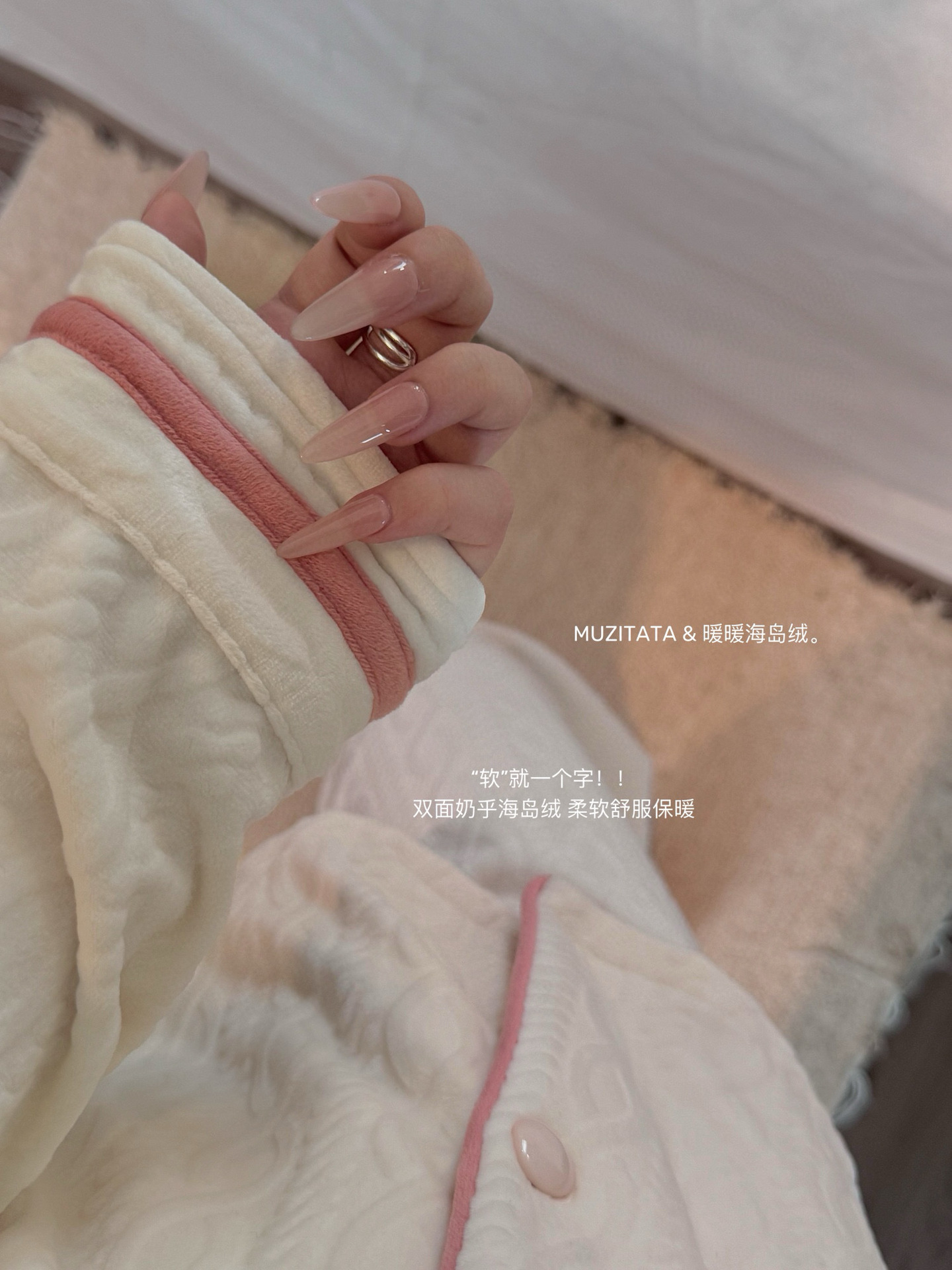【超治愈❗️暖暖海岛绒家居服】奶乎乎马卡龙色系,暖绒绒陪你过冬!长袖上衣长裤套装组合,MUZITATA治愈系女孩女秋冬双面绒睡衣