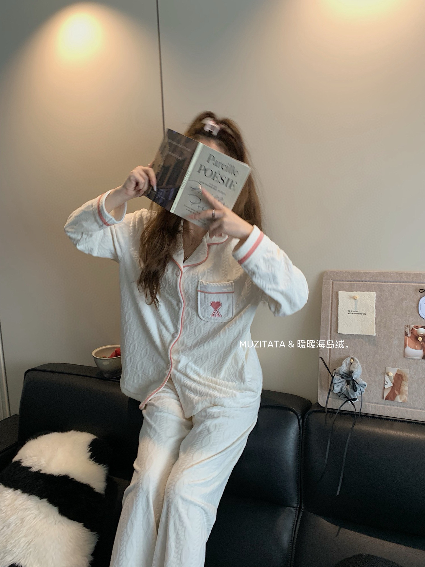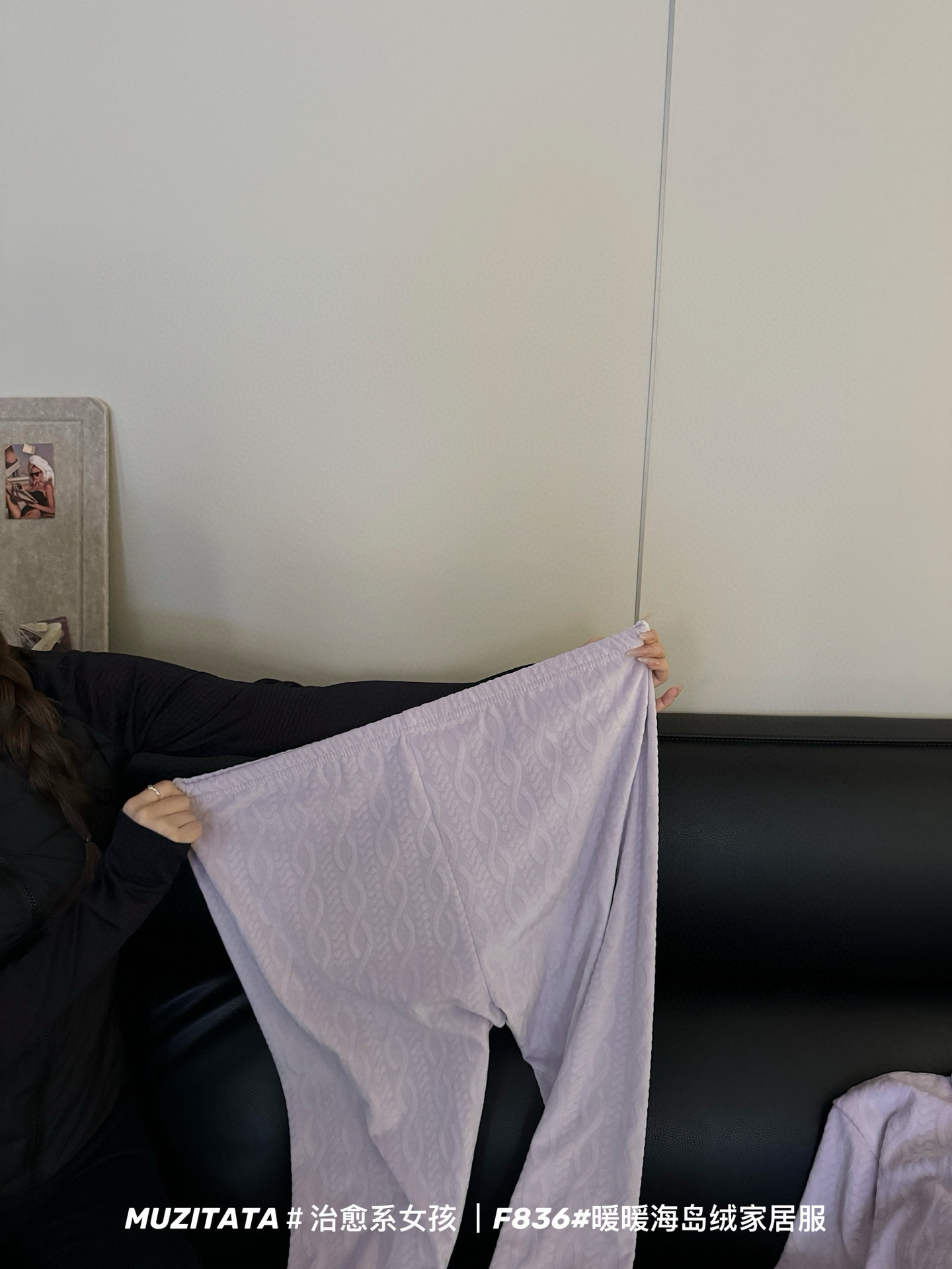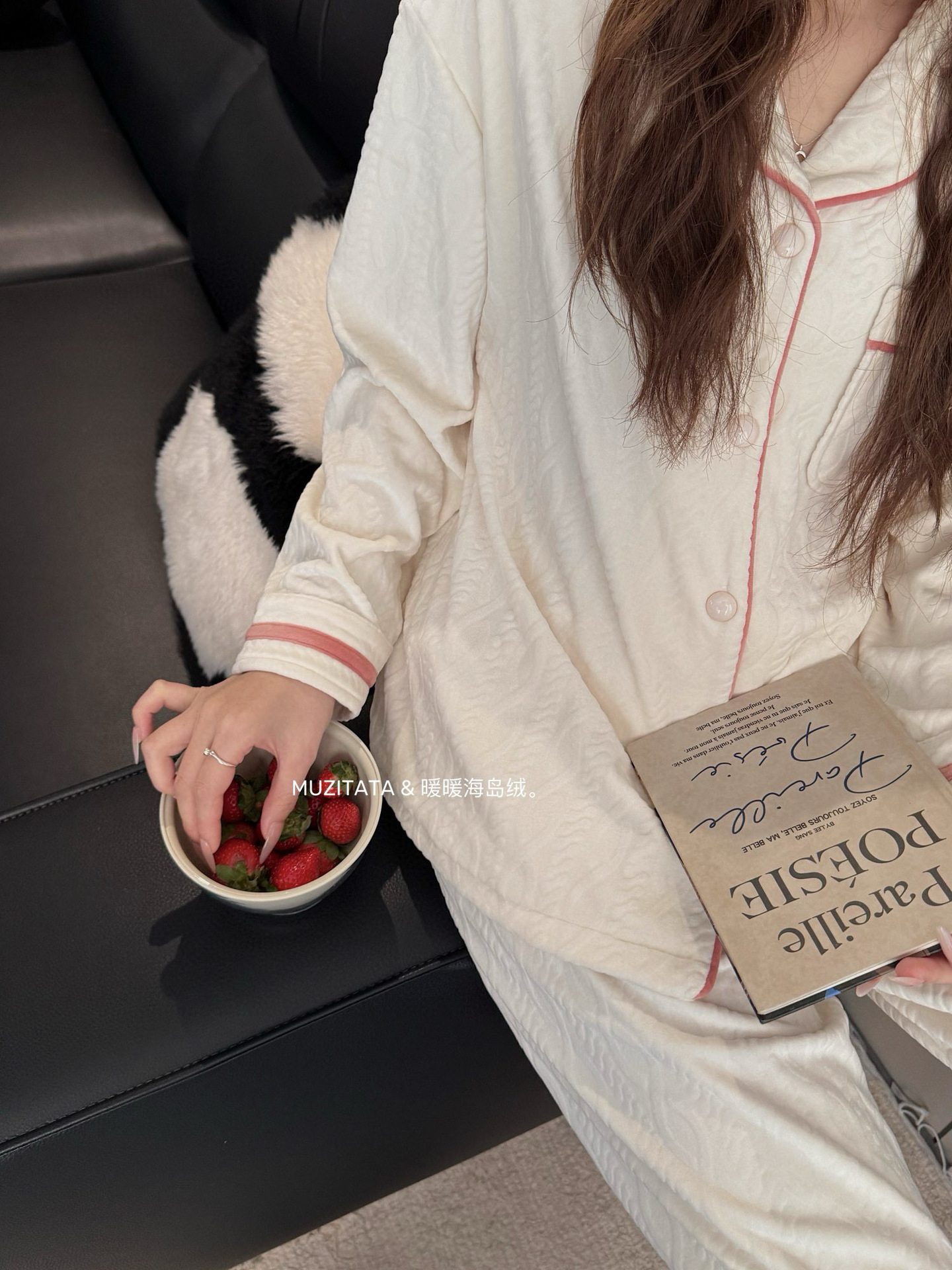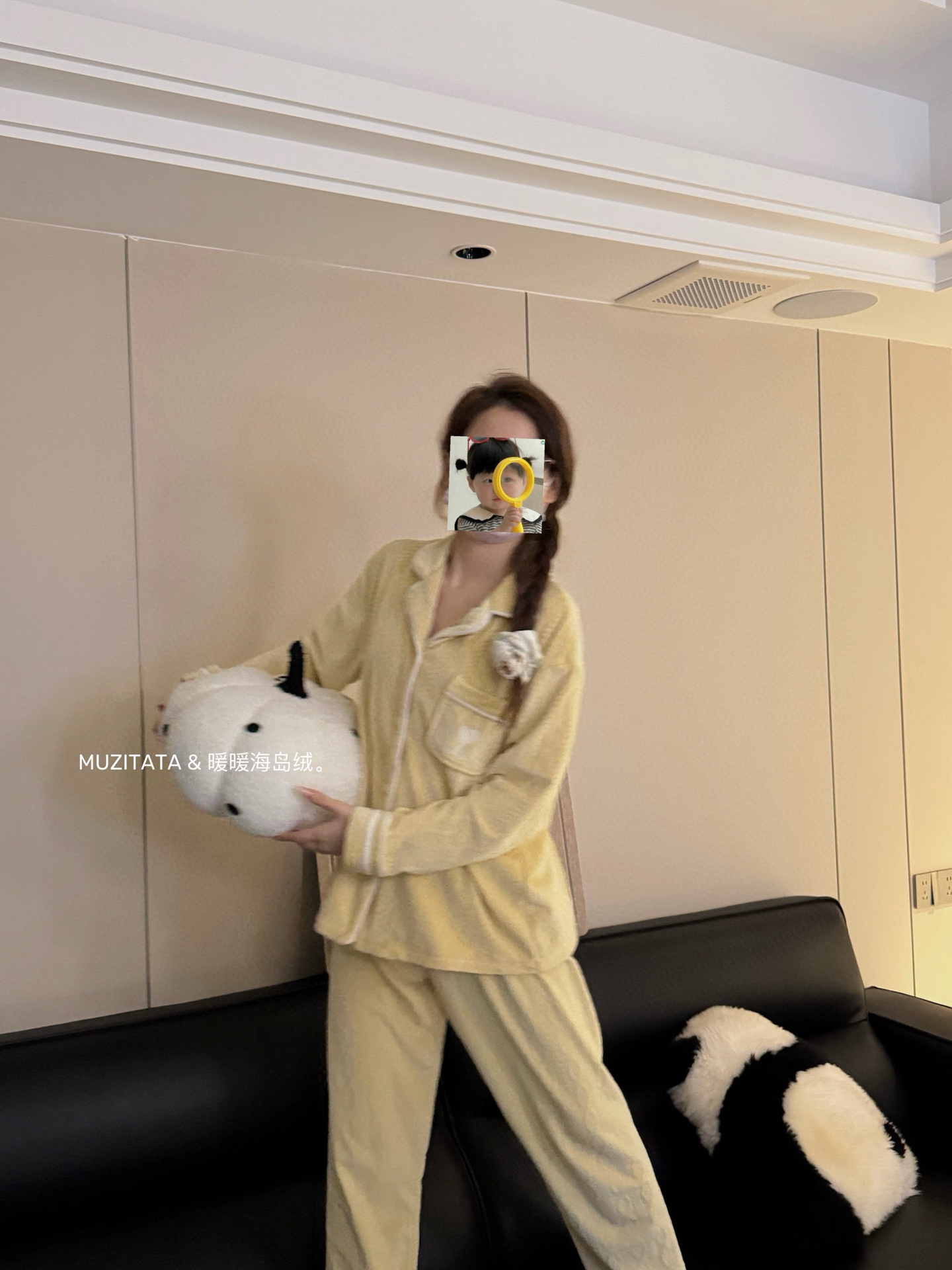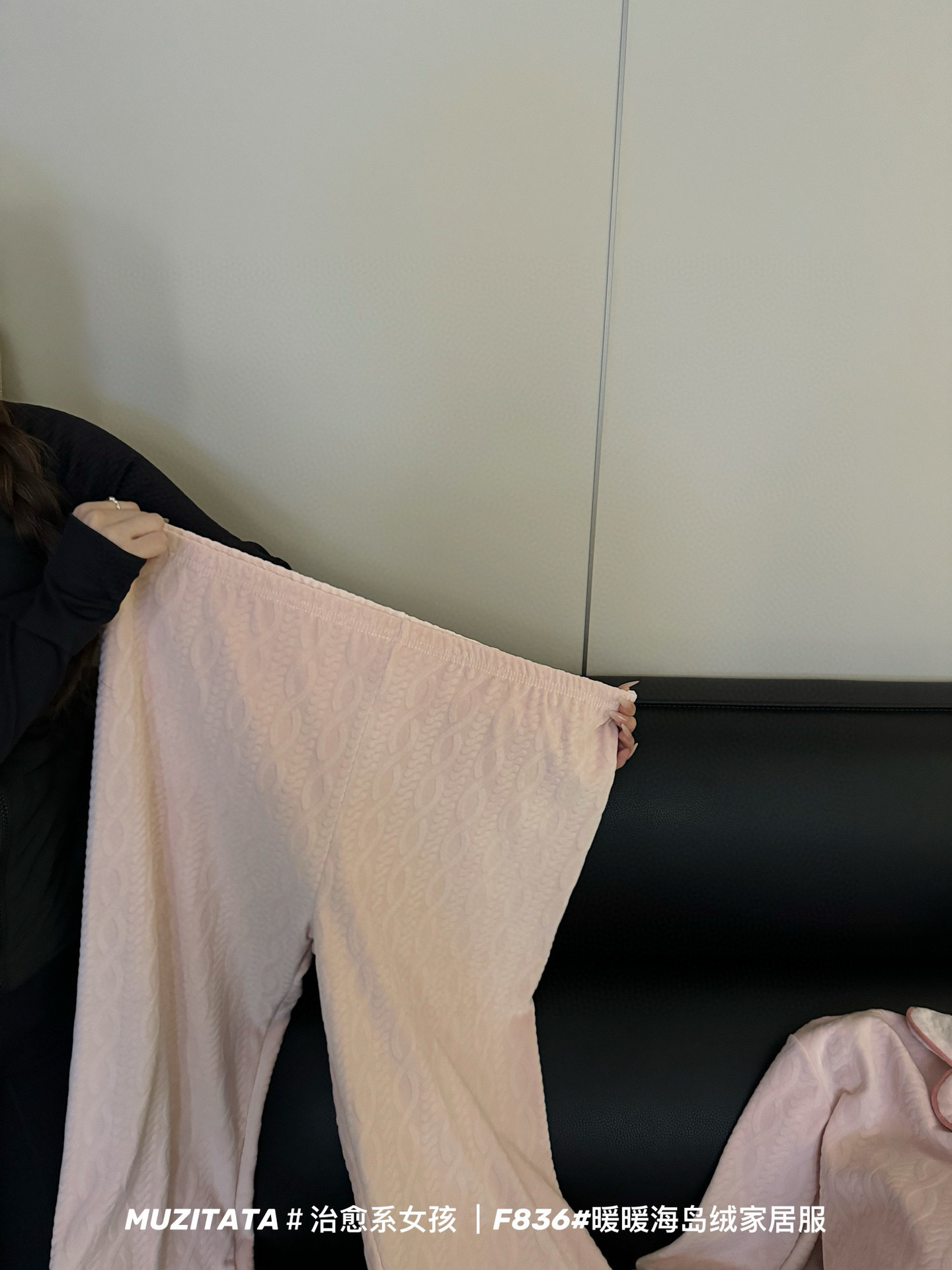 【超治愈❗️暖暖海岛绒家居服】奶乎乎马卡龙色系,暖绒绒陪你过冬!长袖上衣长裤套装组合,MUZITATA治愈系女孩女秋冬双面绒睡衣