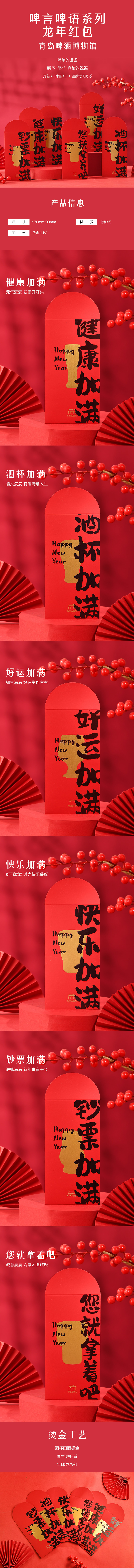 青岛啤酒博物馆同款啤言啤语系列 2024年新年龙年红包6支装 青岛啤酒 官方文创