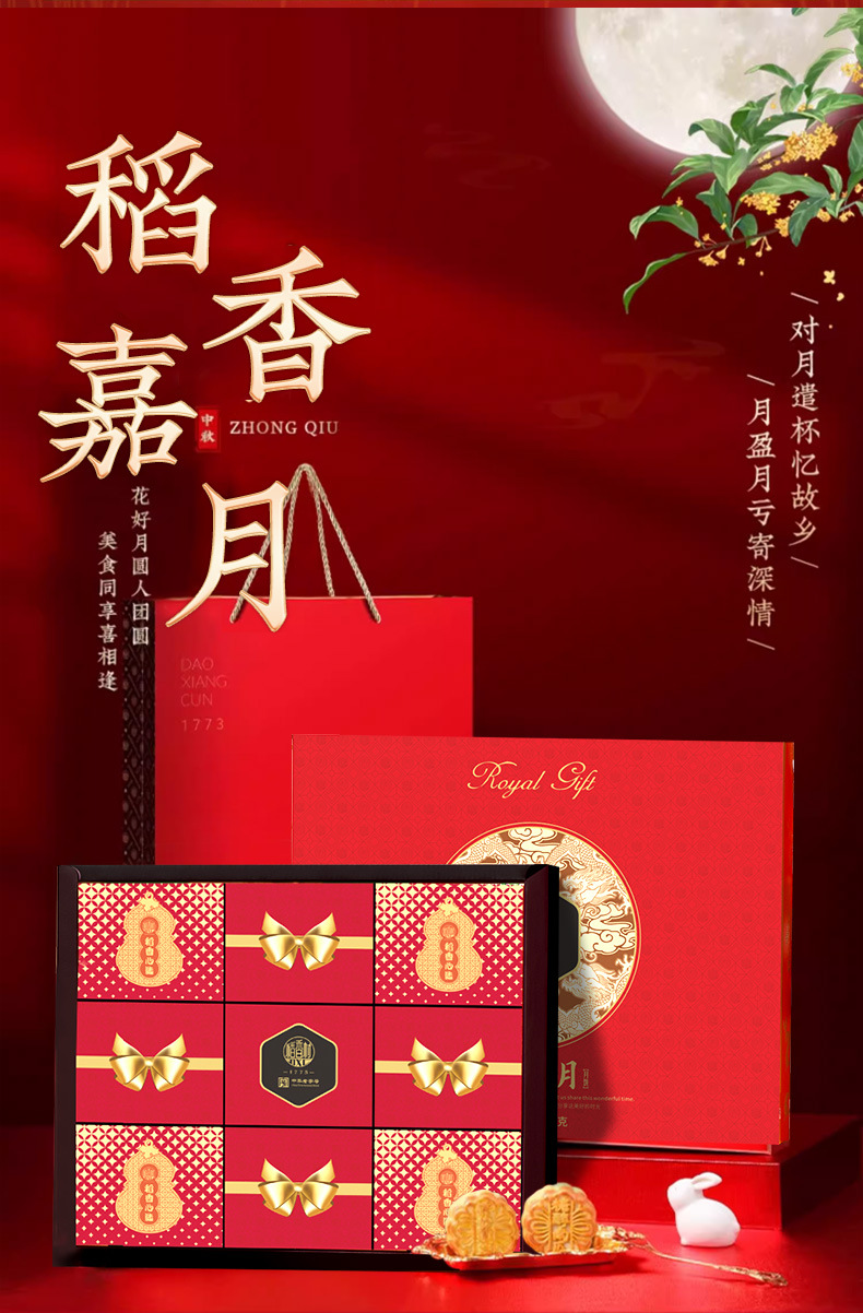 <有书独家>送礼袋!【中秋佳节,精美大礼盒!】稻香村月饼礼盒装 蛋黄莲蓉传统五仁 中秋节月饼糕点 送礼品企业团购-QB