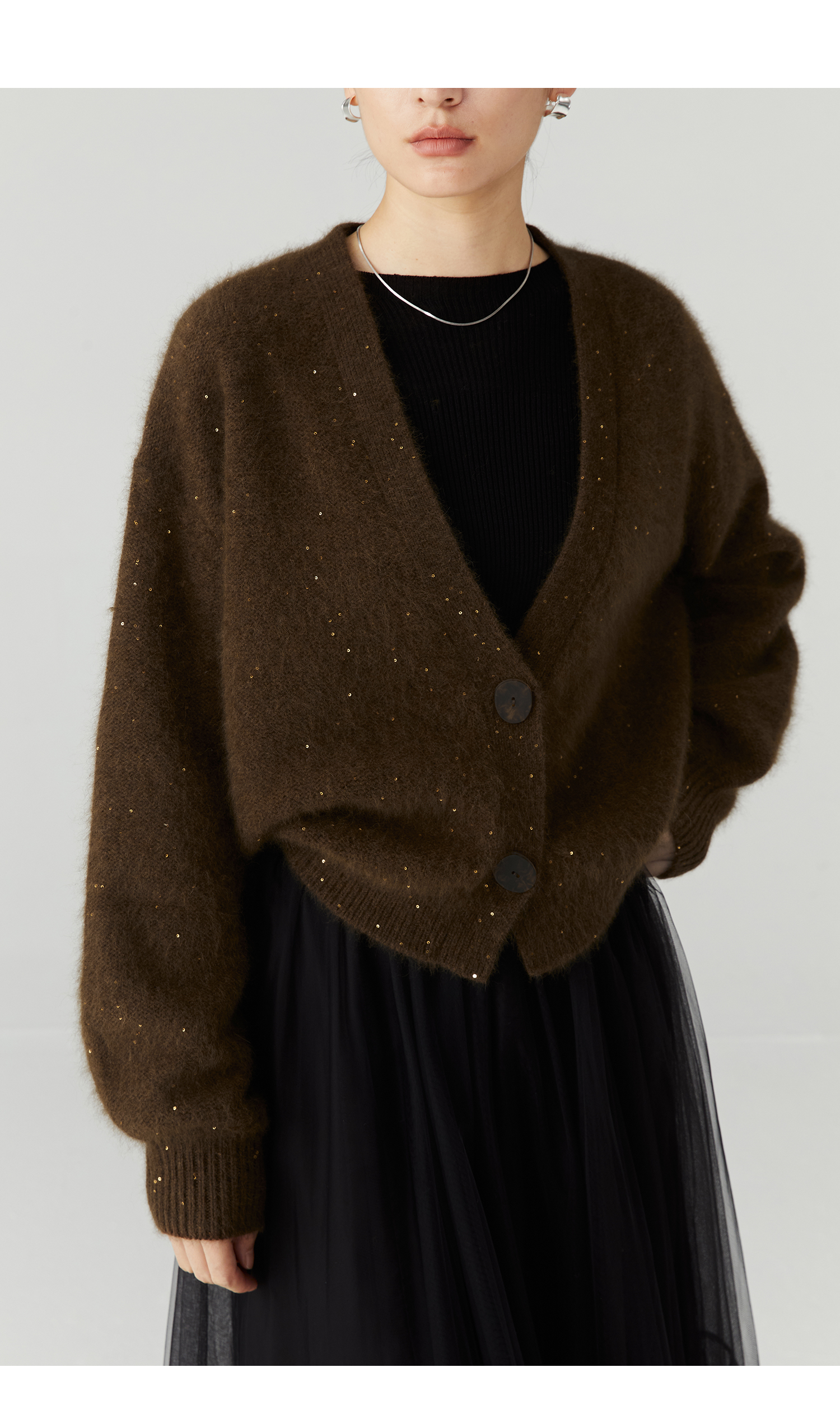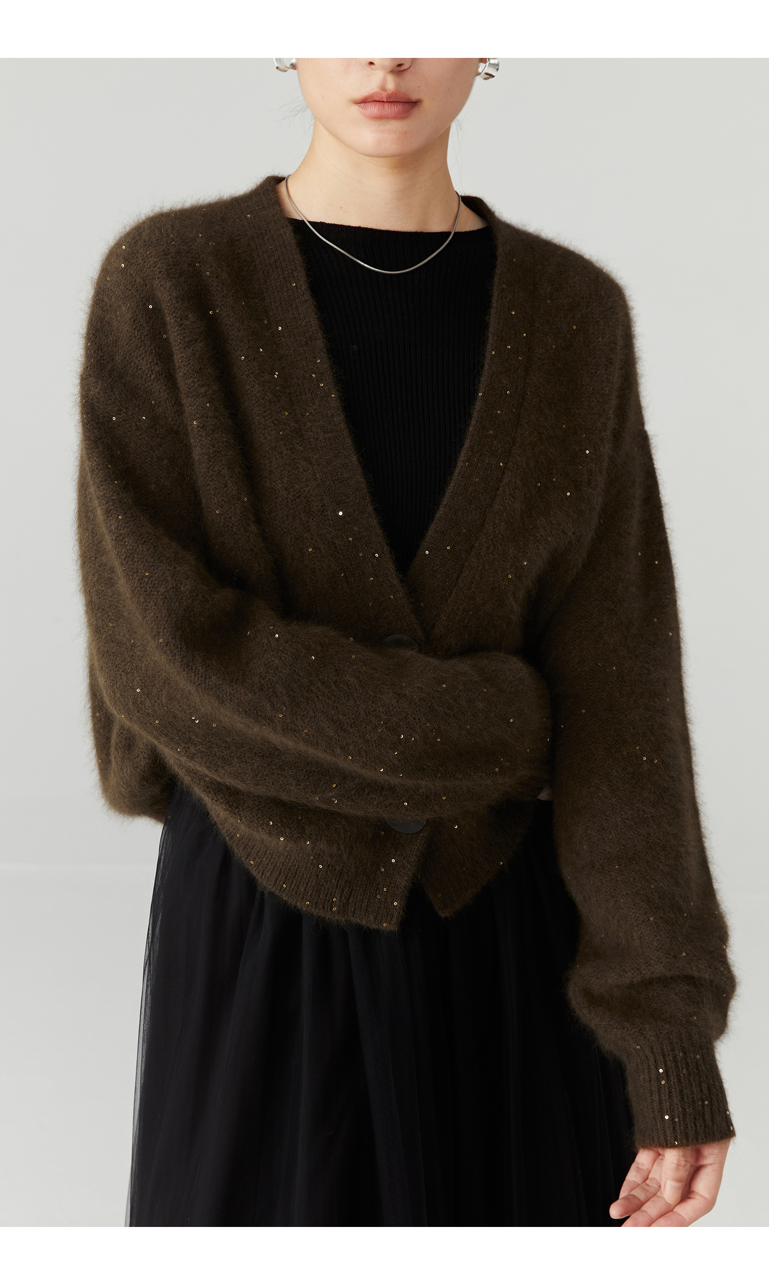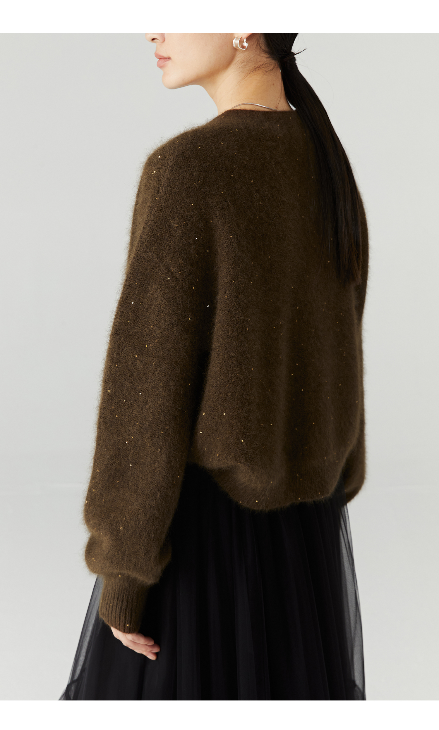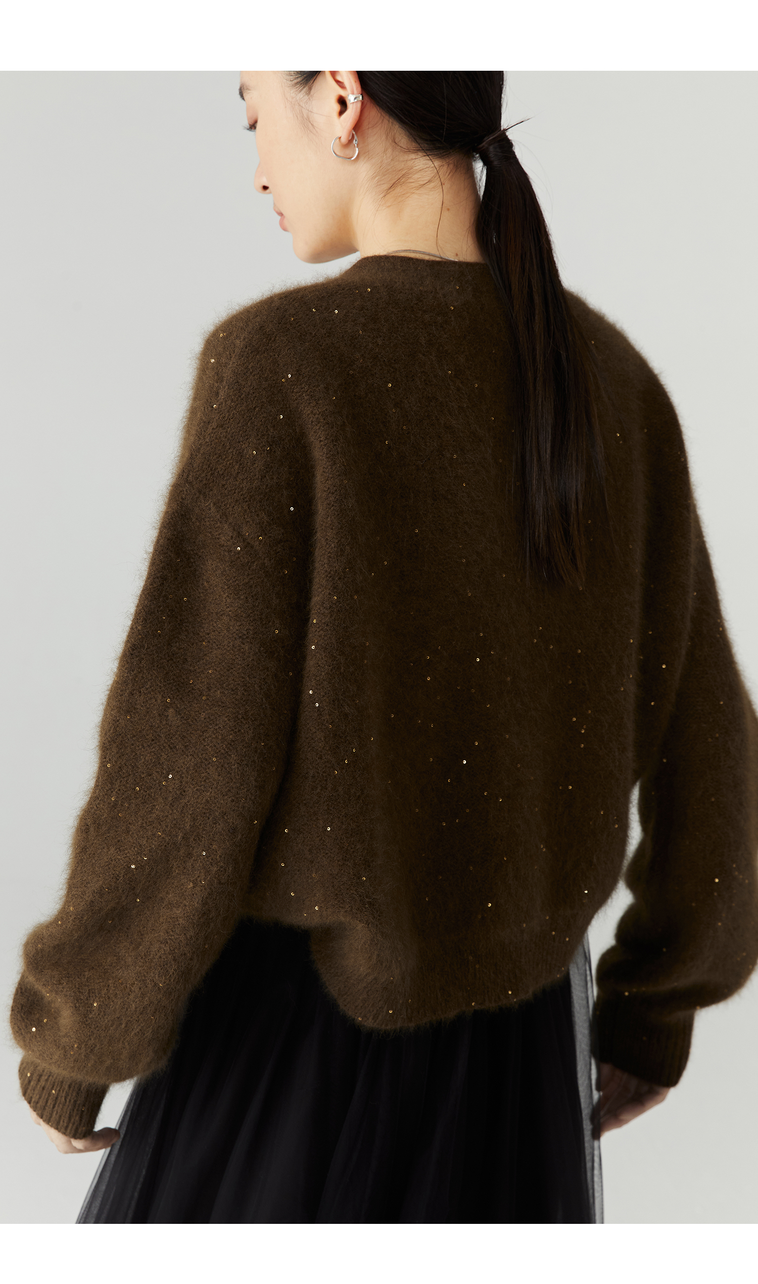 棉仓3471506001-23AW设计师款长毛毛衣浣熊绒 开衫亮片柔软质感外穿针织衫