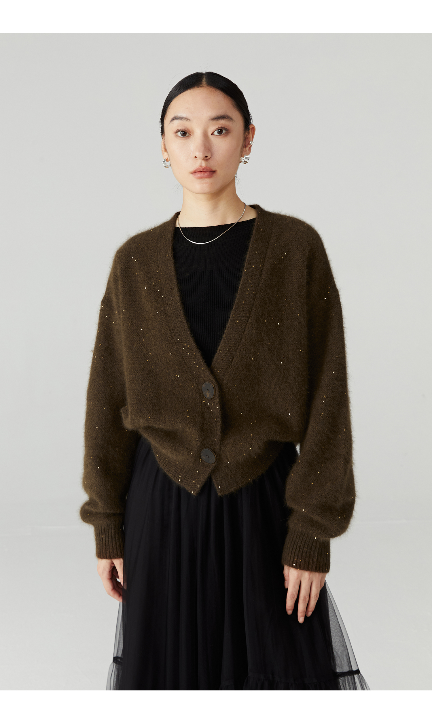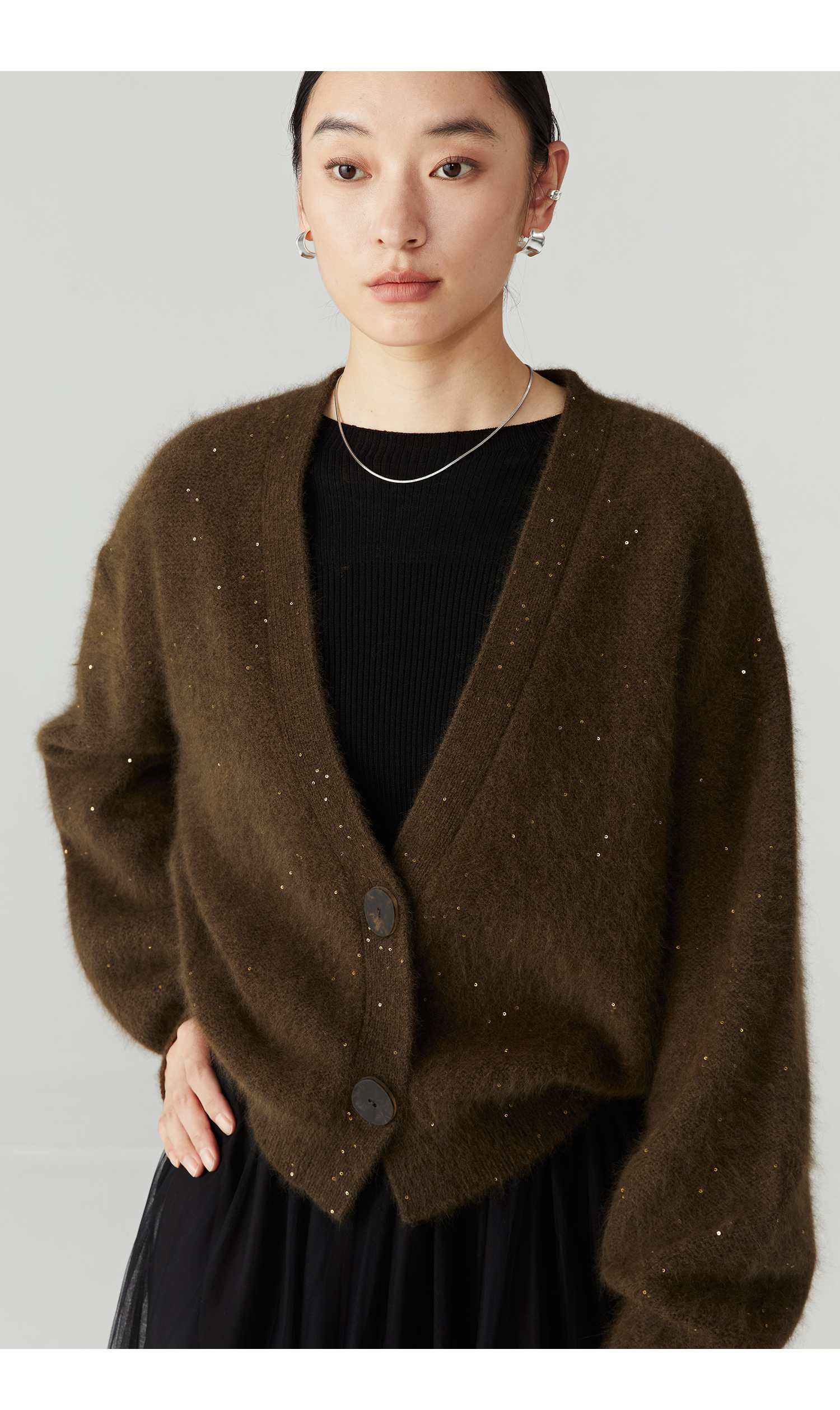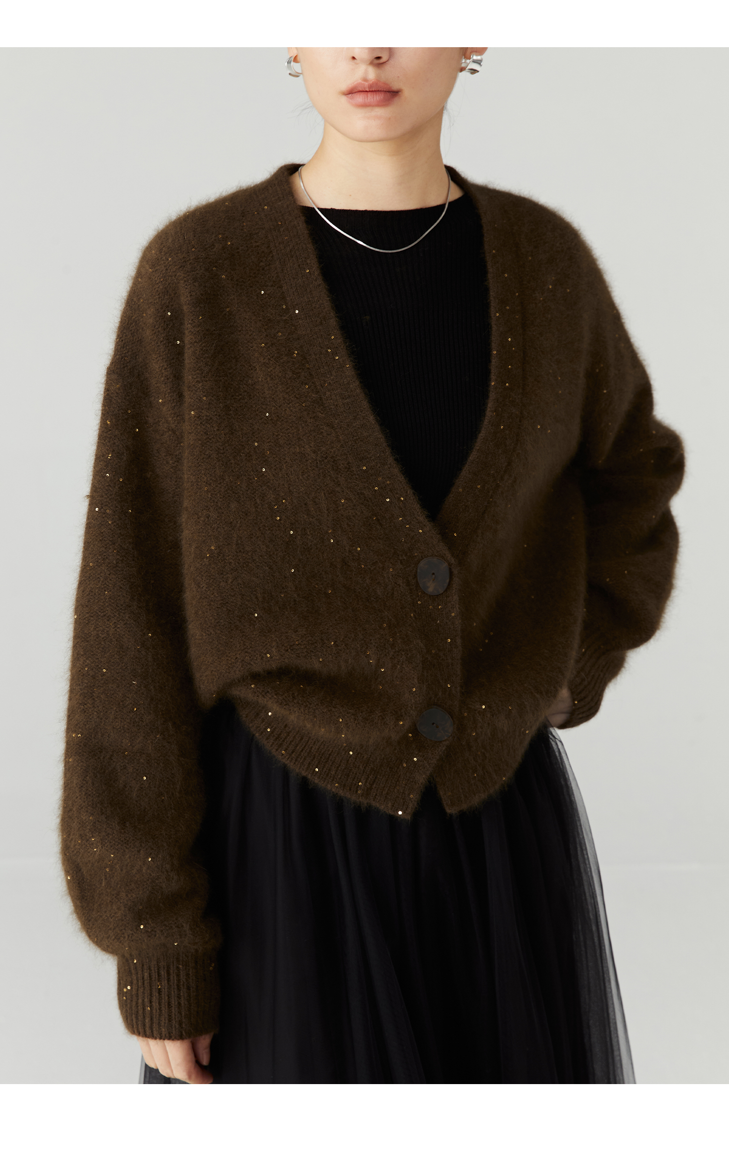 棉仓3471506001-23AW设计师款长毛毛衣浣熊绒 开衫亮片柔软质感外穿针织衫
