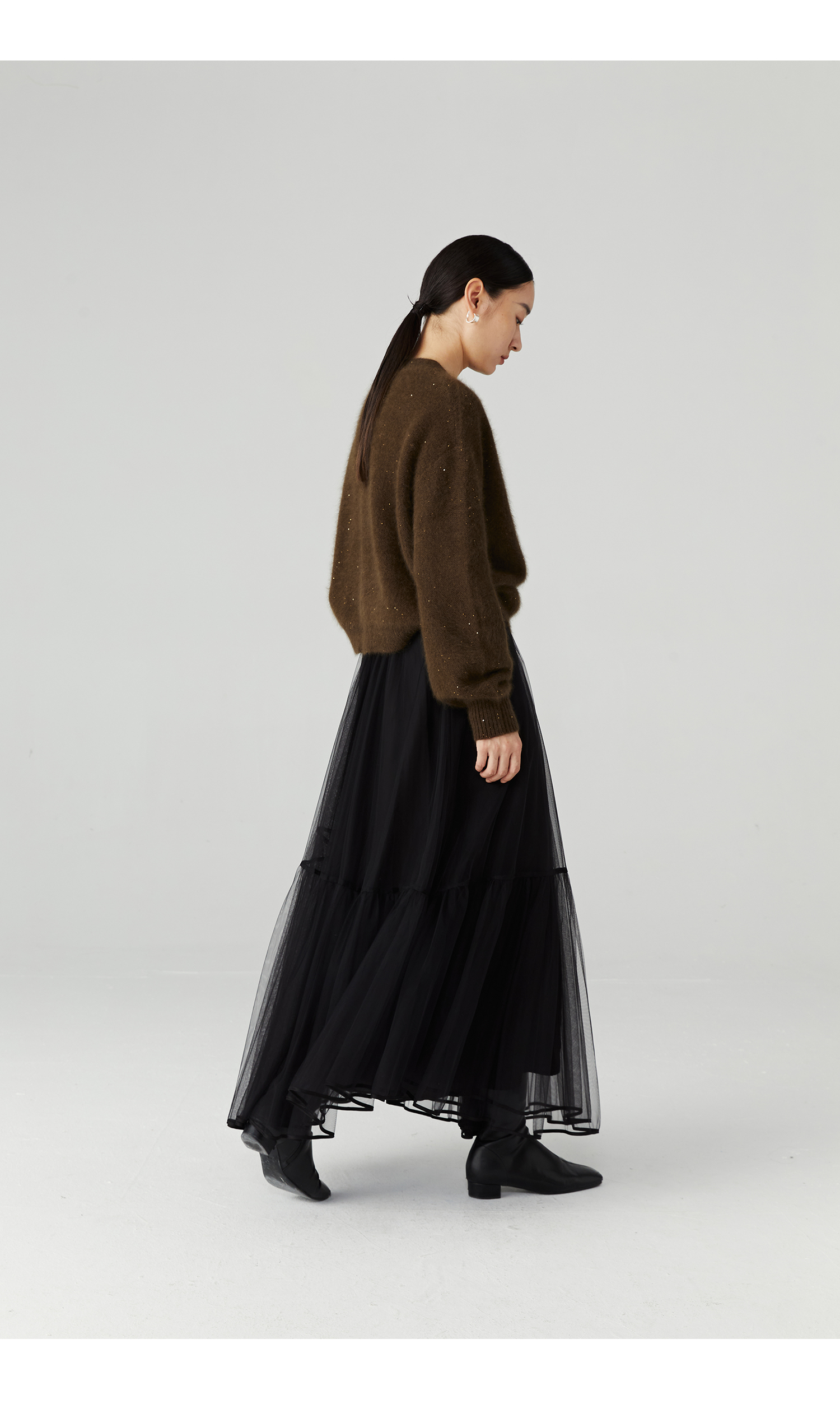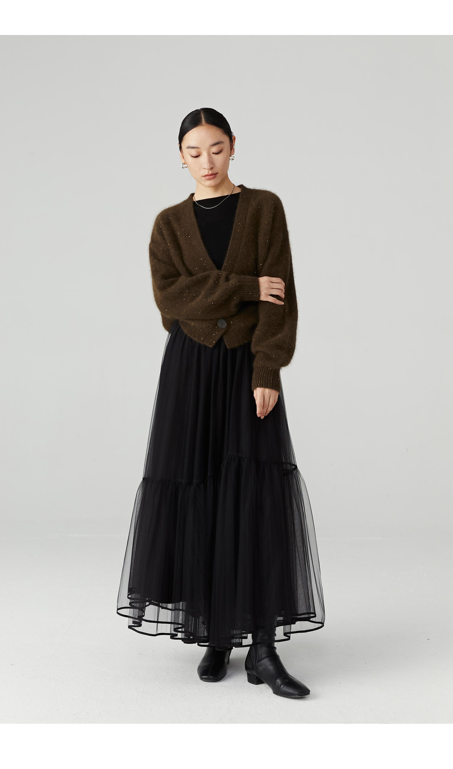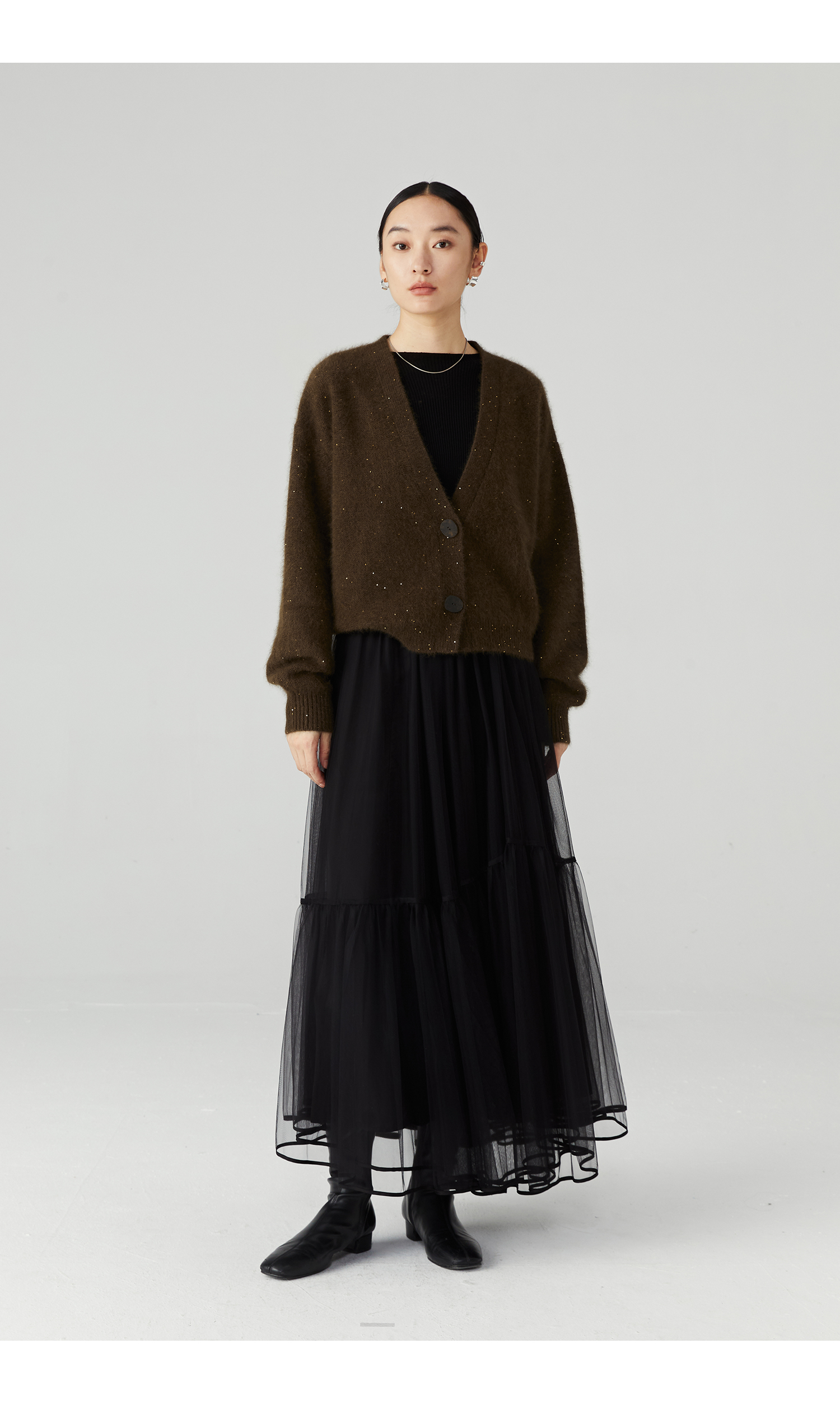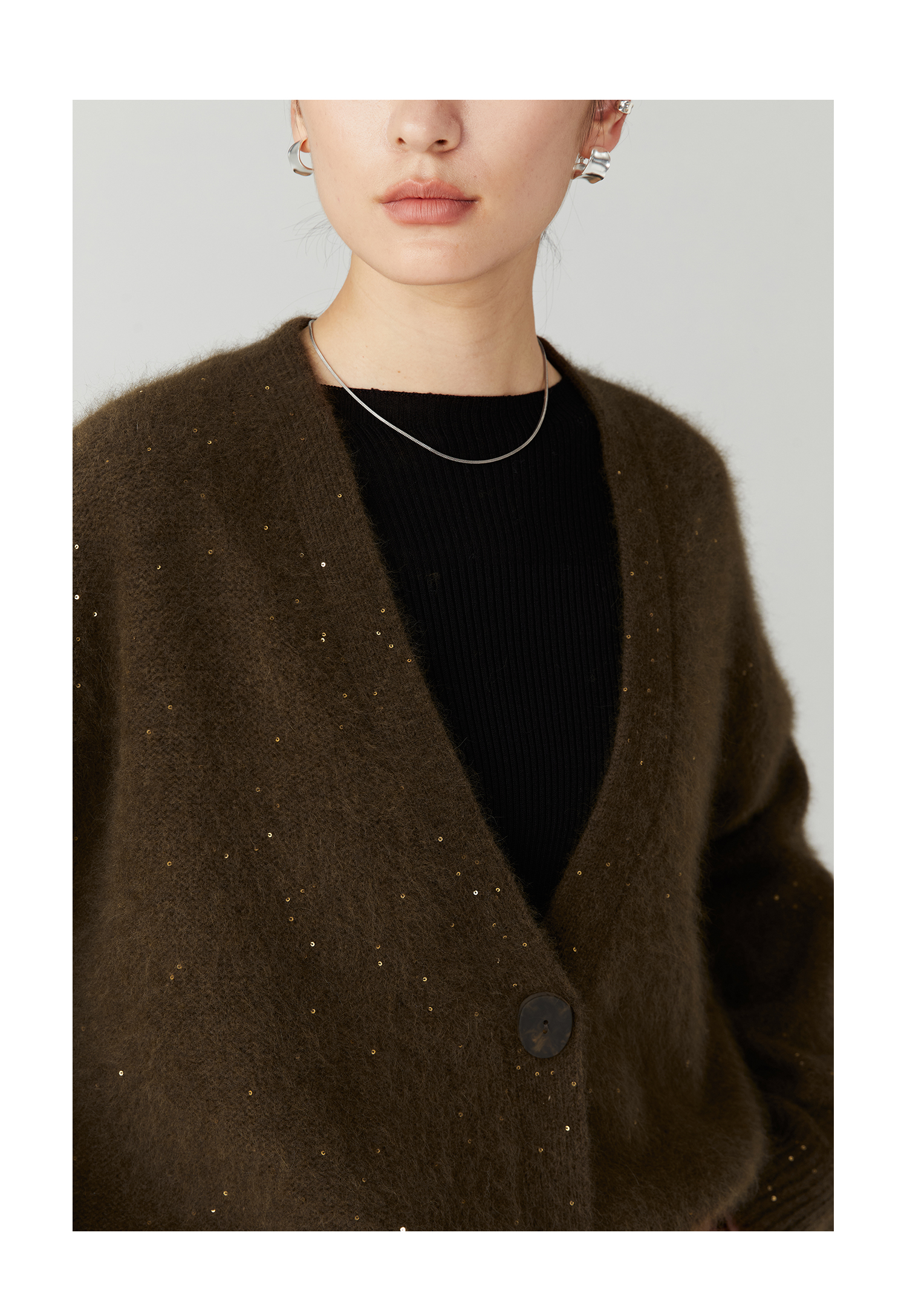 棉仓3471506001-23AW设计师款长毛毛衣浣熊绒 开衫亮片柔软质感外穿针织衫