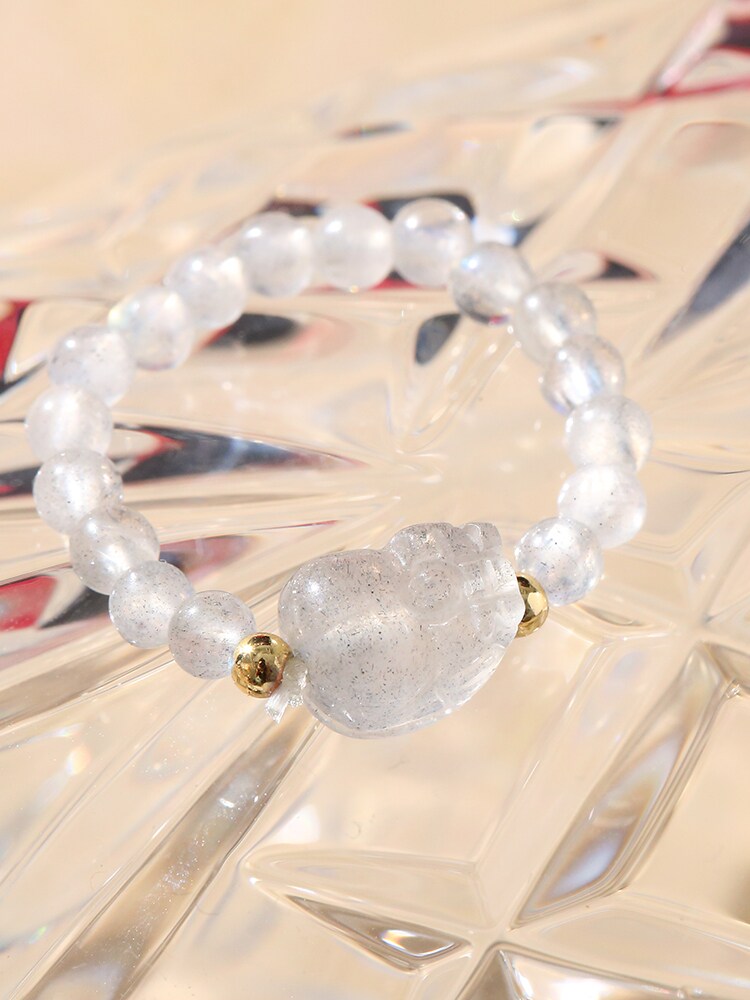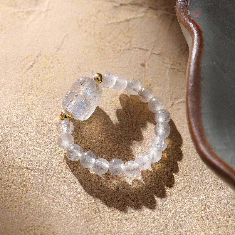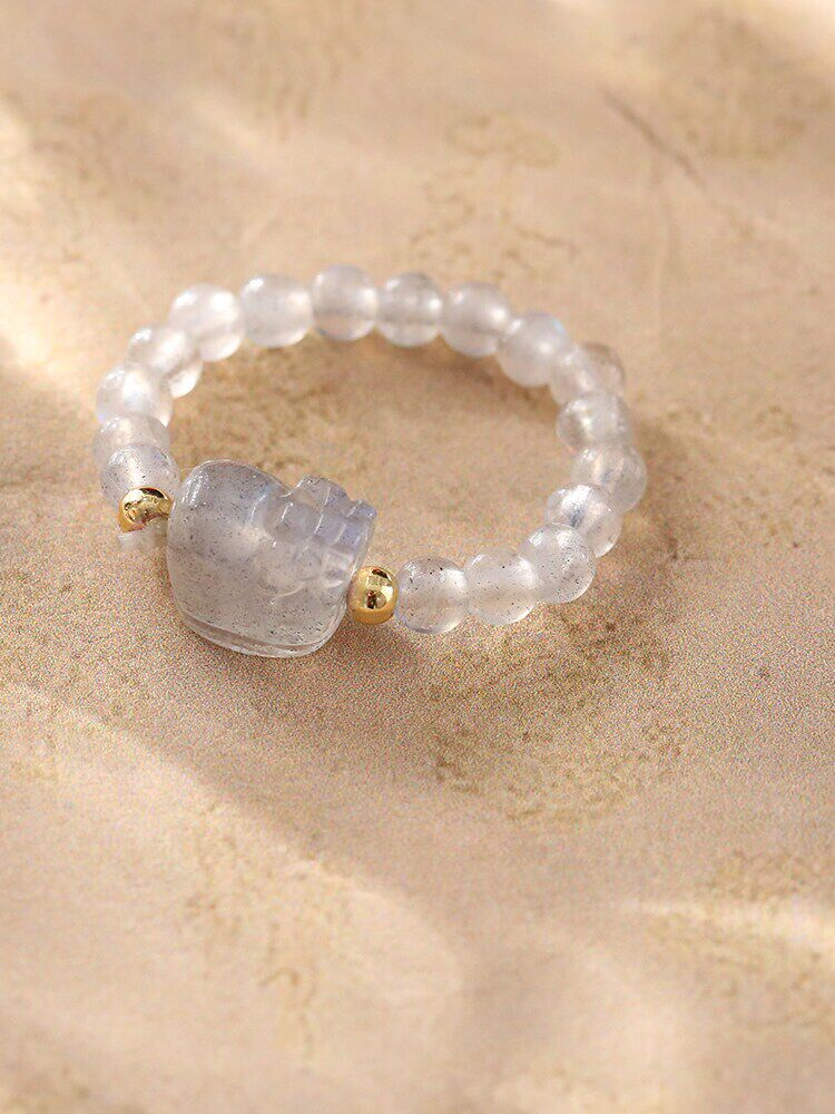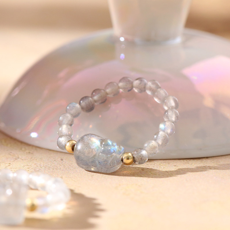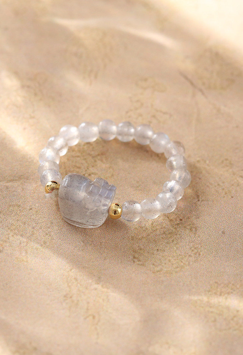 【祈愿吉品】灰月光貔貅弹力戒指弹力绳百搭