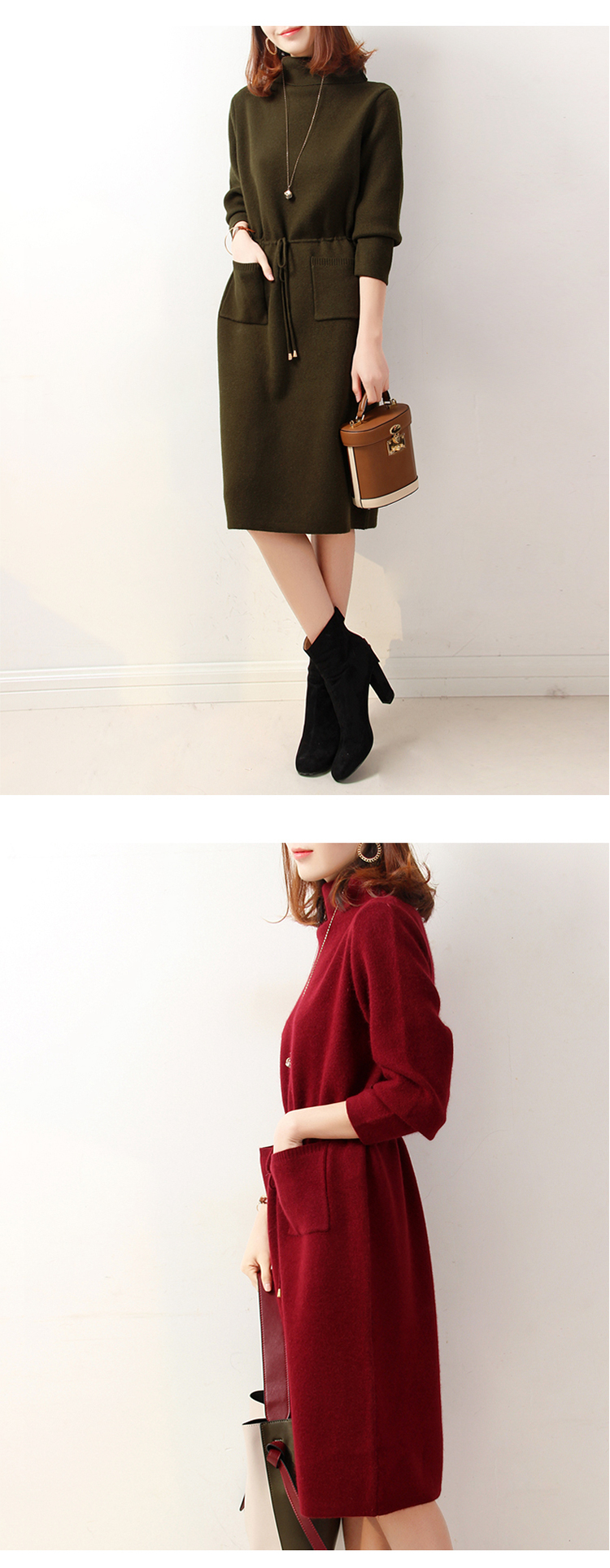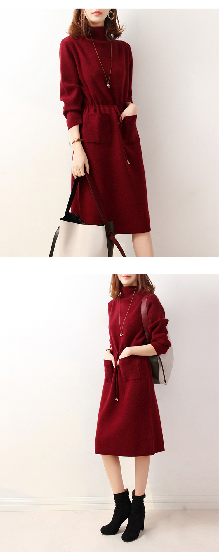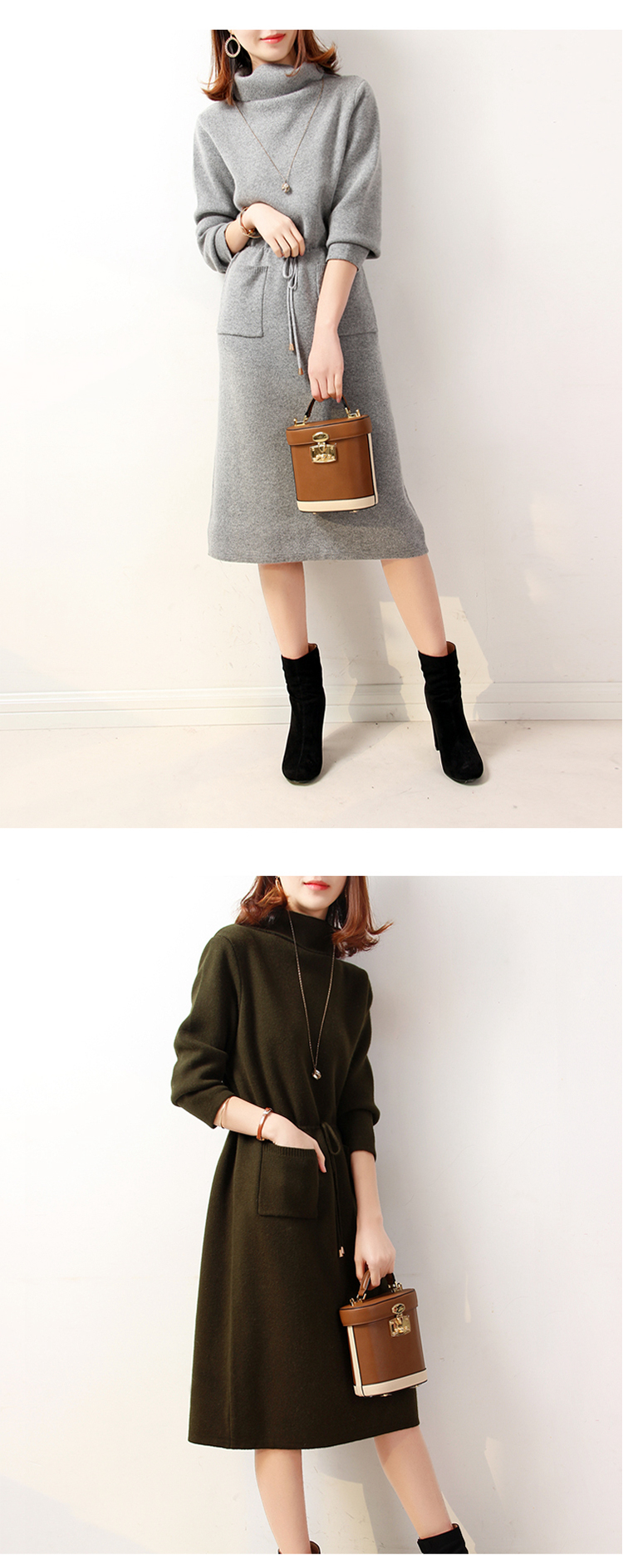 裁缝学苑 AG104 秋冬连衣裙纸样 女装服装高领收腰裙子样板裁剪图