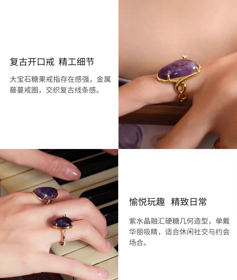 2楼Fellala/翡拉拉「糖果」紫水晶925银指戒货号925430802吊牌价1799现价1619