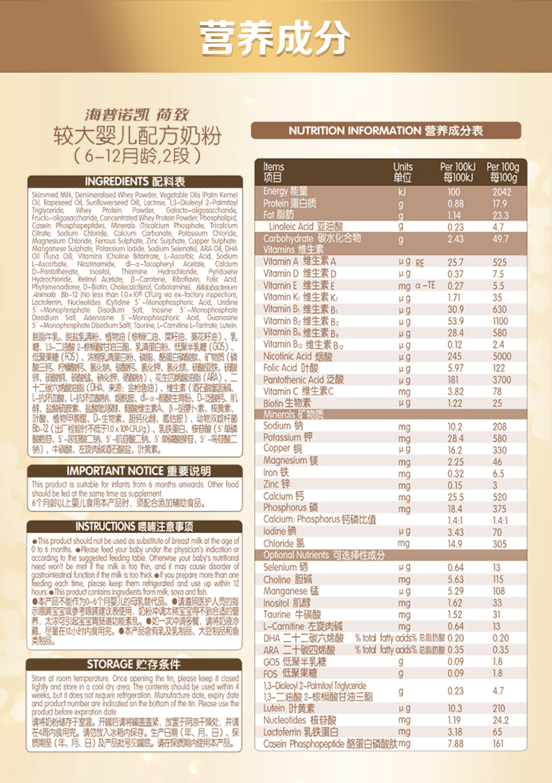 海普诺凯1897奶粉婴儿配方2段900g二段